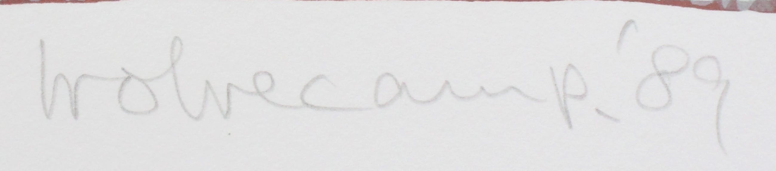 De voorstelling is in goede staat. Er zitten langs de randen wat kleine kreukels. Het werk heeft opgerold gezeten, maar goed ingelijst valt dit in de lijst/onder de passepartout. | |||