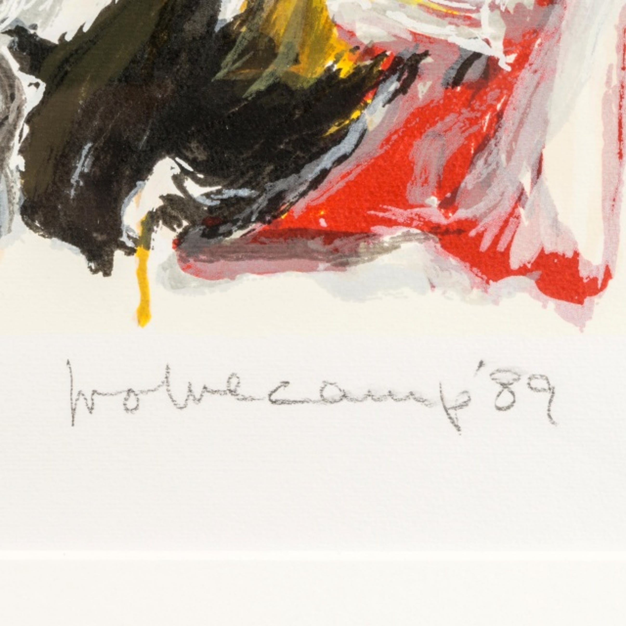 Gesigneerde zeefdruk van de kunstenaar Theo Wolvekamp (1925-1992), gedrukt in een oplage van 175 stuks. Rechtsonder is het werk gesigneerd in potlood en 89 Rechtsonder 25/175. Afmeting lijst 70.5 x 55.5 cm (hxb) De zeefdruk en lijst zijn in goede staat.