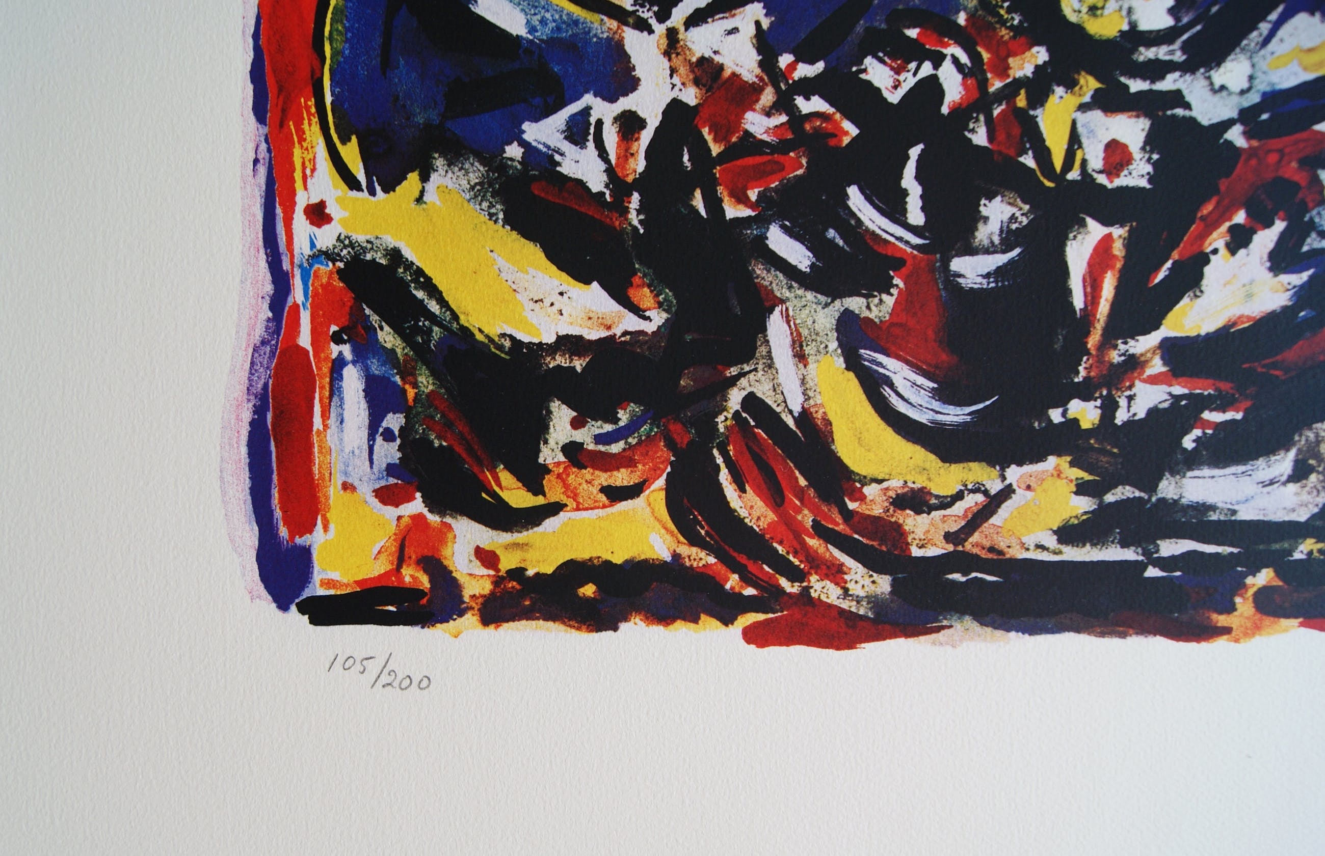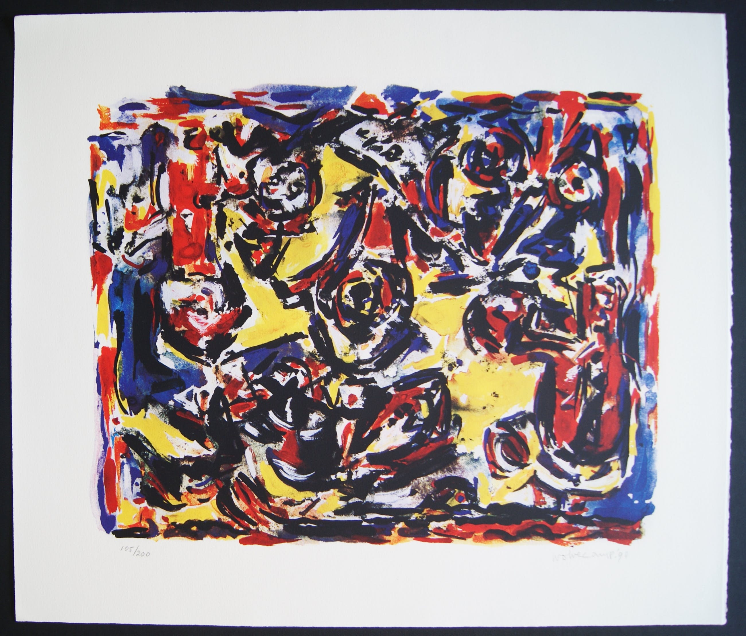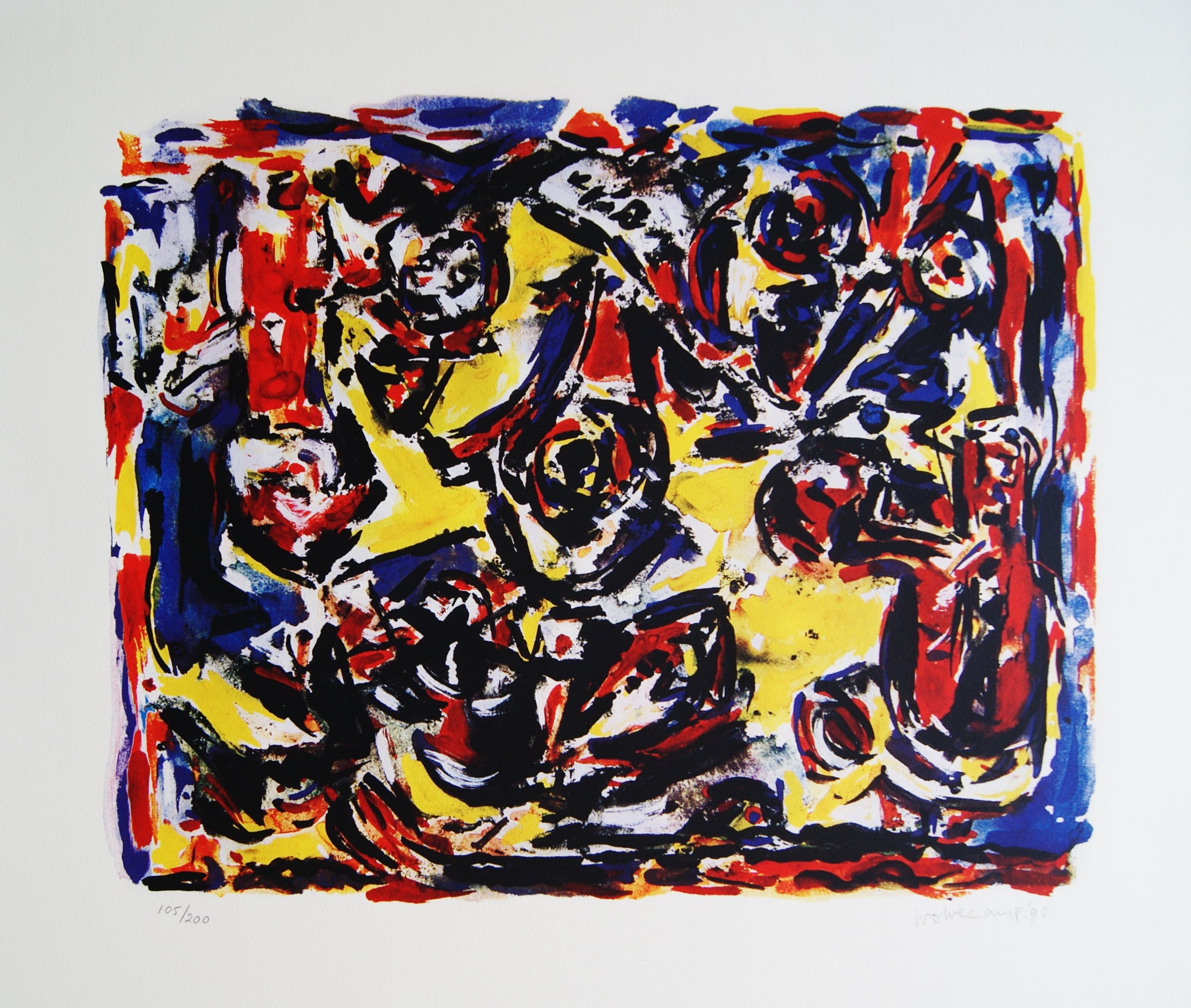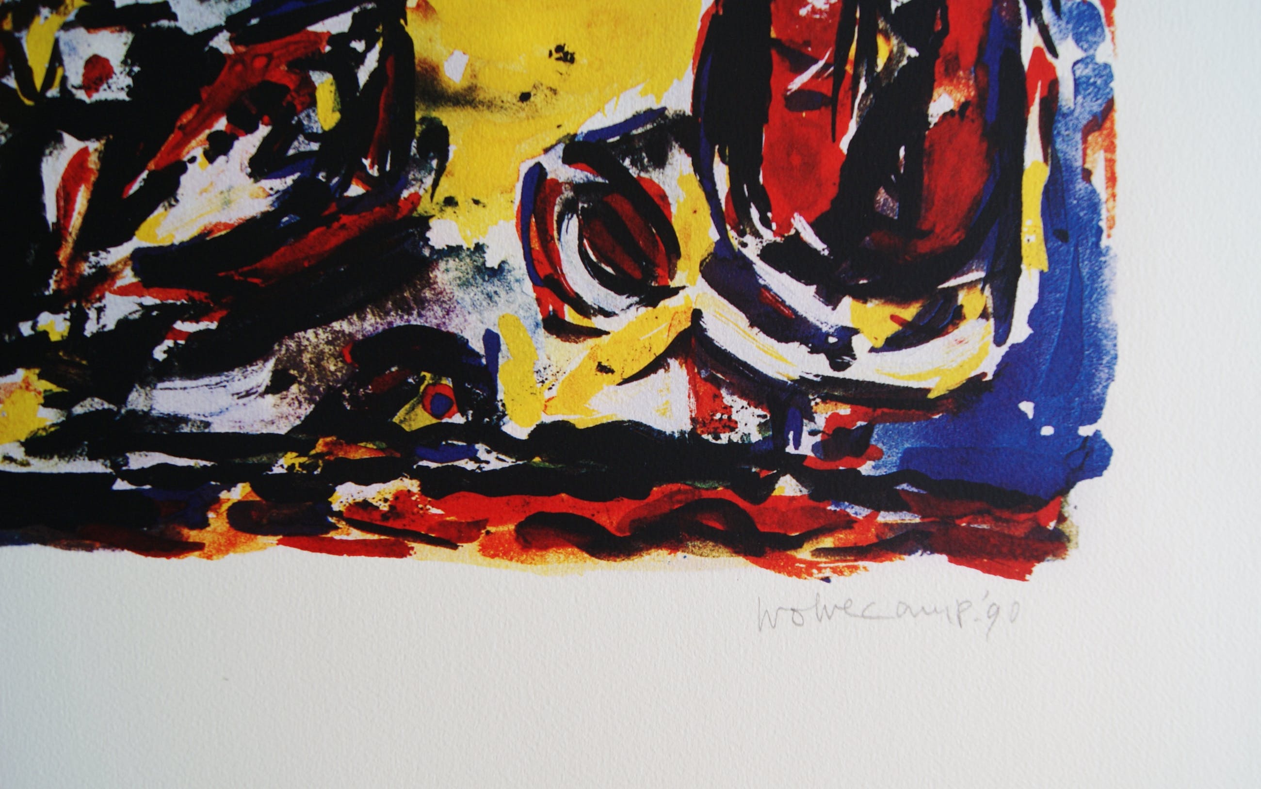 Een typerende zeefdruk van Theo Wolvecamp uit 1990. Het werk is gesigneerd en genummerd, oplage 105/200. De afmetingen zijn 63 x 73 cm en is in zeer goede conditie.