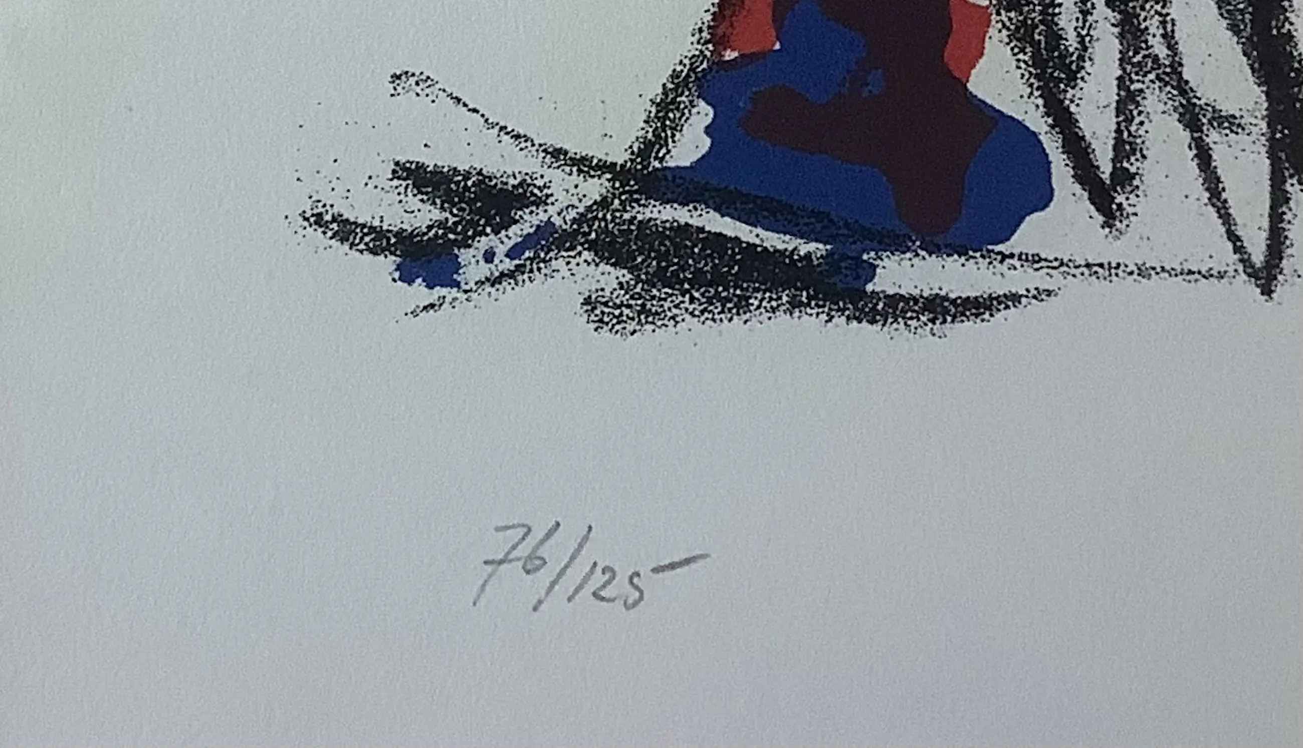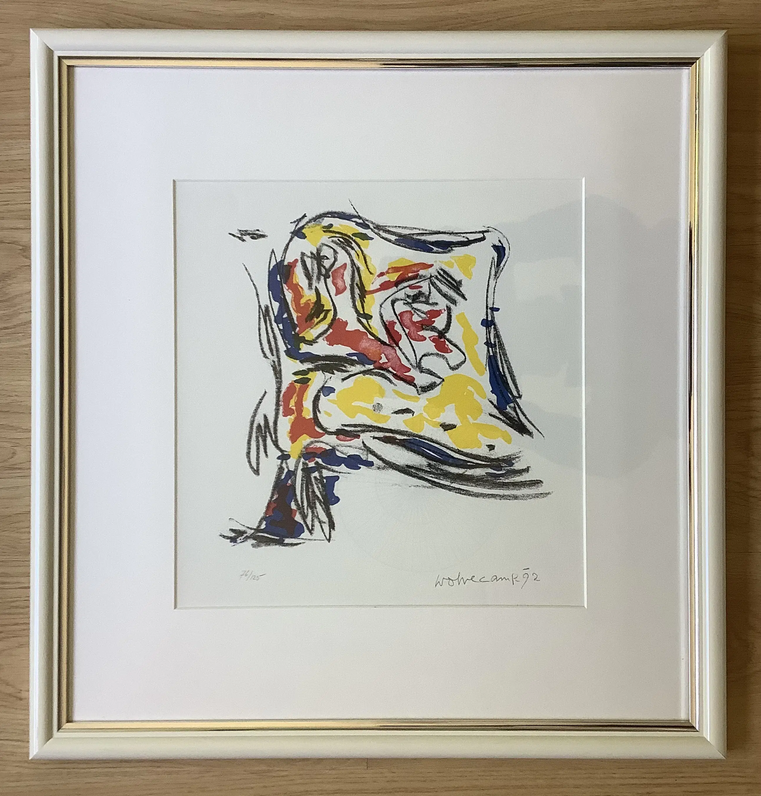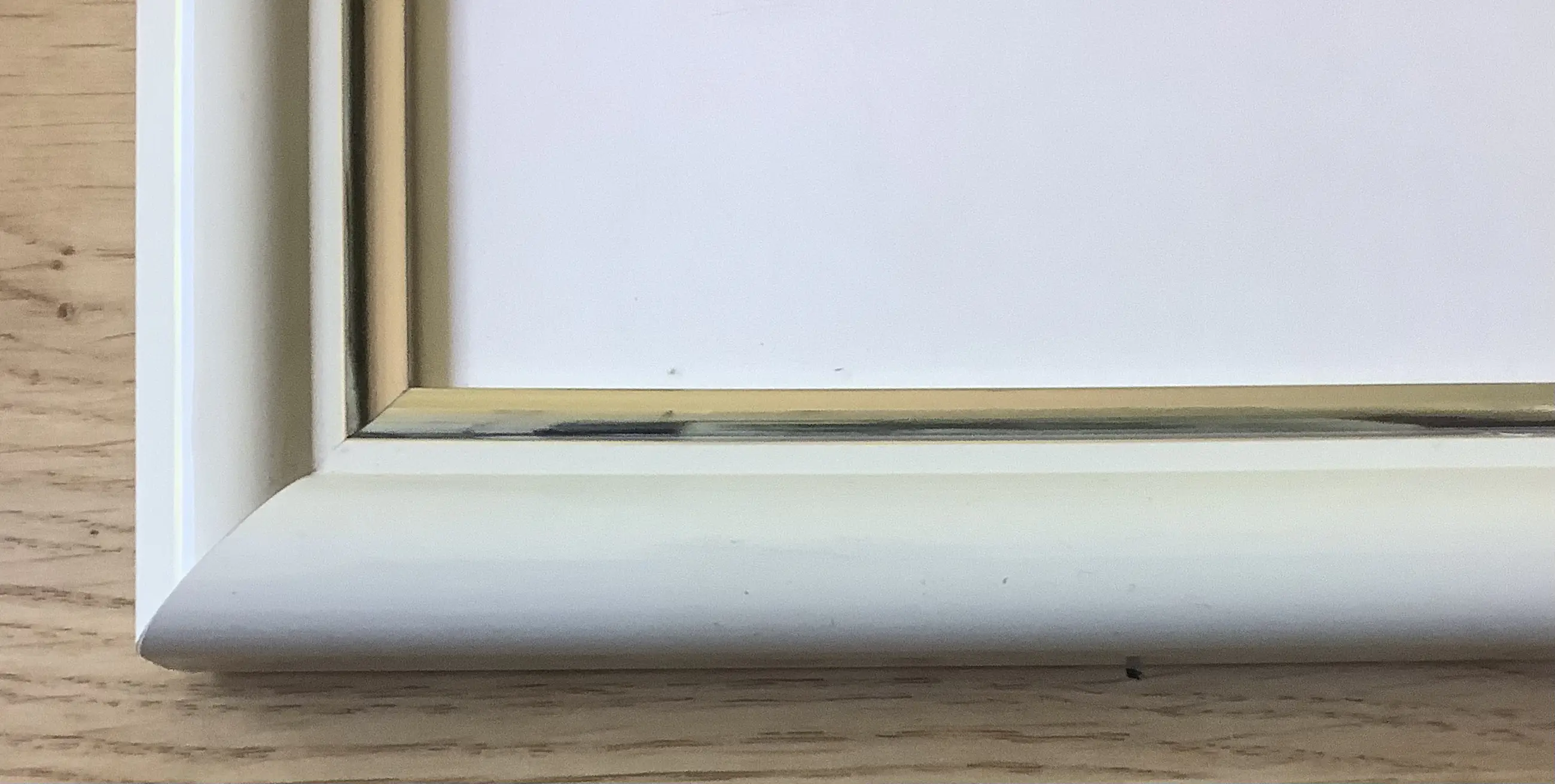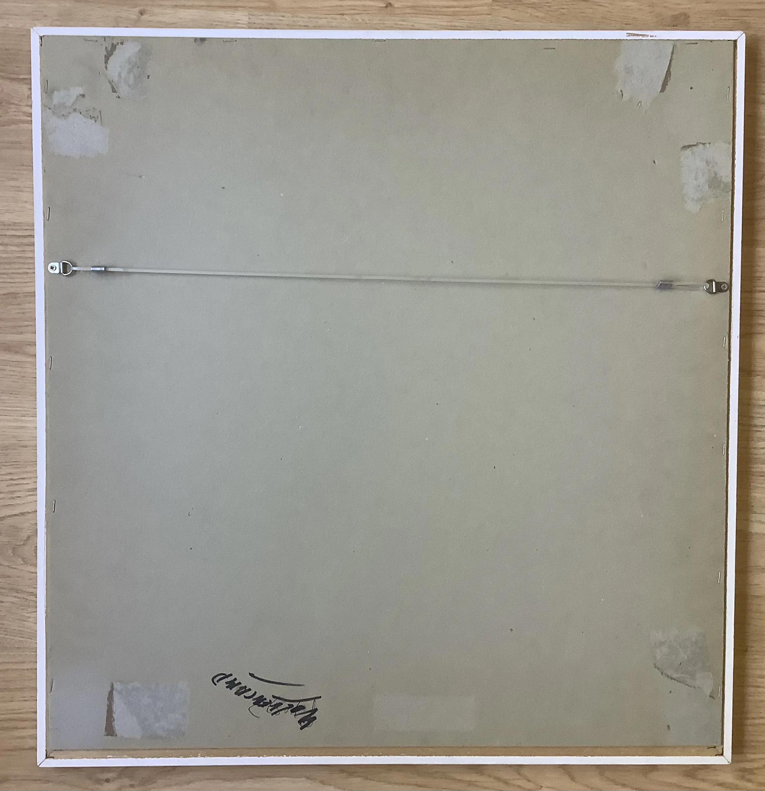 Ingelijst: Ja, in authentieke lijst uit de jaren 90 van de vorige eeuw. Betreft witte houten lijst met zilverkleurige bies, 3 cm breed en 2,5 cm hoog. Heeft een paar zeer kleine plekjes gebruikersschade, zie foto’s.