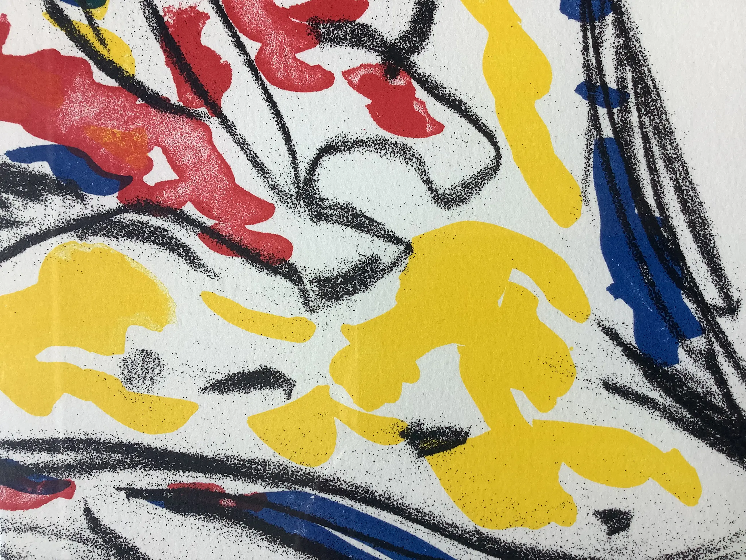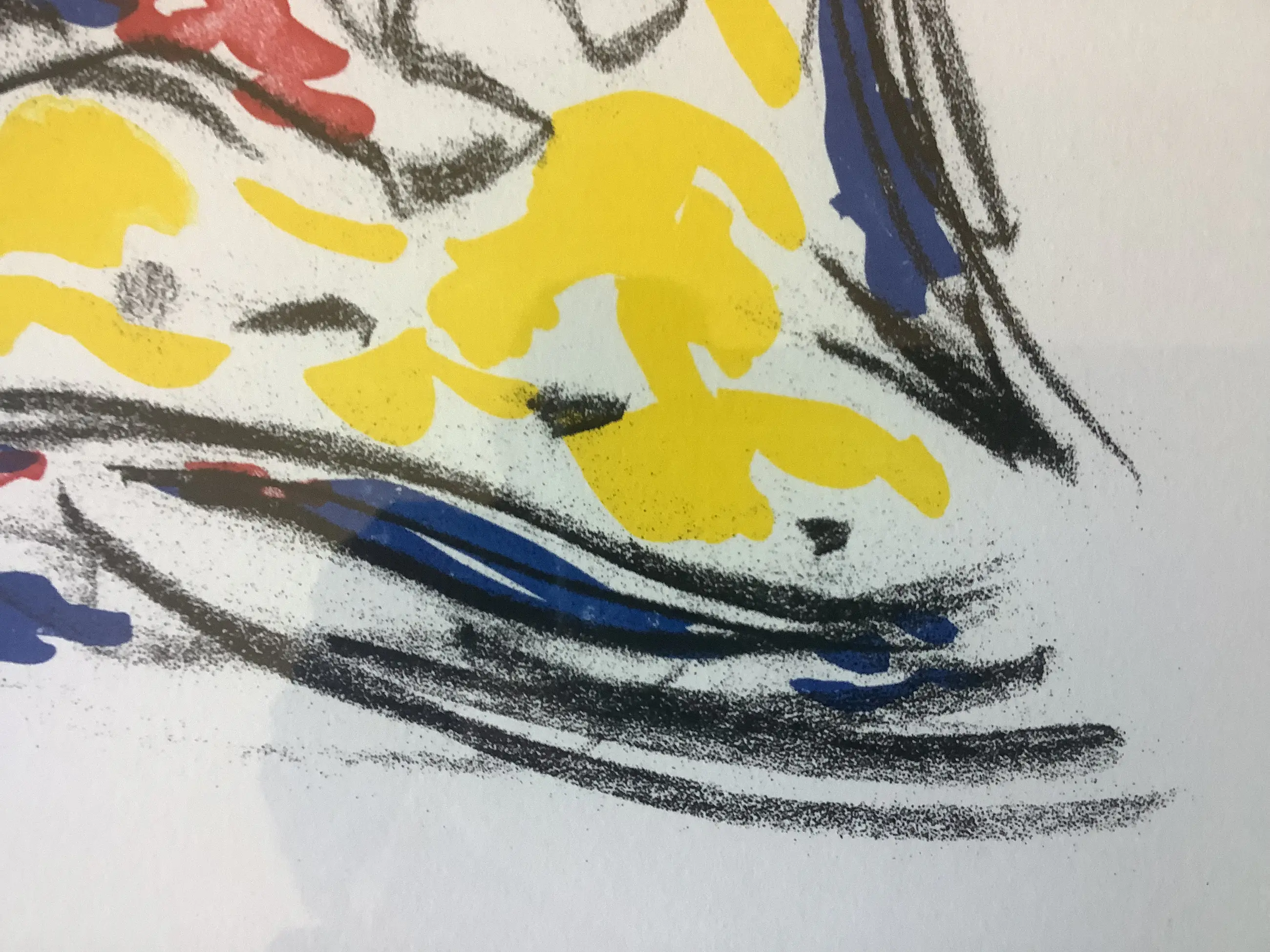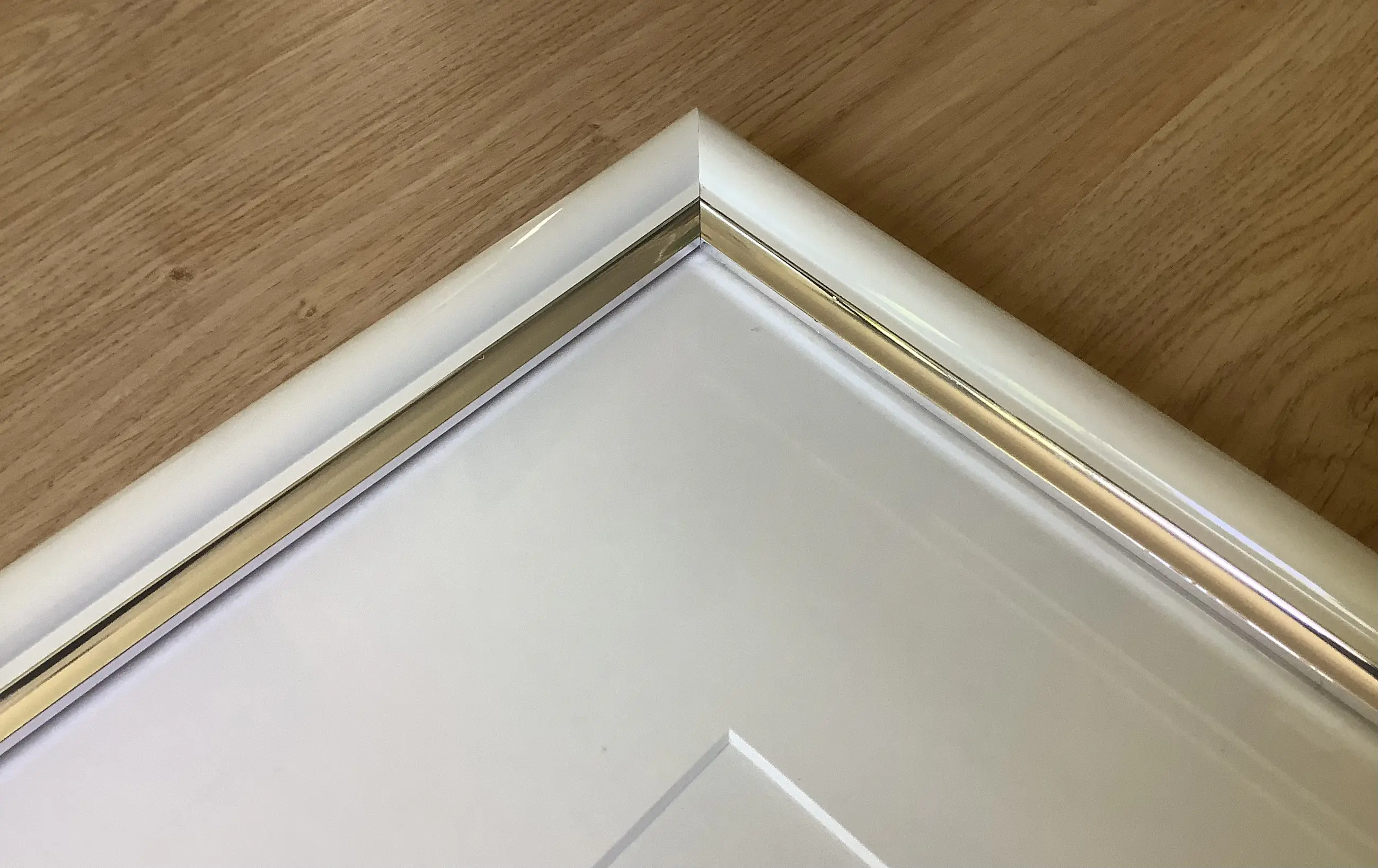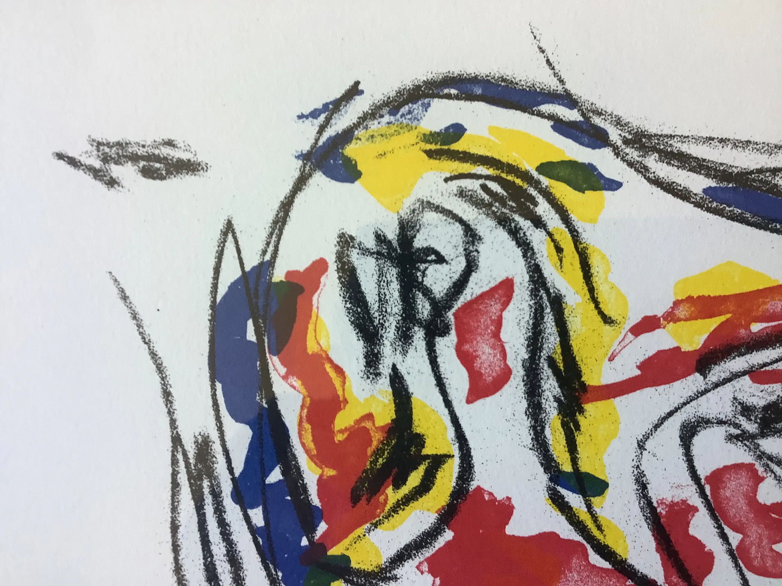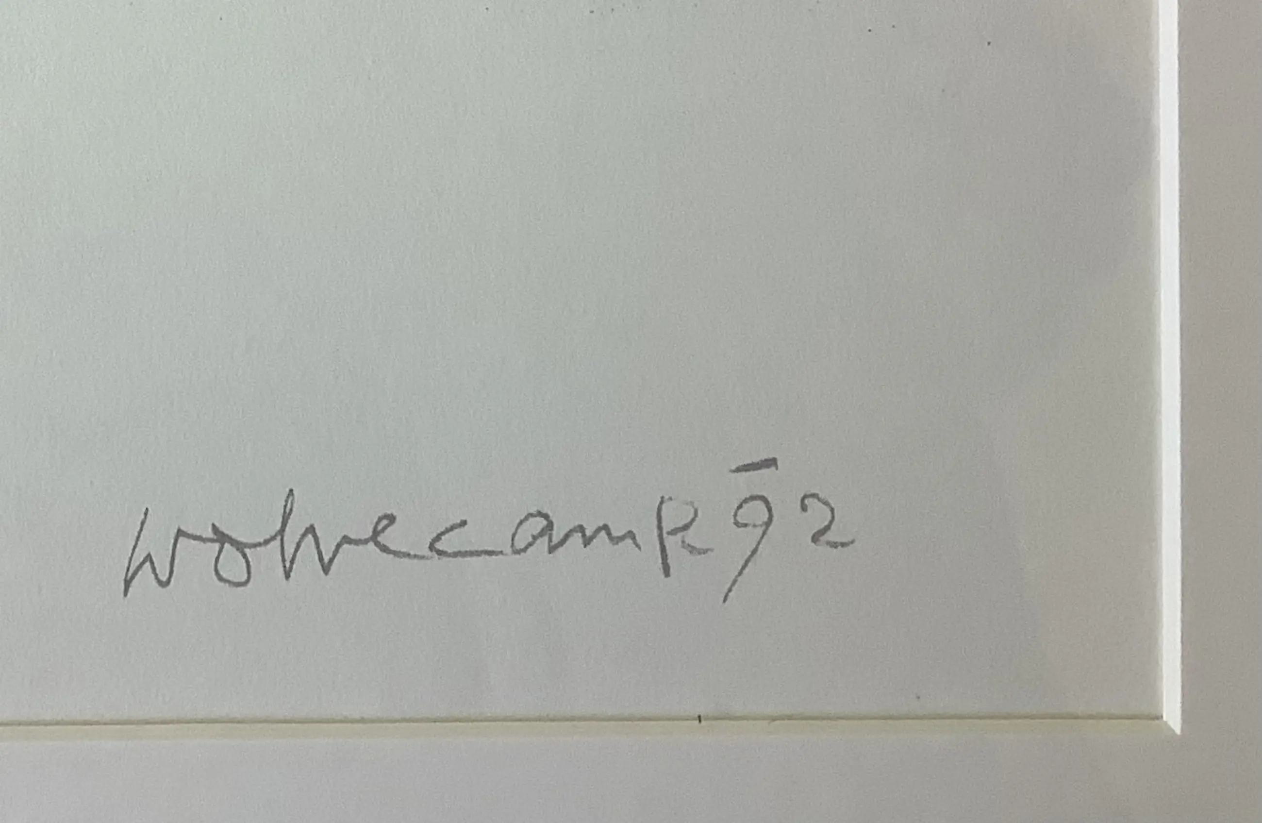 Ingelijst: Ja, in authentieke lijst uit de jaren 90 van de vorige eeuw. Betreft witte houten lijst met zilverkleurige bies, 3 cm breed en 2,5 cm hoog. Heeft een paar zeer kleine plekjes gebruikersschade, zie foto’s.