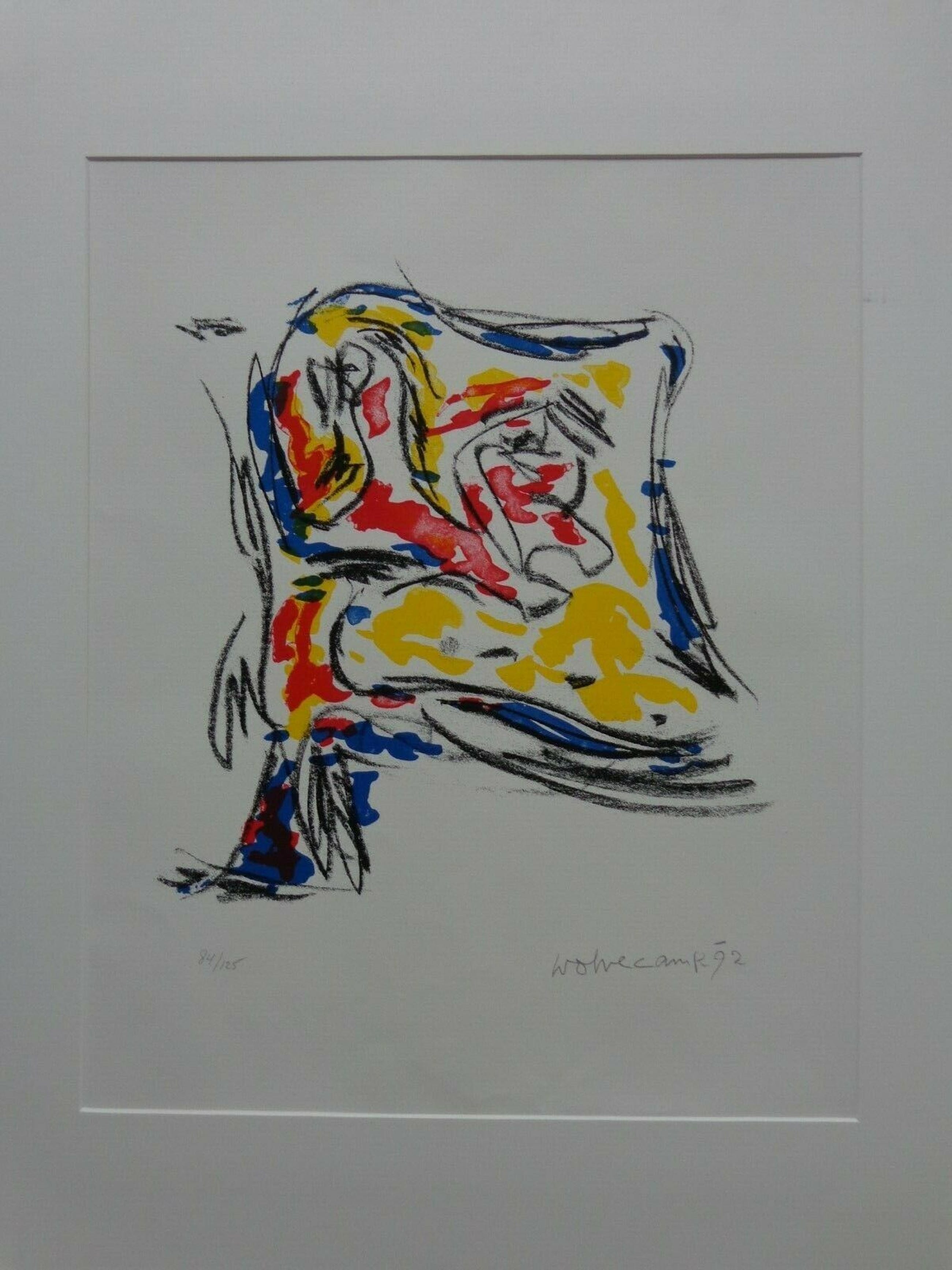 Kader: 66x51cm. Geen glas, passe-partout licht bevuild.