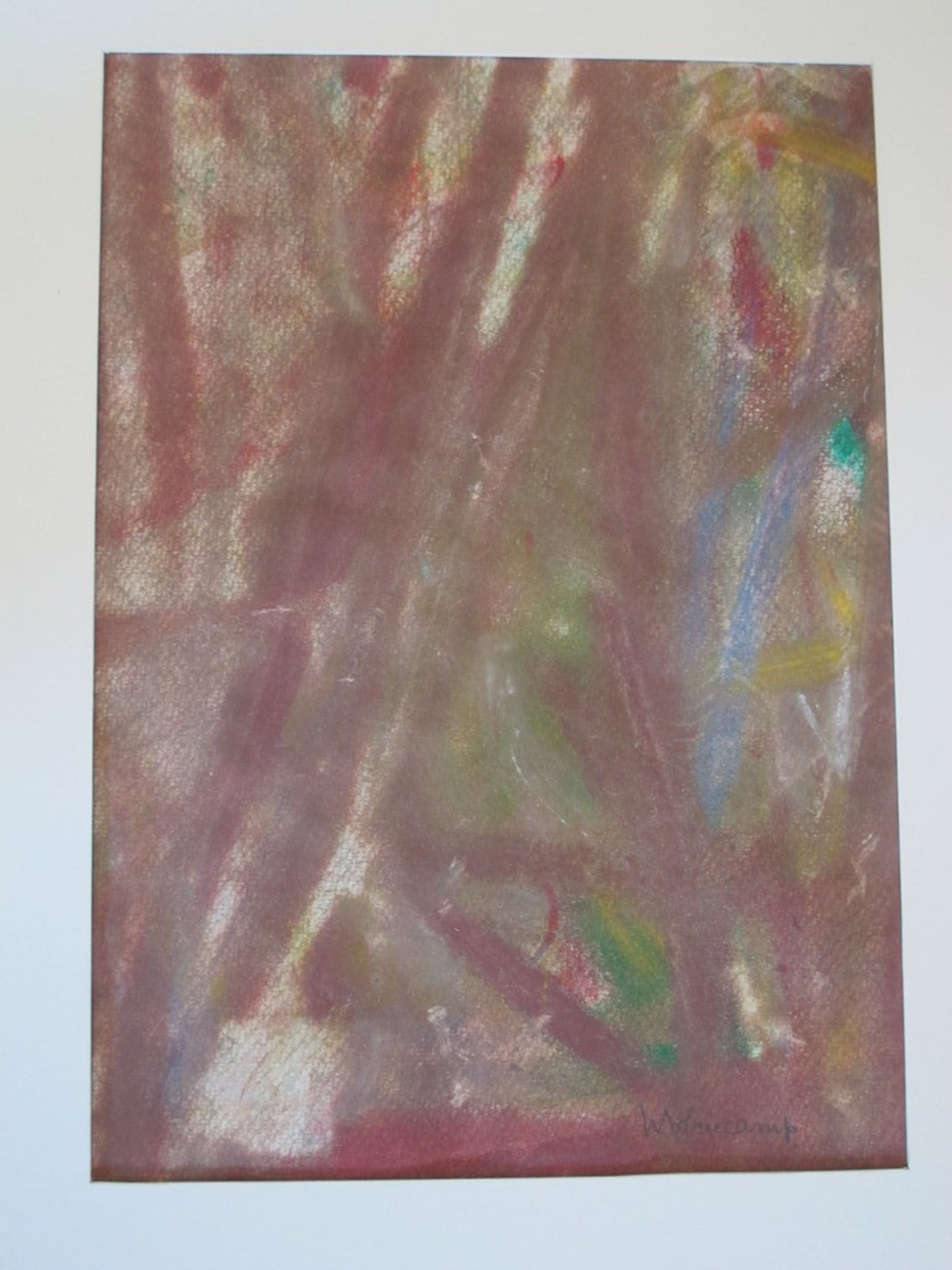 Mooie gouache in passepartout van Theo Wolvecamp, was ooit Cobra kunstenaar.