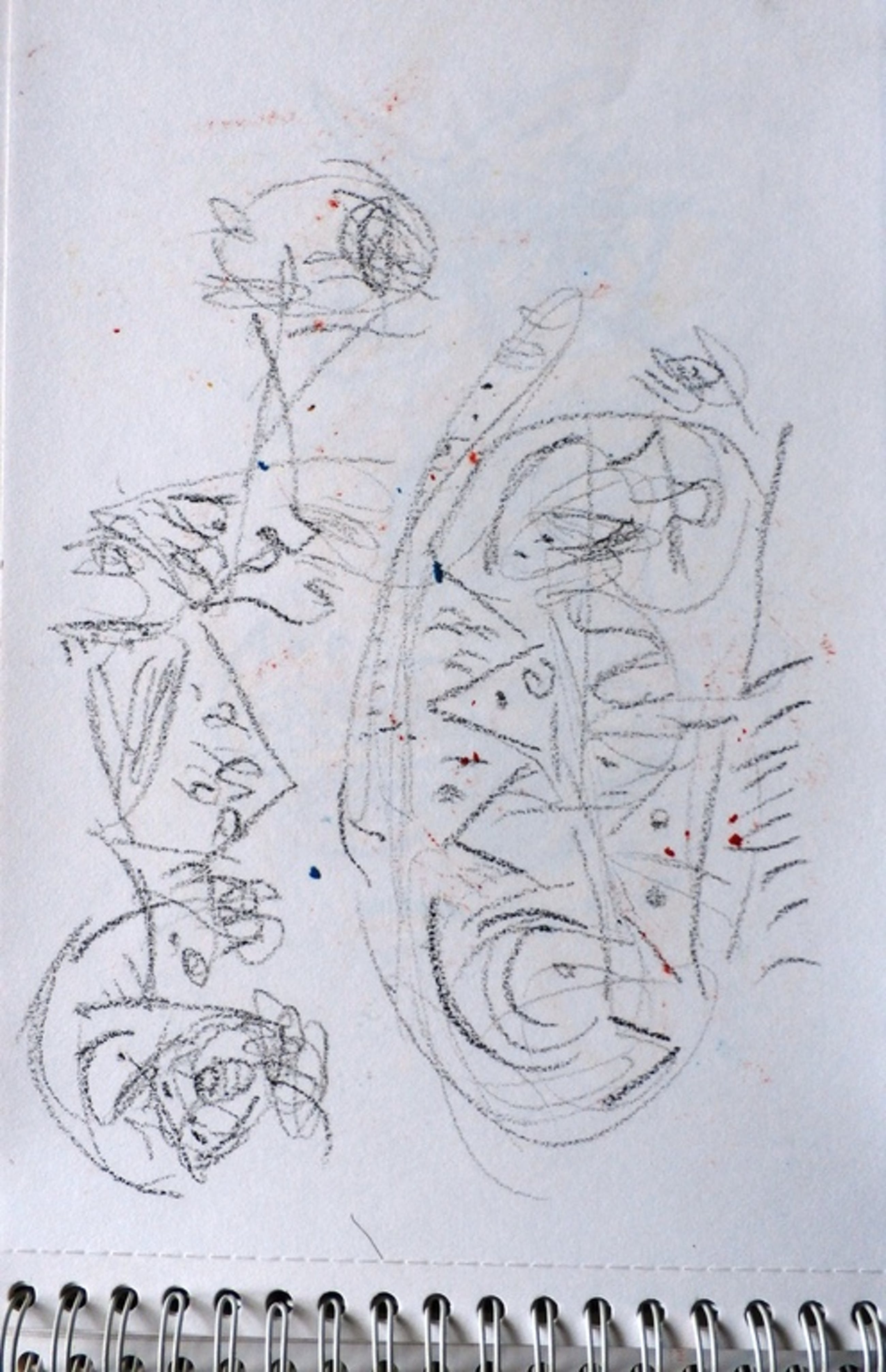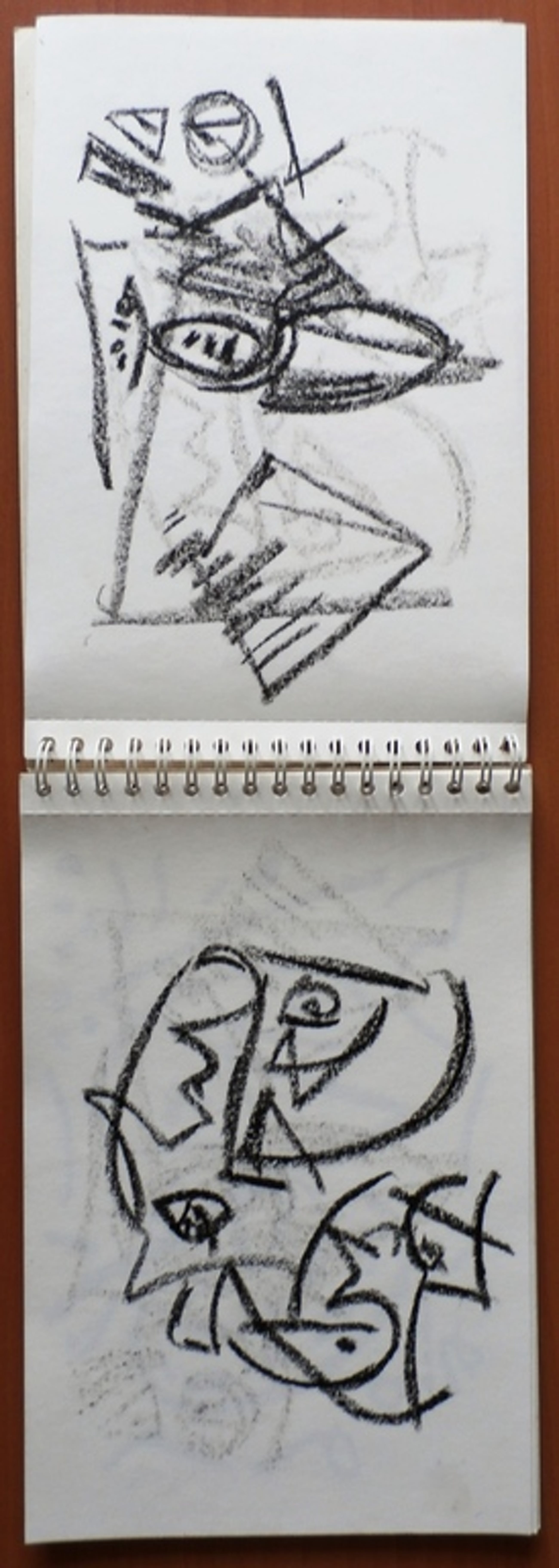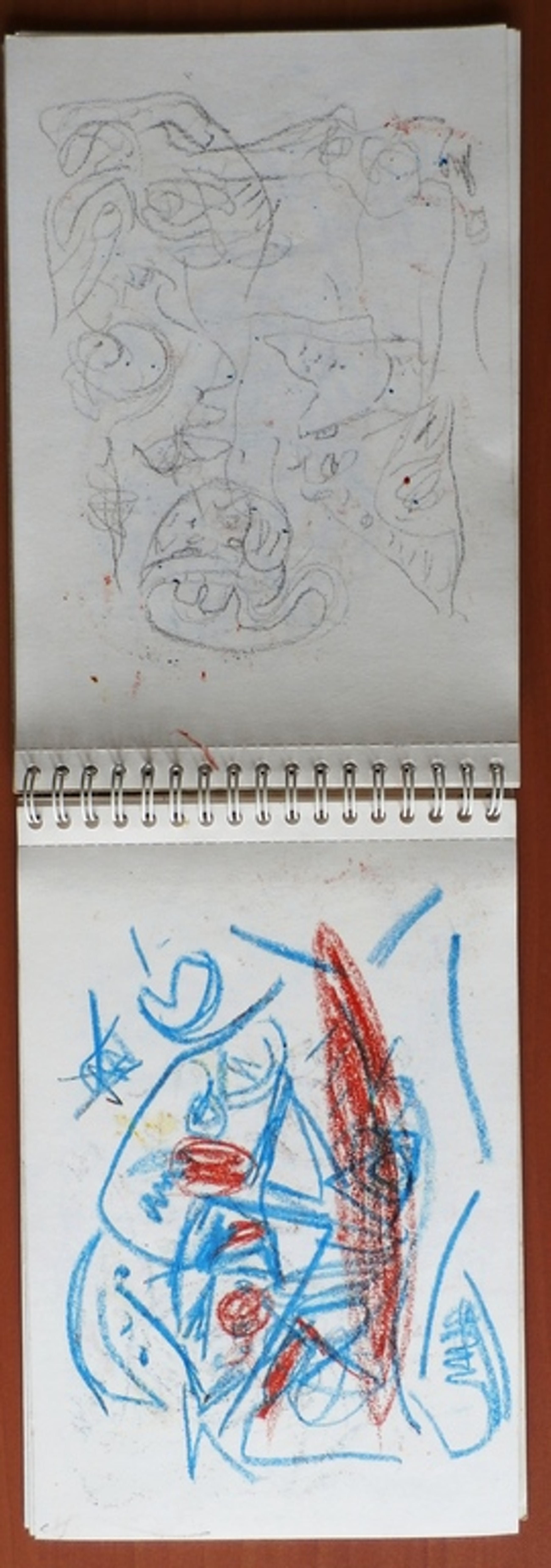 Titel: 10 tekeningen in schetsboek, waarvan 3 dubbelzijdig (= totaal 6 tekeningen) en 4 losse tekeningen.