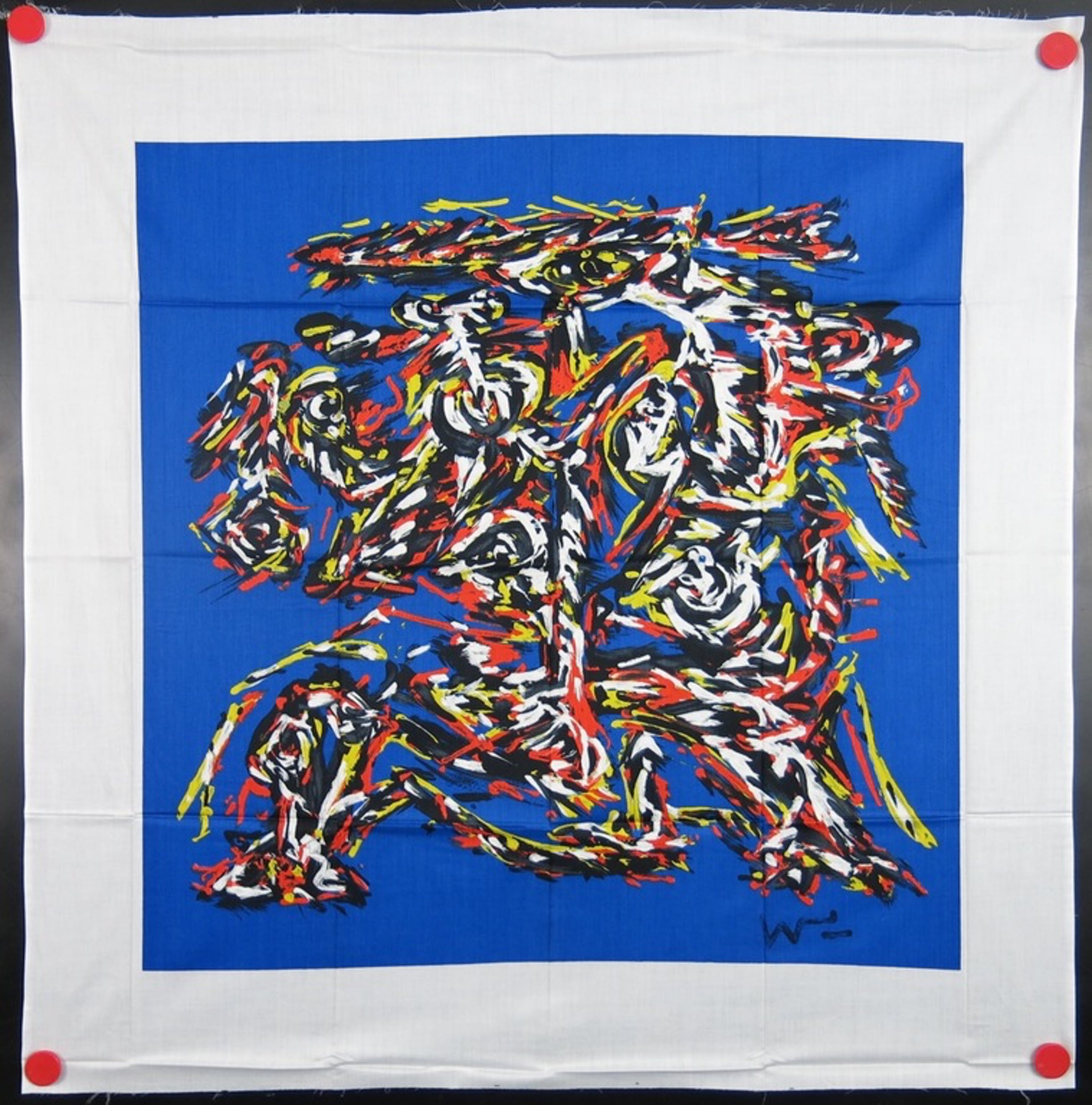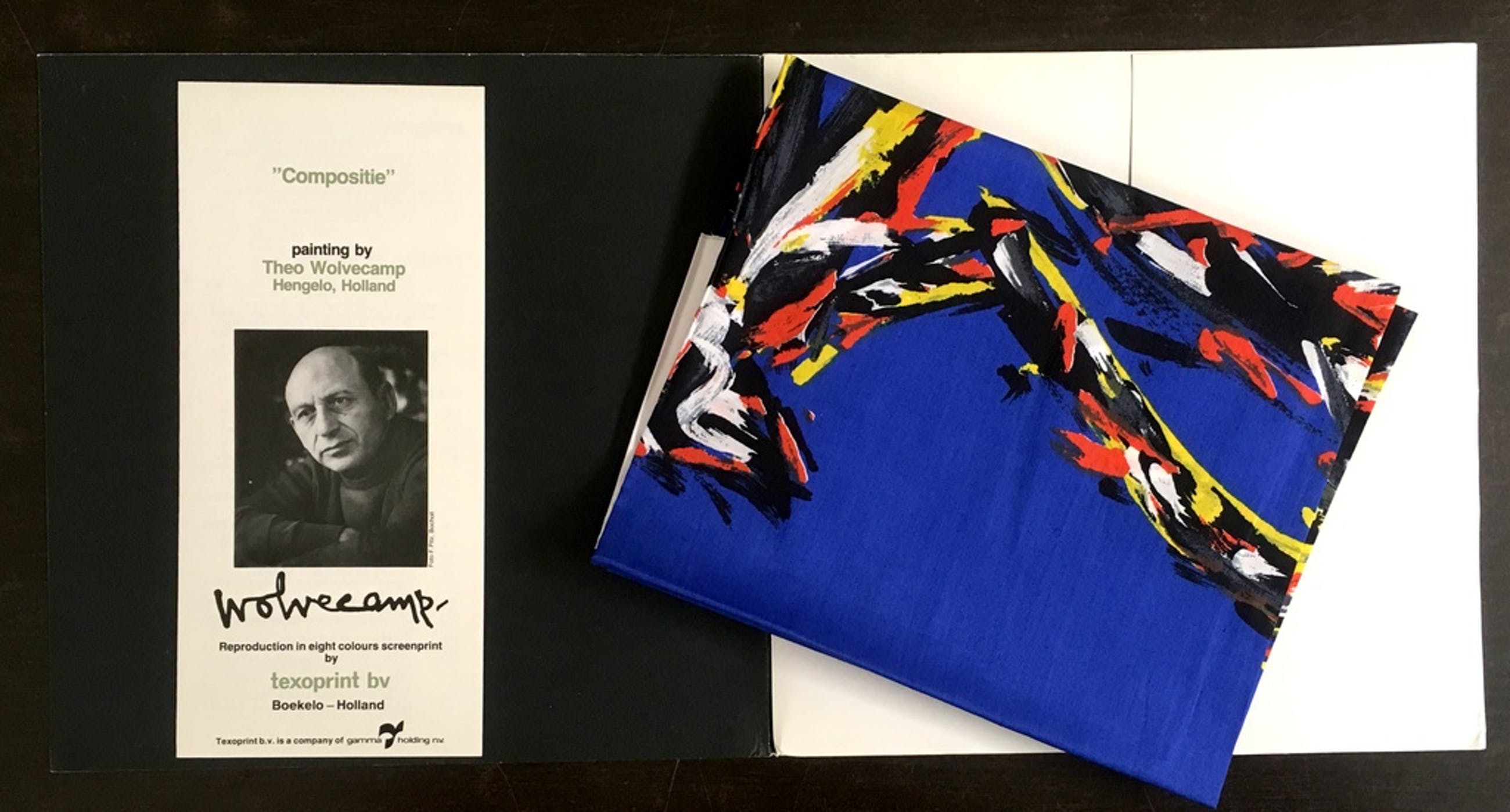 Texoprint bv vroeg jaarlijks een kunstenaar voor de vervaardiging van een zeefdruk op textiel, welke werd uitgebracht in een gelimiteerde oplage. Wij veilen nu diverse van deze uitgaves.