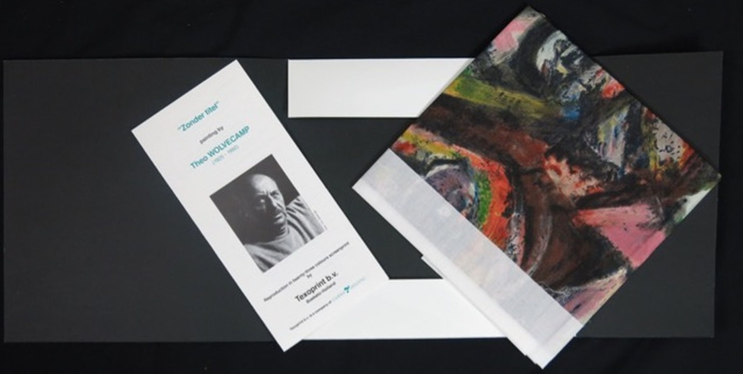 Texoprint bv vroeg jaarlijks een kunstenaar voor de vervaardiging van een zeefdruk op textiel, welke werd uitgebracht in een oplage van 200. Wij veilen nu diverse van deze uitgaves.