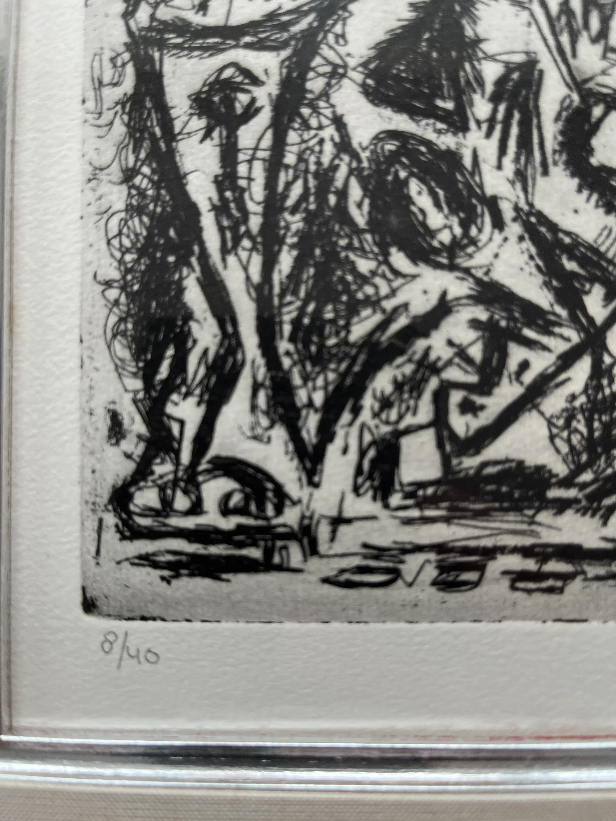 Prachtige ets in verdiept linnen passepartout en ingelijst in professionele lijst met zilveraccent langs het passepartout. Deze ets is uit 1984 en in een zeer kleine oplage van 40 stuks, deze is nummer 8