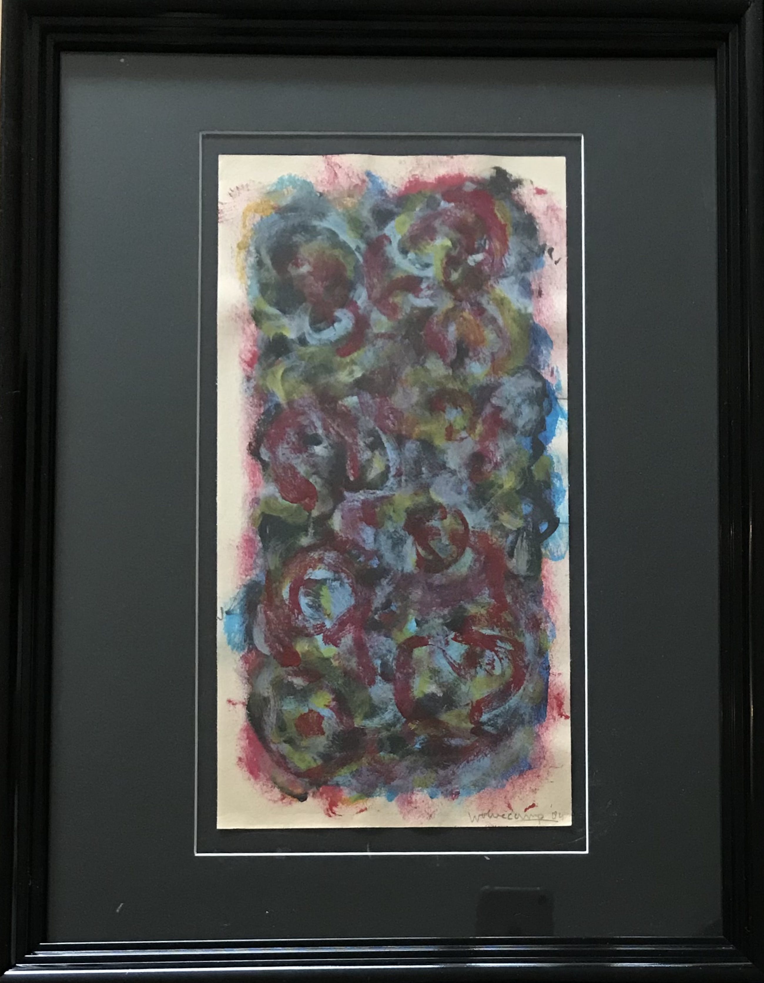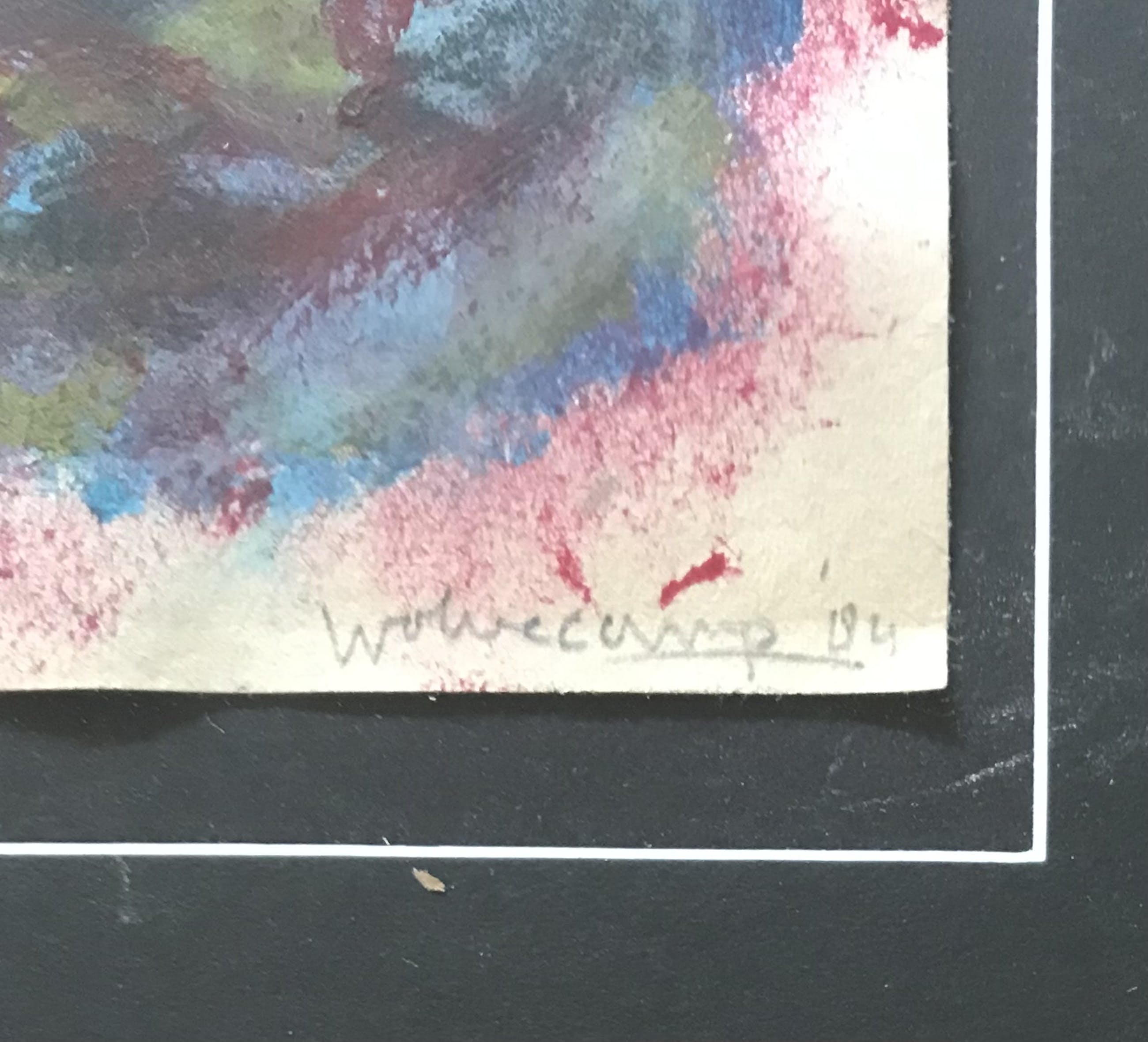 Theo Wolvecamp Abstracte compositie gesigneerd rechtsonder en gedateerd 84 of 89 voor mij niet goed leesbaar het werk is ingelijst en onder passe-partout Wordt aangetekend verstuurd