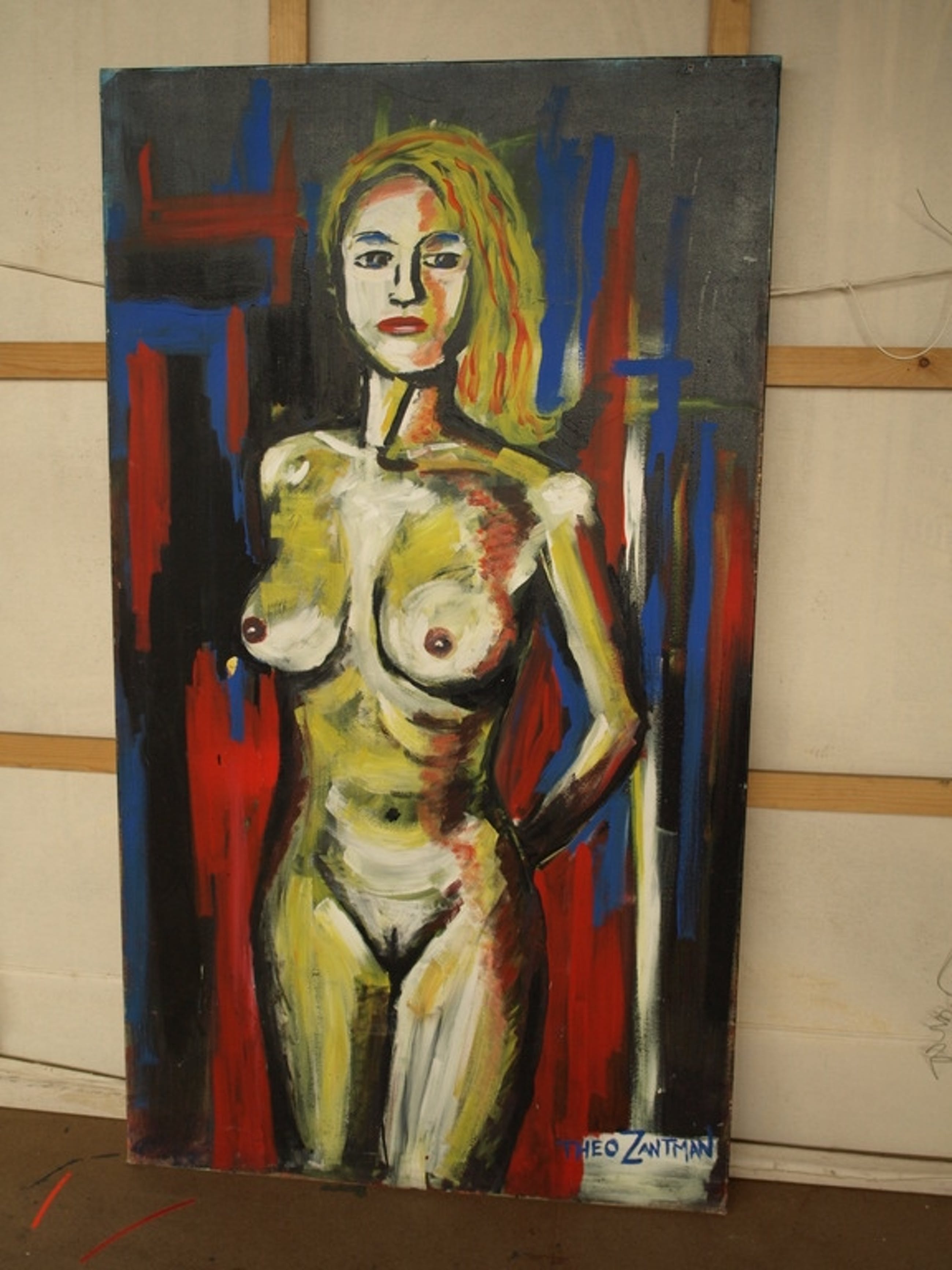 Een groot werk van de Nederlandse kunstenaar Theo Zantman. De vrouw op het schilderij zou mogelijk Penney de Jager kunnen zijn, waarmee de kunstenaar 18 jaar een relatie had.