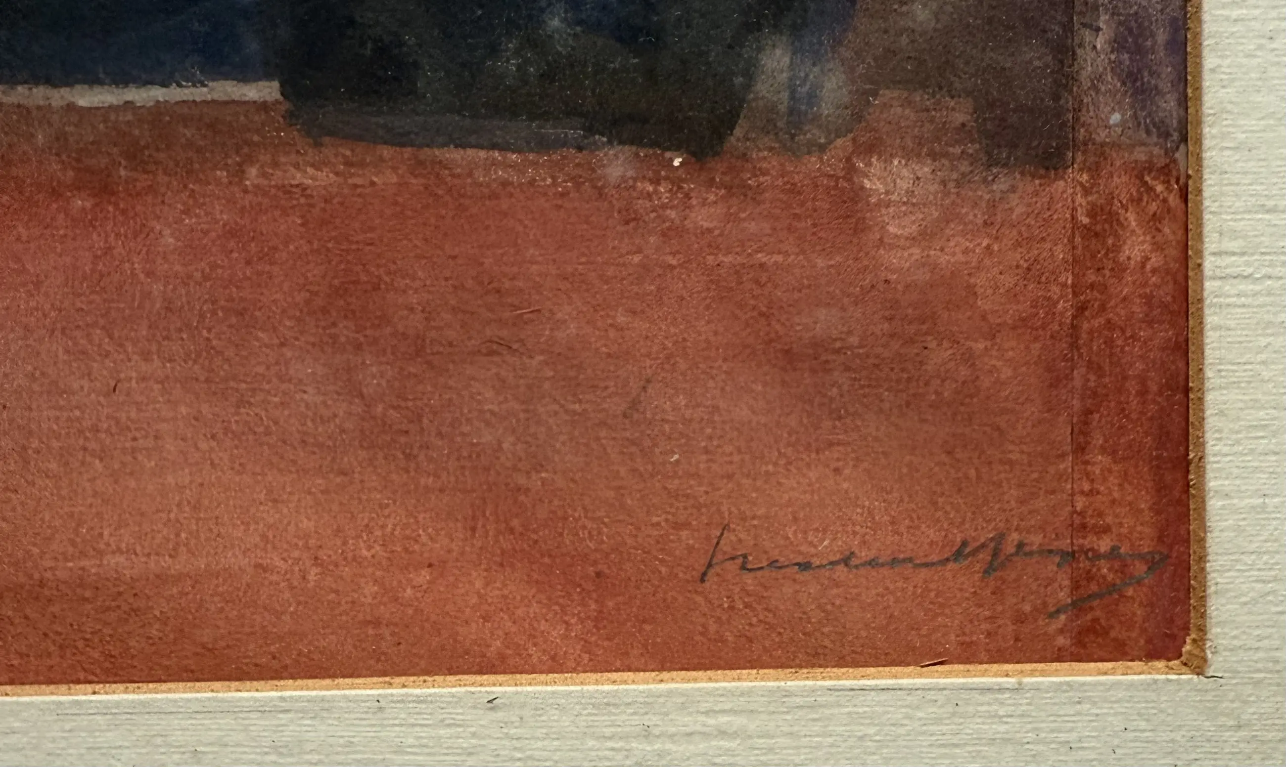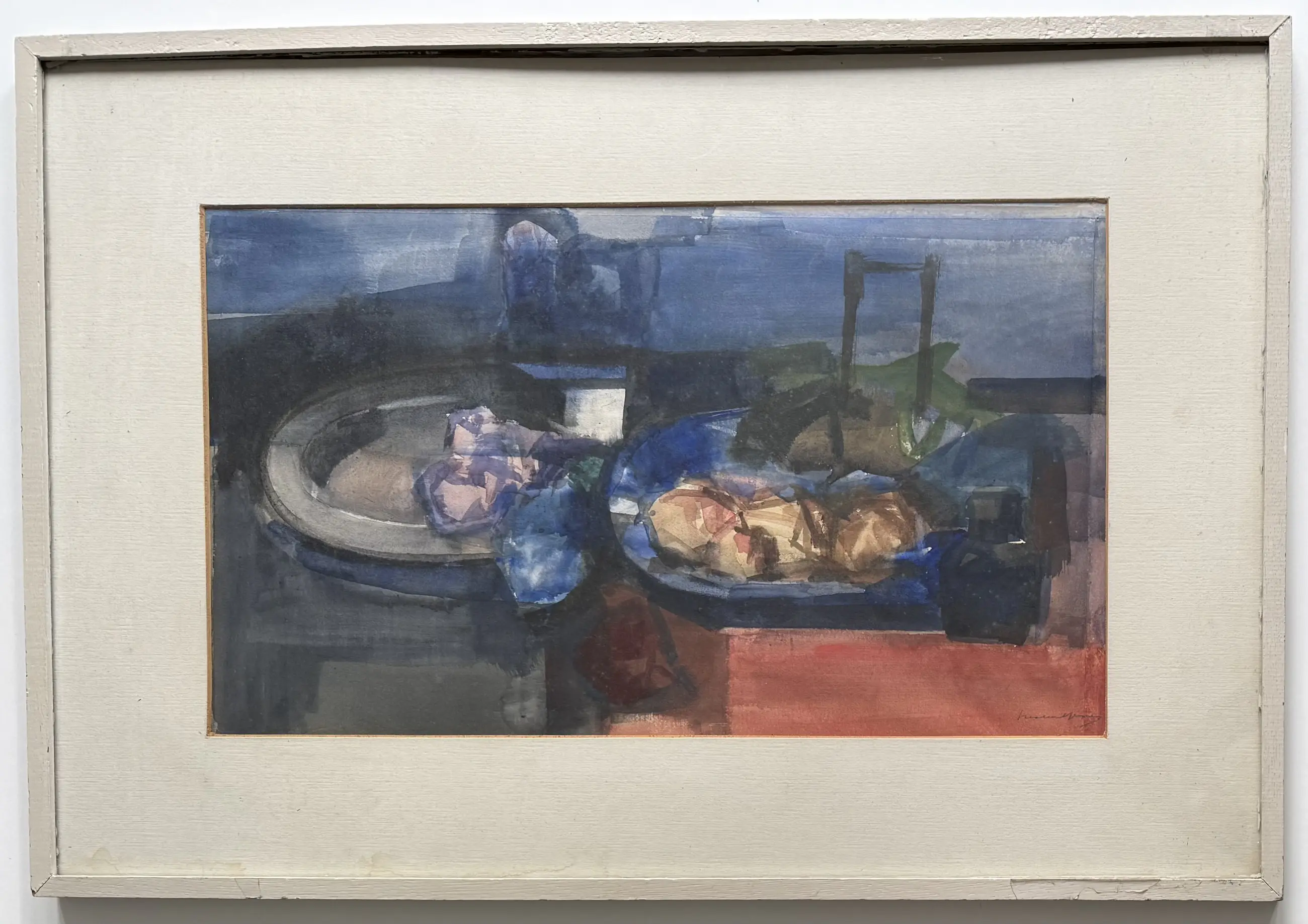 Het werk zelf is in prima conditie. De lijst en de passe-partout hebben leeftijd. Wat vlekjes aan de binnenzijde van het glas.