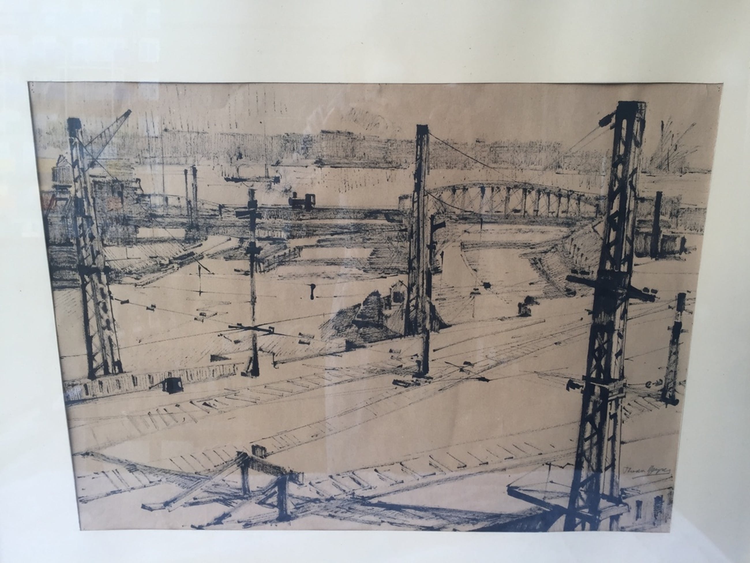 Ingelijst achter glas, buitenmaat lijst 79,5 x 64,5 cm