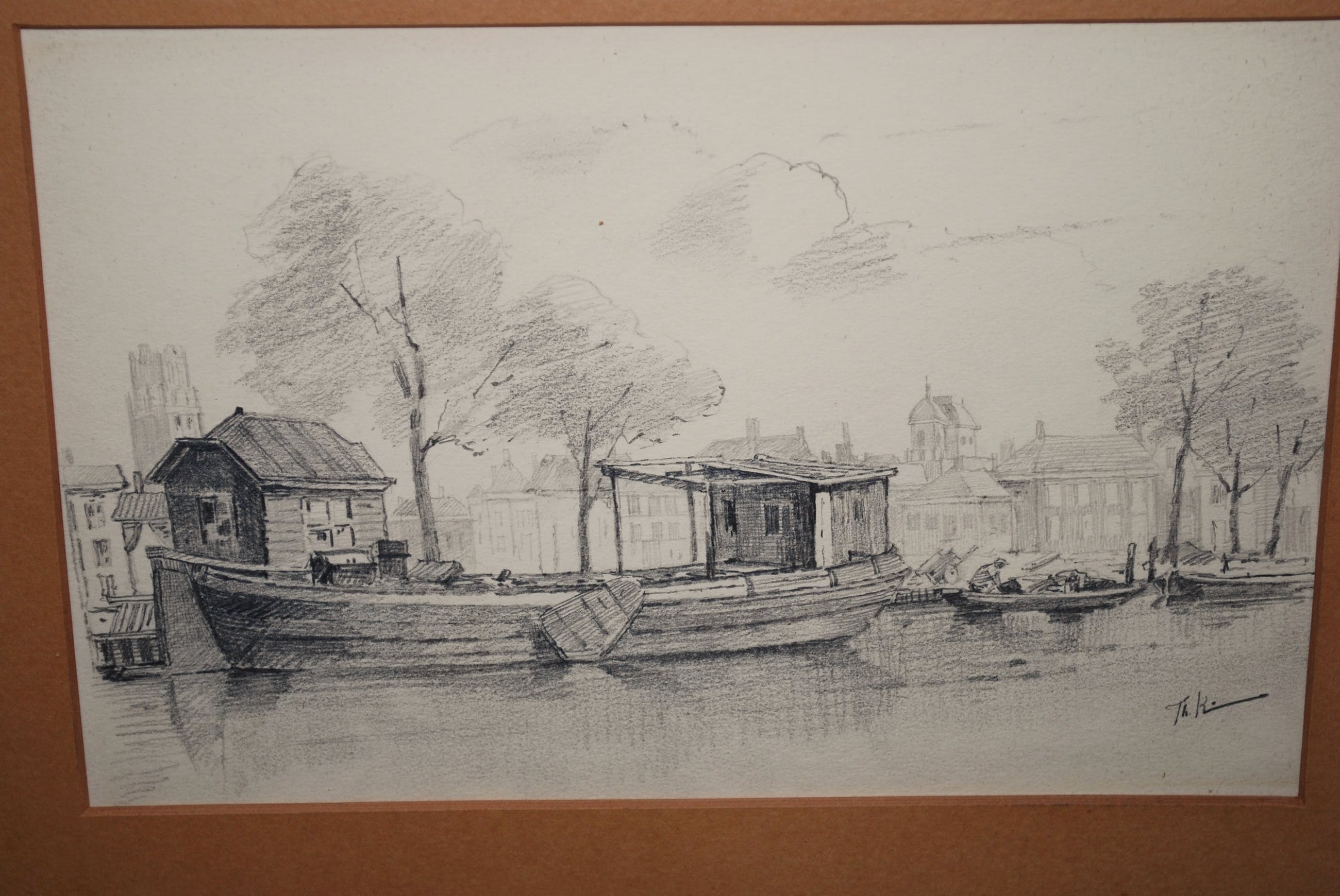eikenhouten lijst, achter p.partout en (mooi oud) glas.