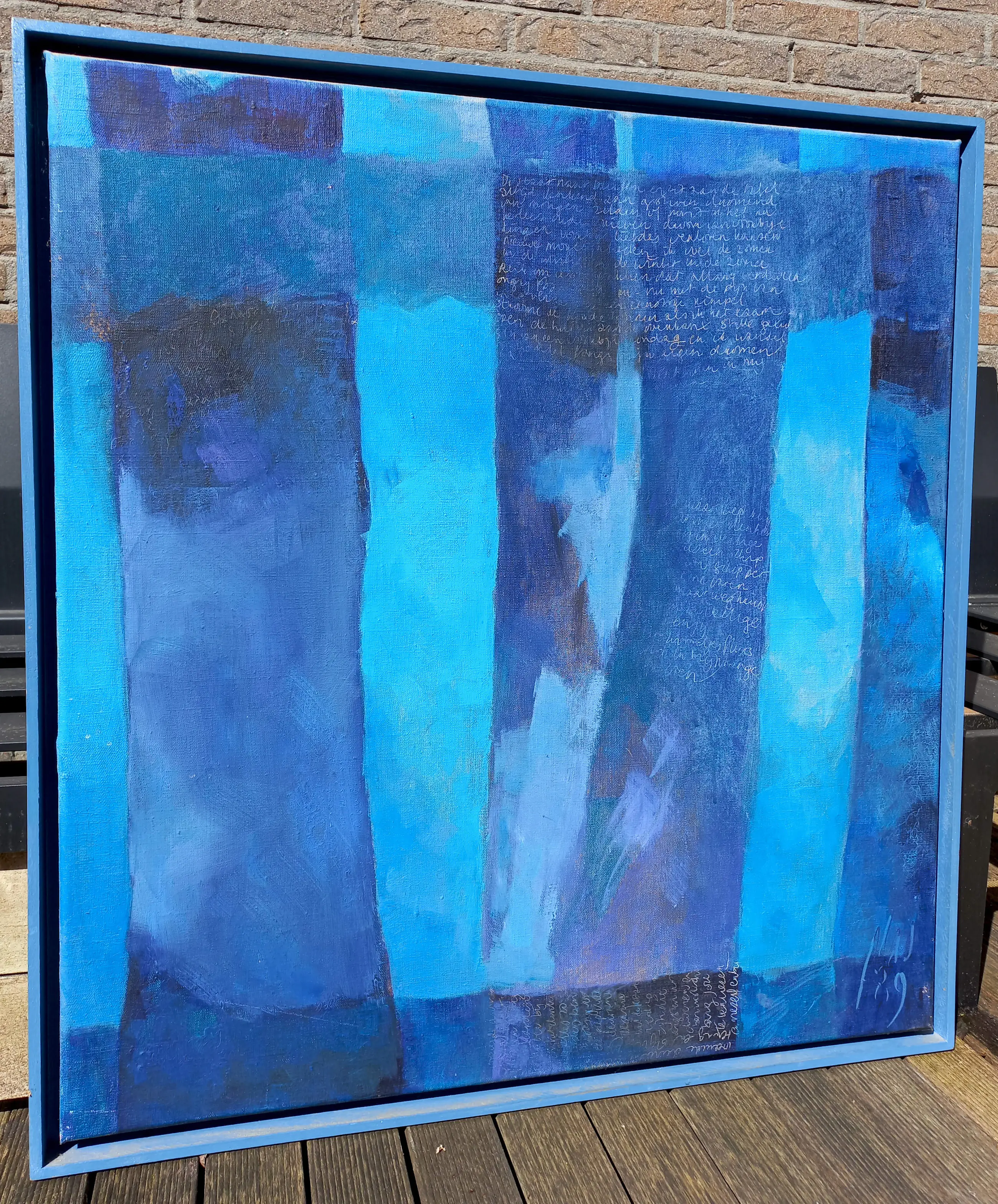 Afmetingen: 79cm x 74cm (incl. lijst), 75cm x 70cm (doek)