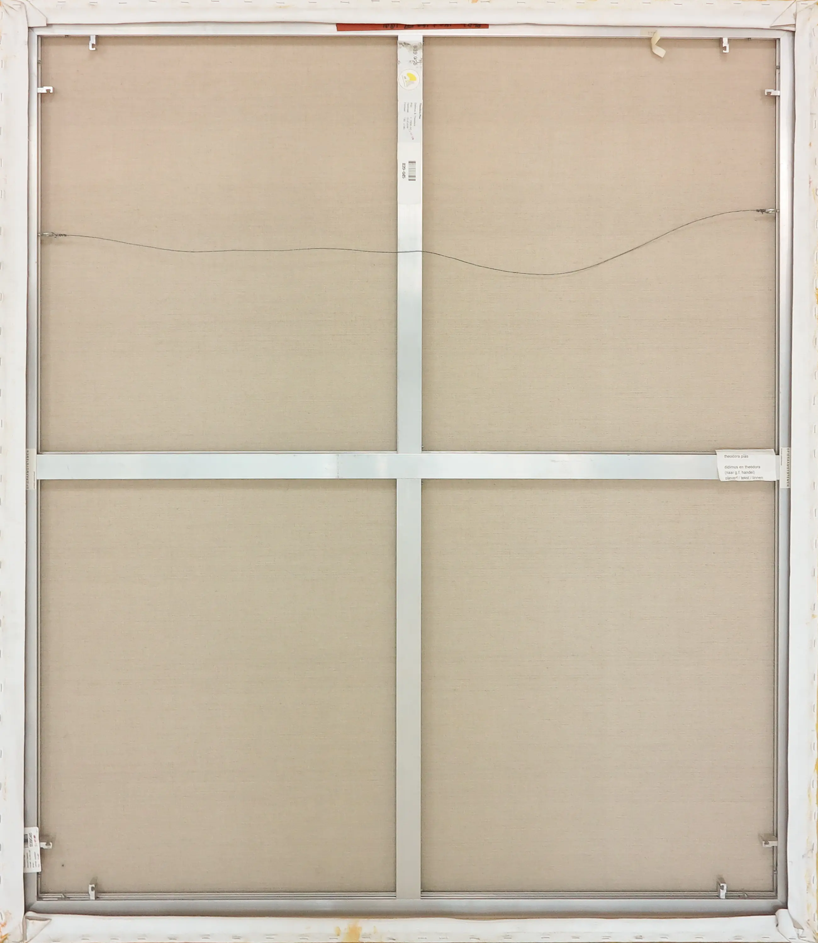 | Enkele slijtagesporen aan de randen en hoeken van het doek. Daarnaast een veegje links in de compositie. | |
