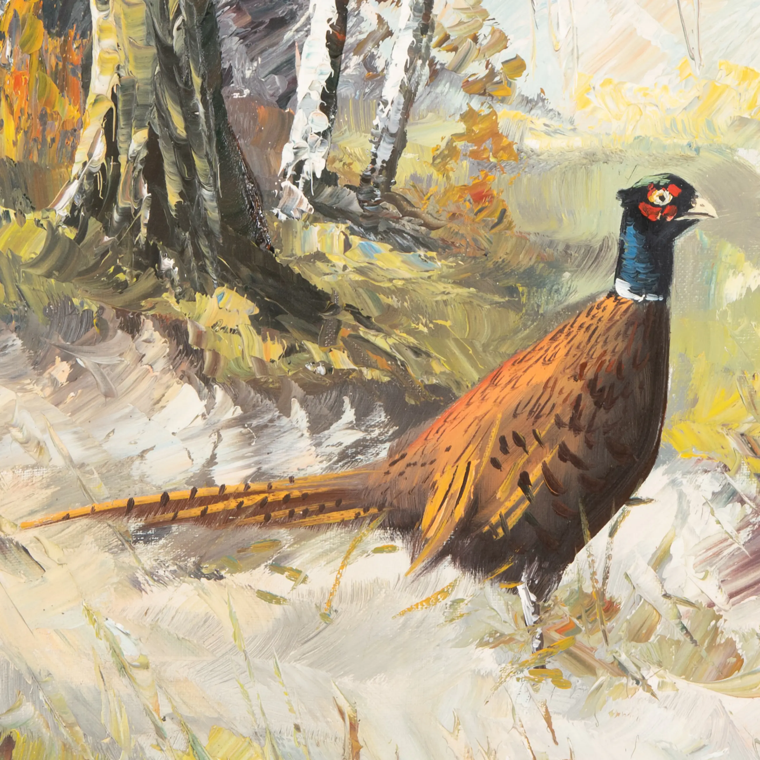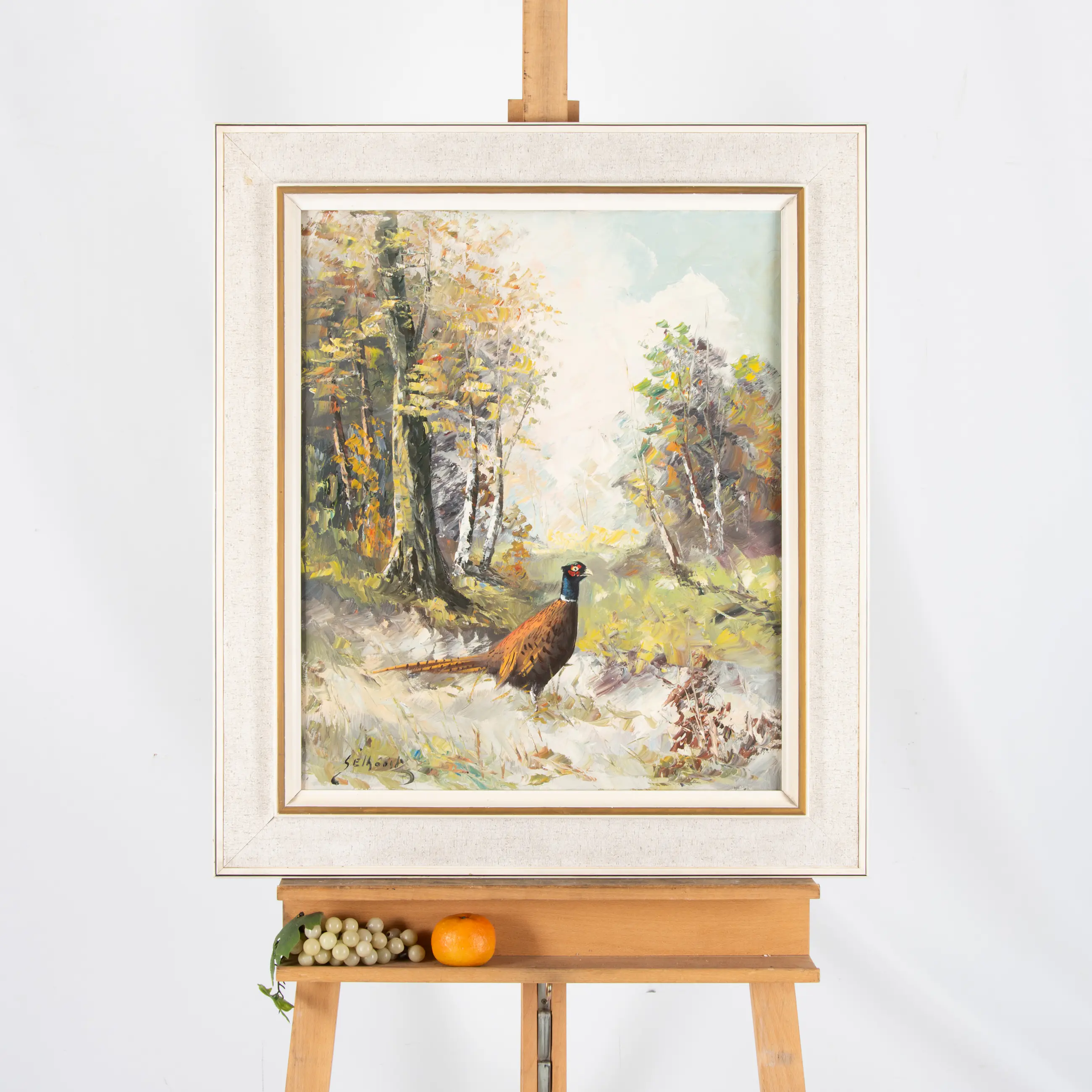 Dit fraaie werk toont een landschap waarin een fazant de hoofdrol speelt. Een sfeervol schilderij van de hand van kunstenaar Theodorus Selhorst, die vooral bekendstaat om zijn prachtige landschappen.