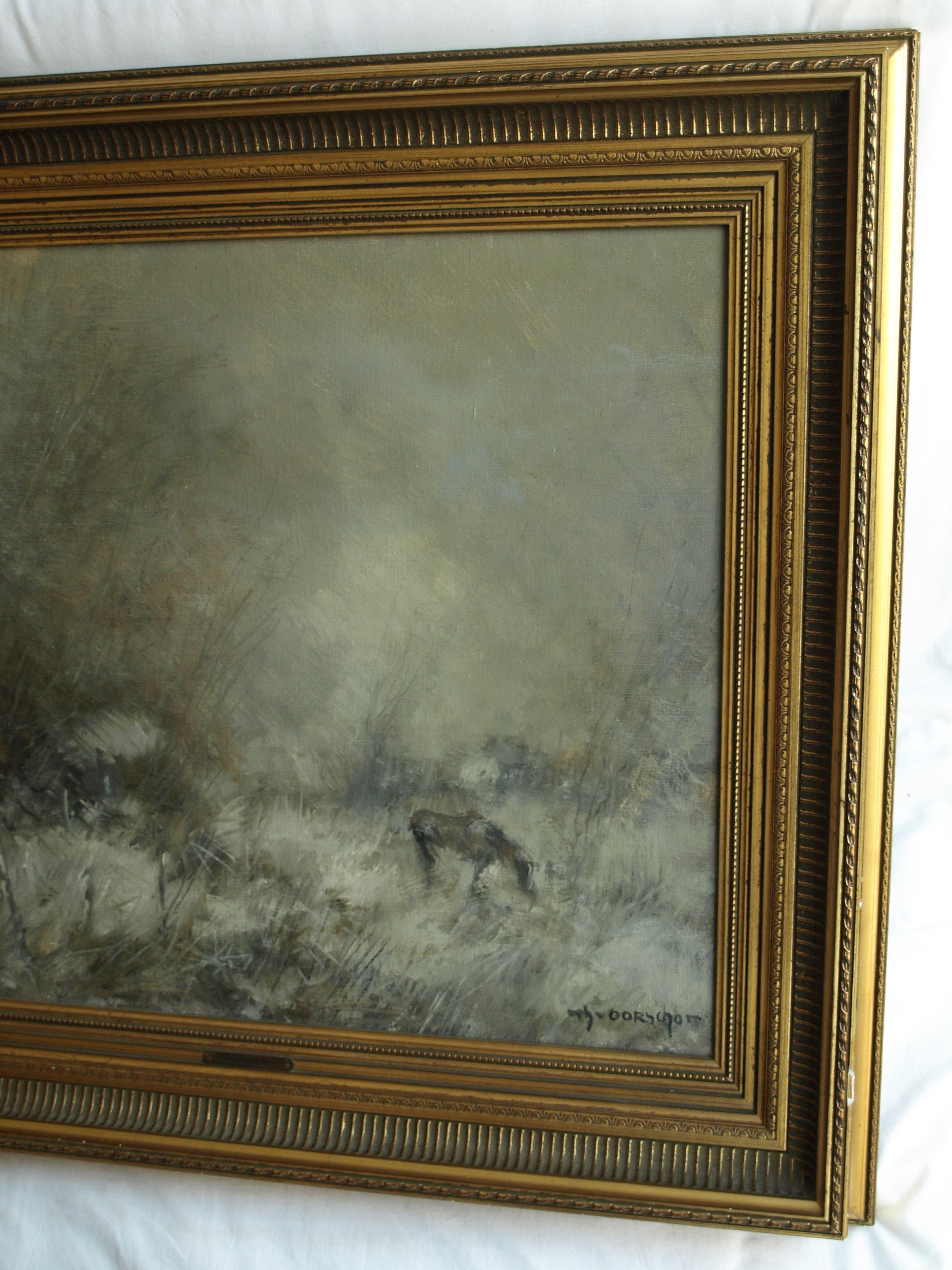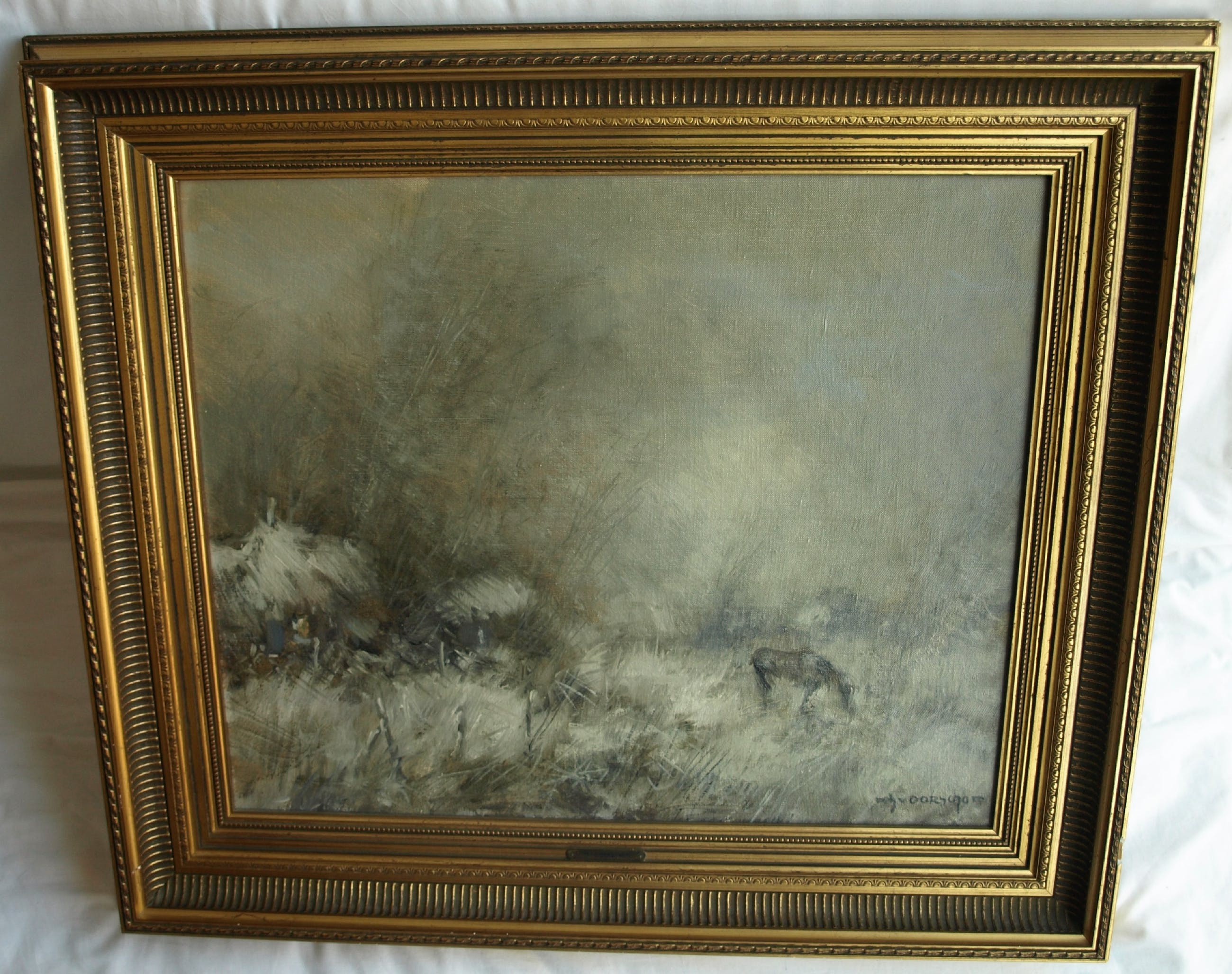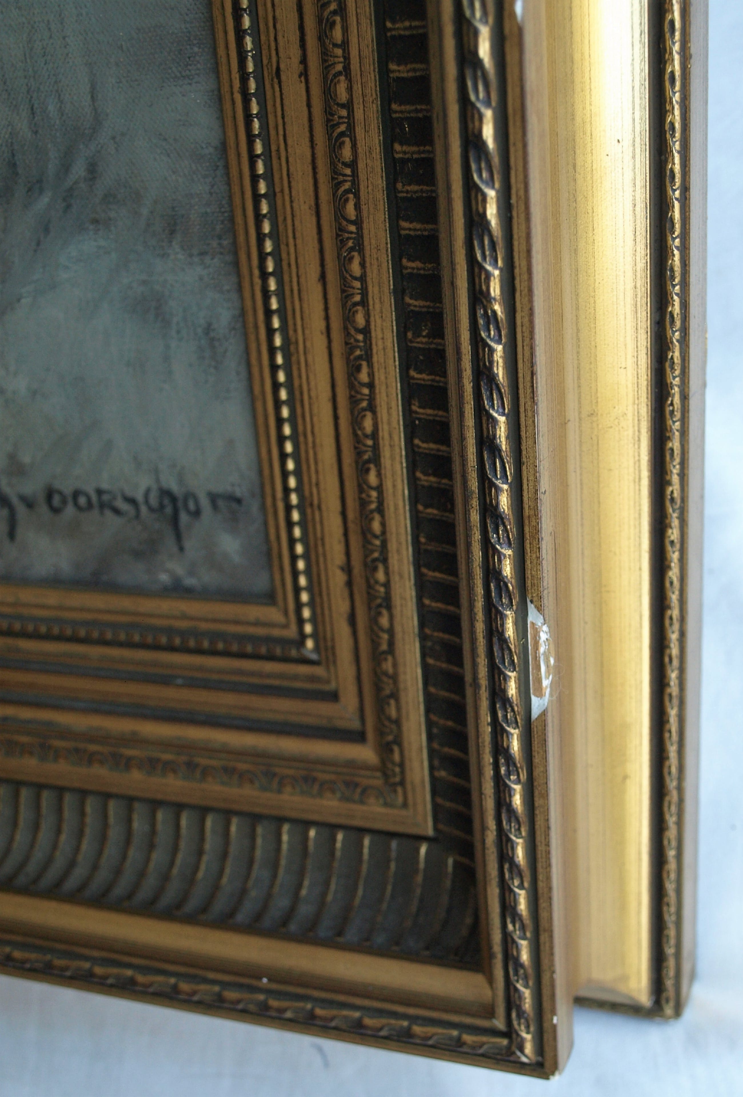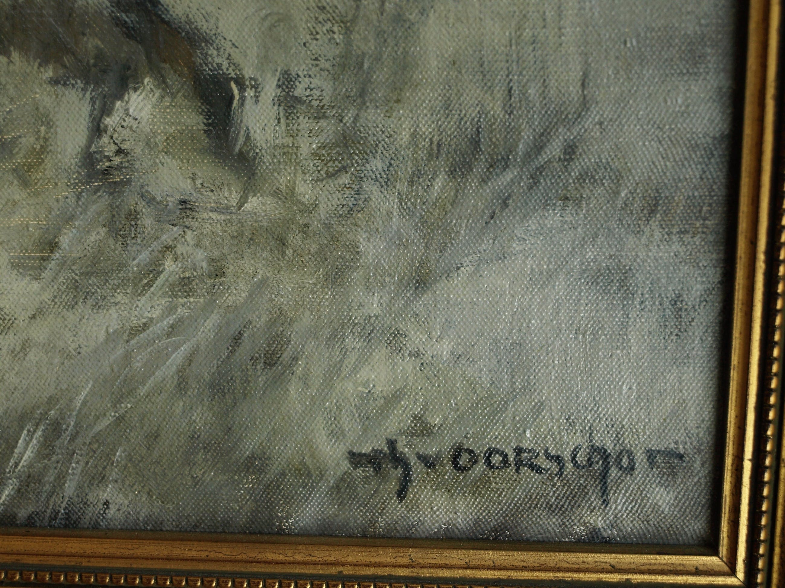 -Olieverf op doek, gespannen op een houten spieraam en ingelijst in de originele houten lijst.