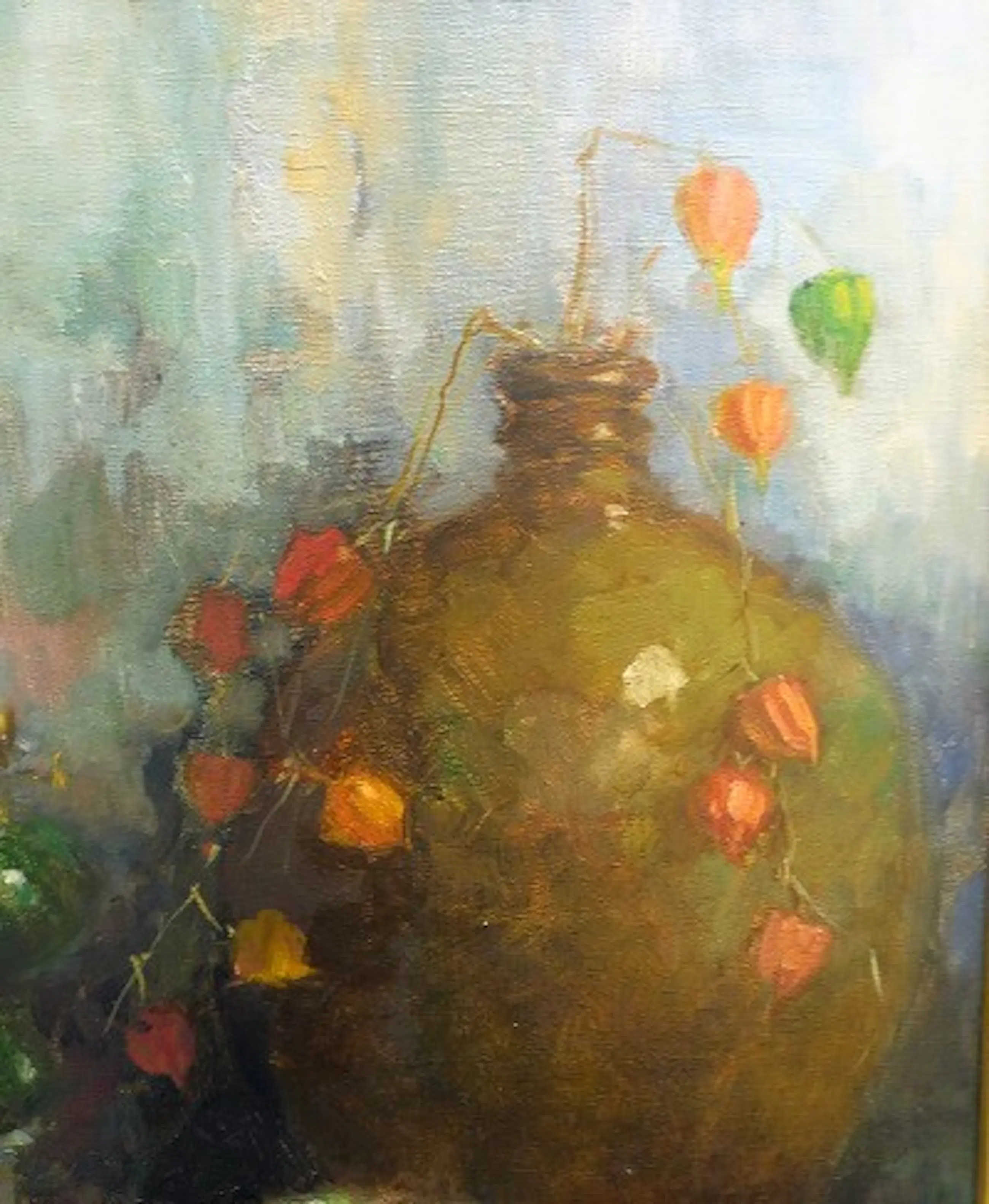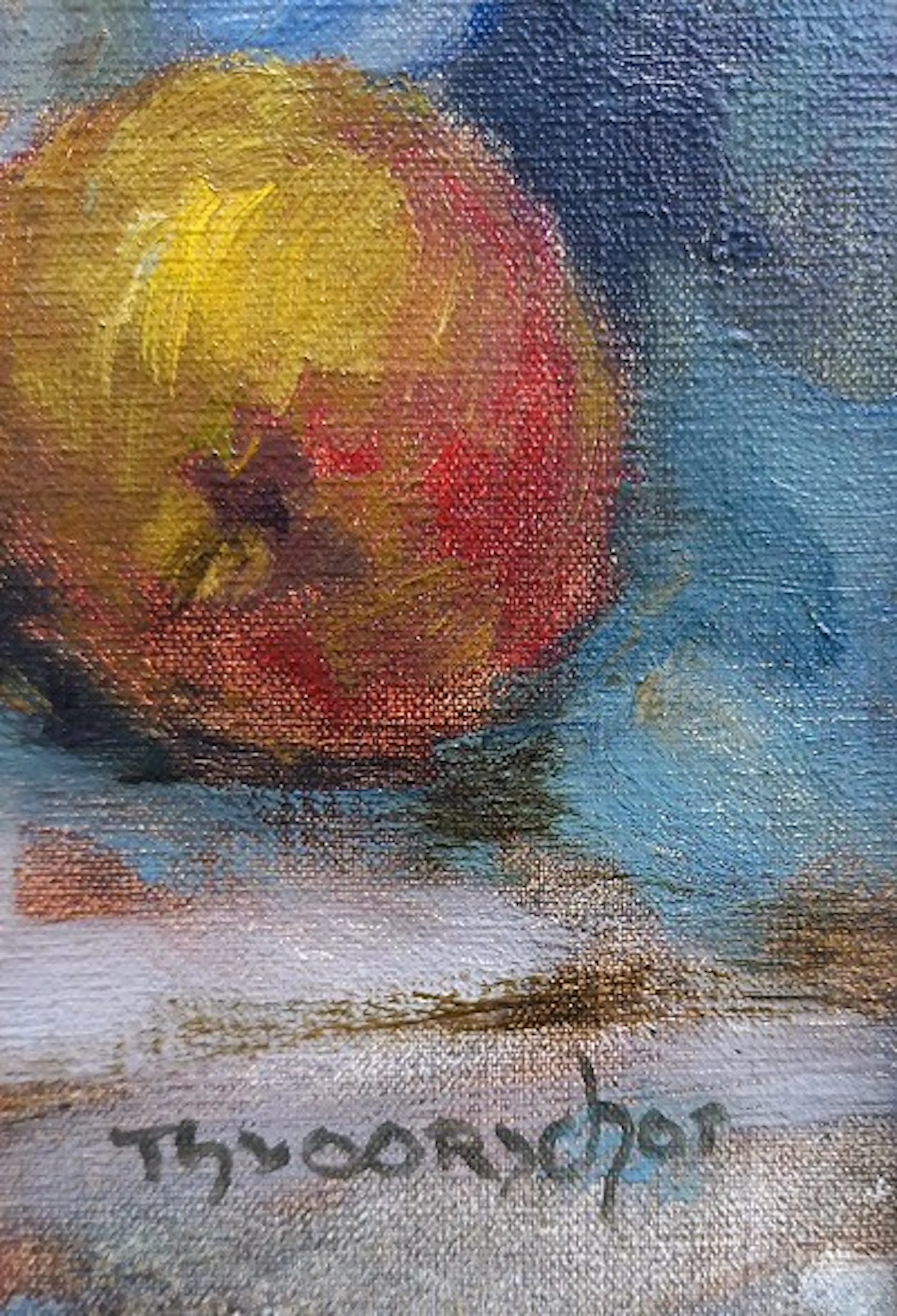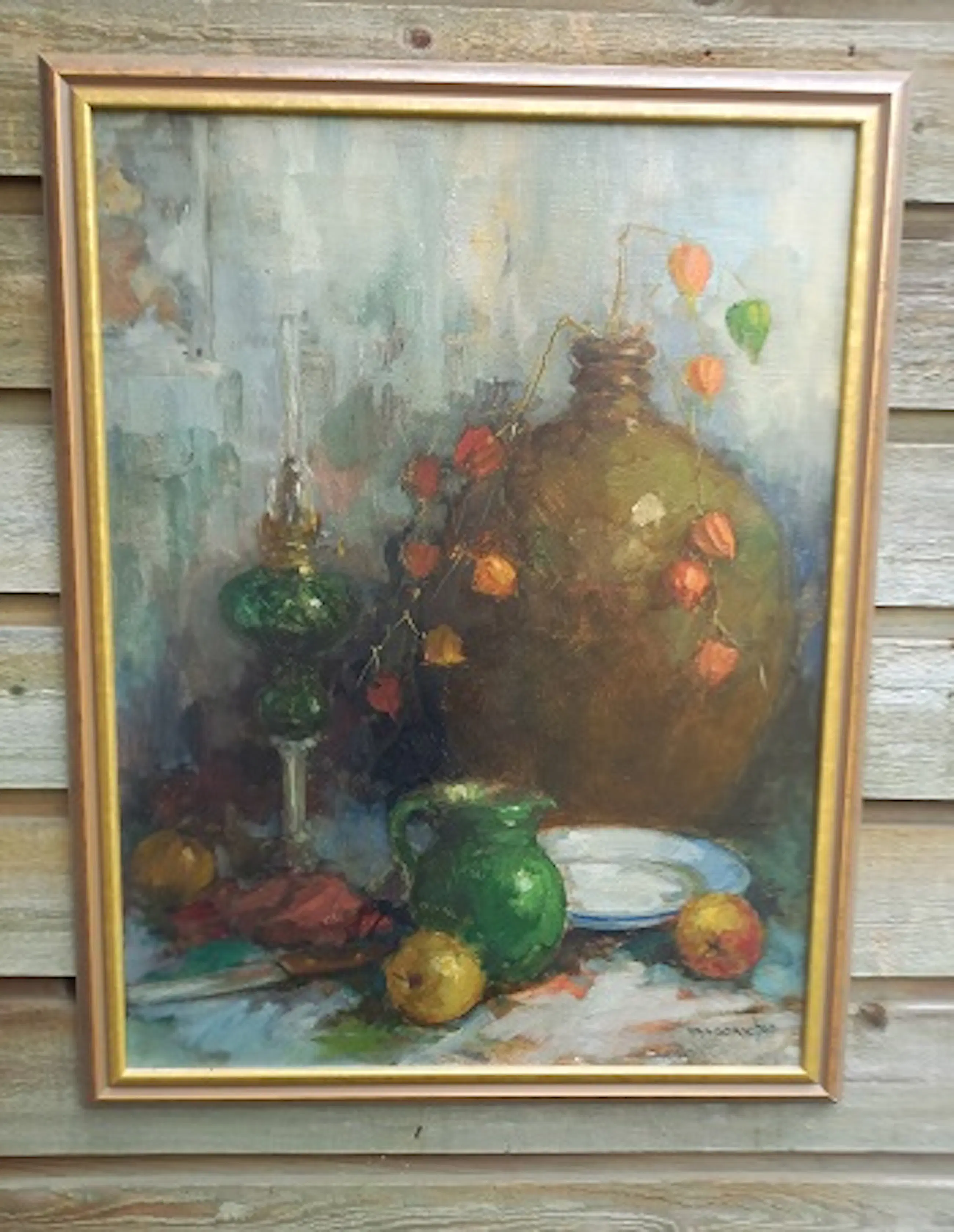Prachtig stilleven van de bekende Nedelandse kunstschilder Theo van Oorschot. Mooie compositie en een prachtig kleurenpalet, geschilderd in een impressionistische stijl. Veel schilderijen van Theo hebben hun weg gevonden in Nederland en verder Europa in. Het schilderij is gevat in een gave klassieke lijst. Voor de kosten van het verpakkingsmateriaal brengen wij 12 euro in rekening.