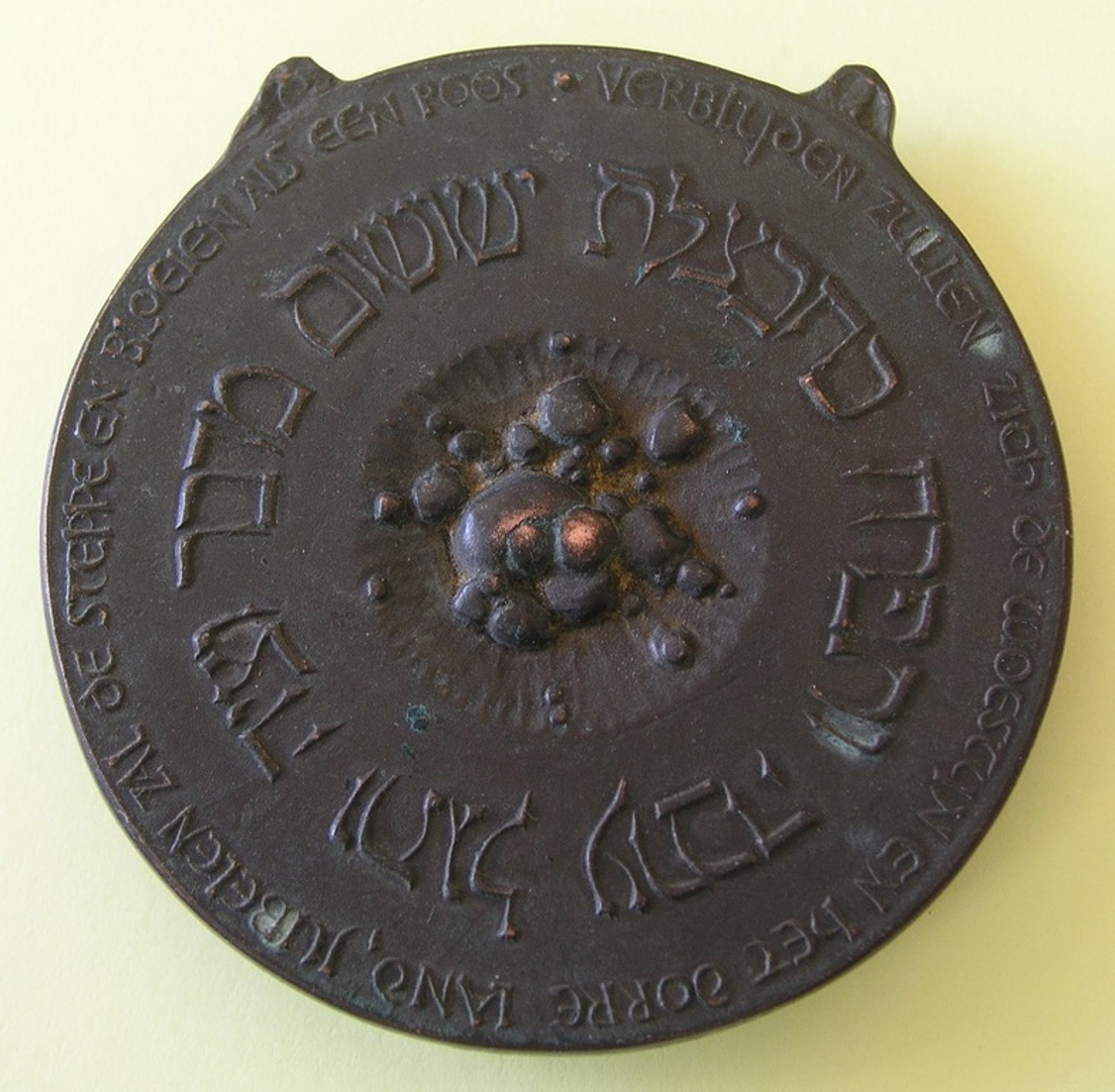 Het randschrift in Hebreeuws en Nederlands is ontleend aan Jesaia 35 : 1 en verklaart de gedachte van de voorzijde: de verwachting van het tot bloei komen van wat vroeger dorre woestijn was. Het Hebreeuws is het ongepunteerde schrift, dat nu in Israël gebruikelijk is. Dit tekstgedeelte omsluit als ornamentaal symbool een stukje dorre woestijn in de vorm van een hoopje stenen.