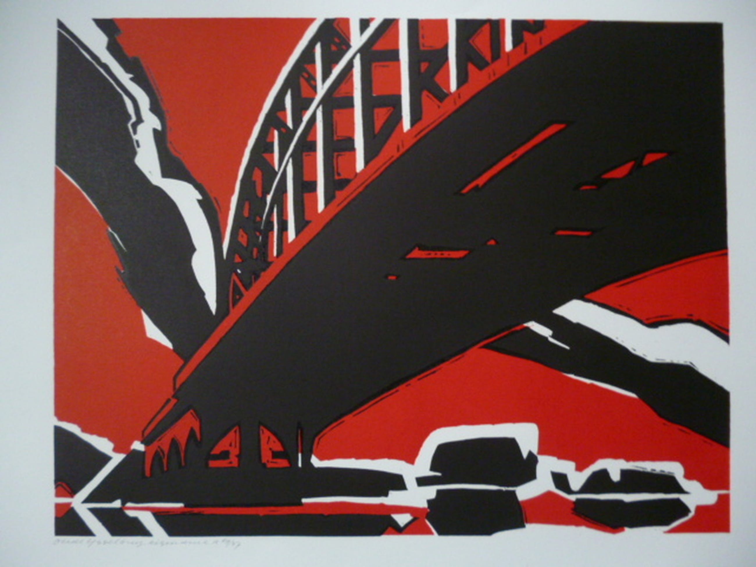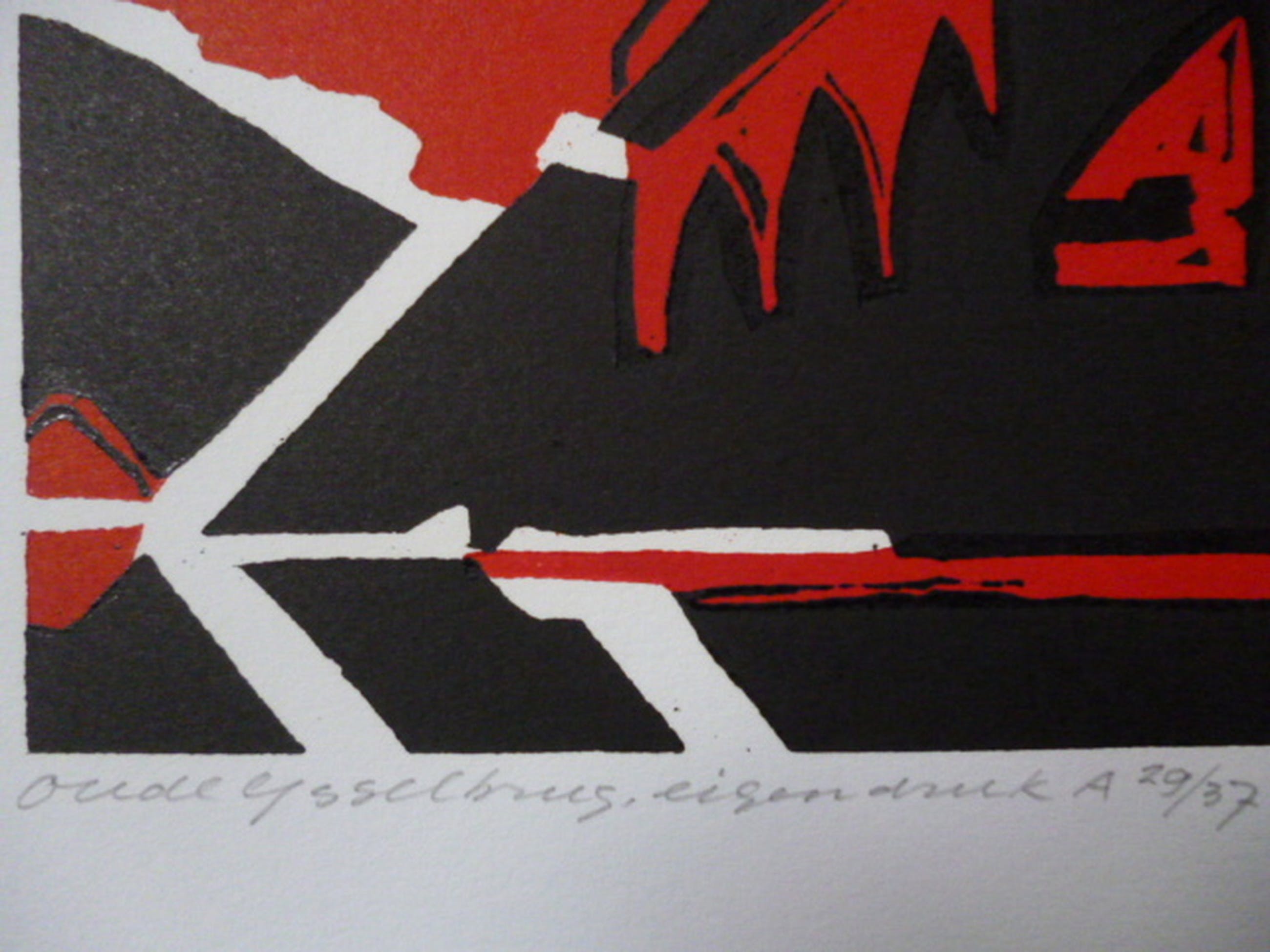 Kleurenlinosnede, potlood getiteld, eigen druk en genummerd 29/37 linksonder.