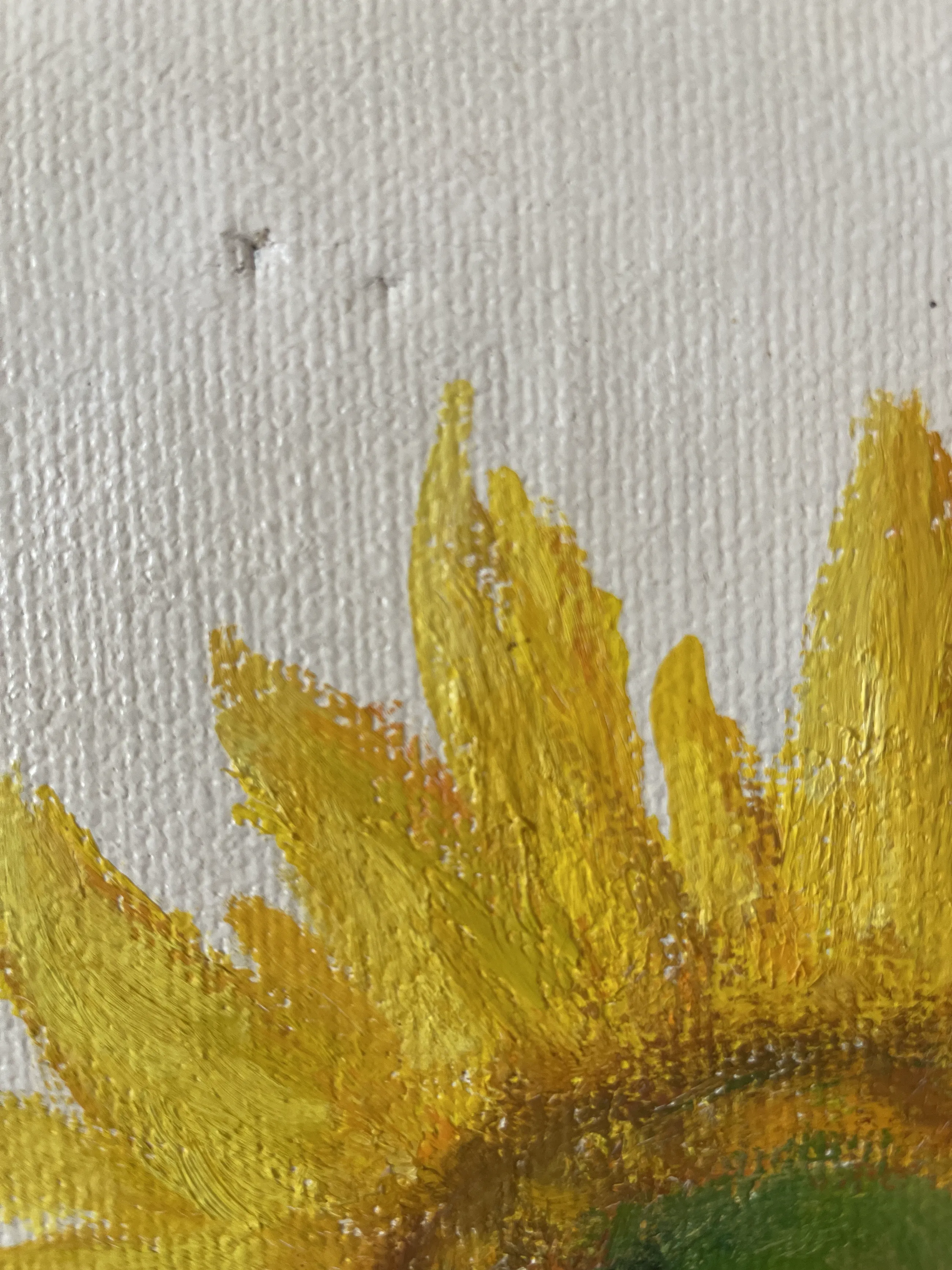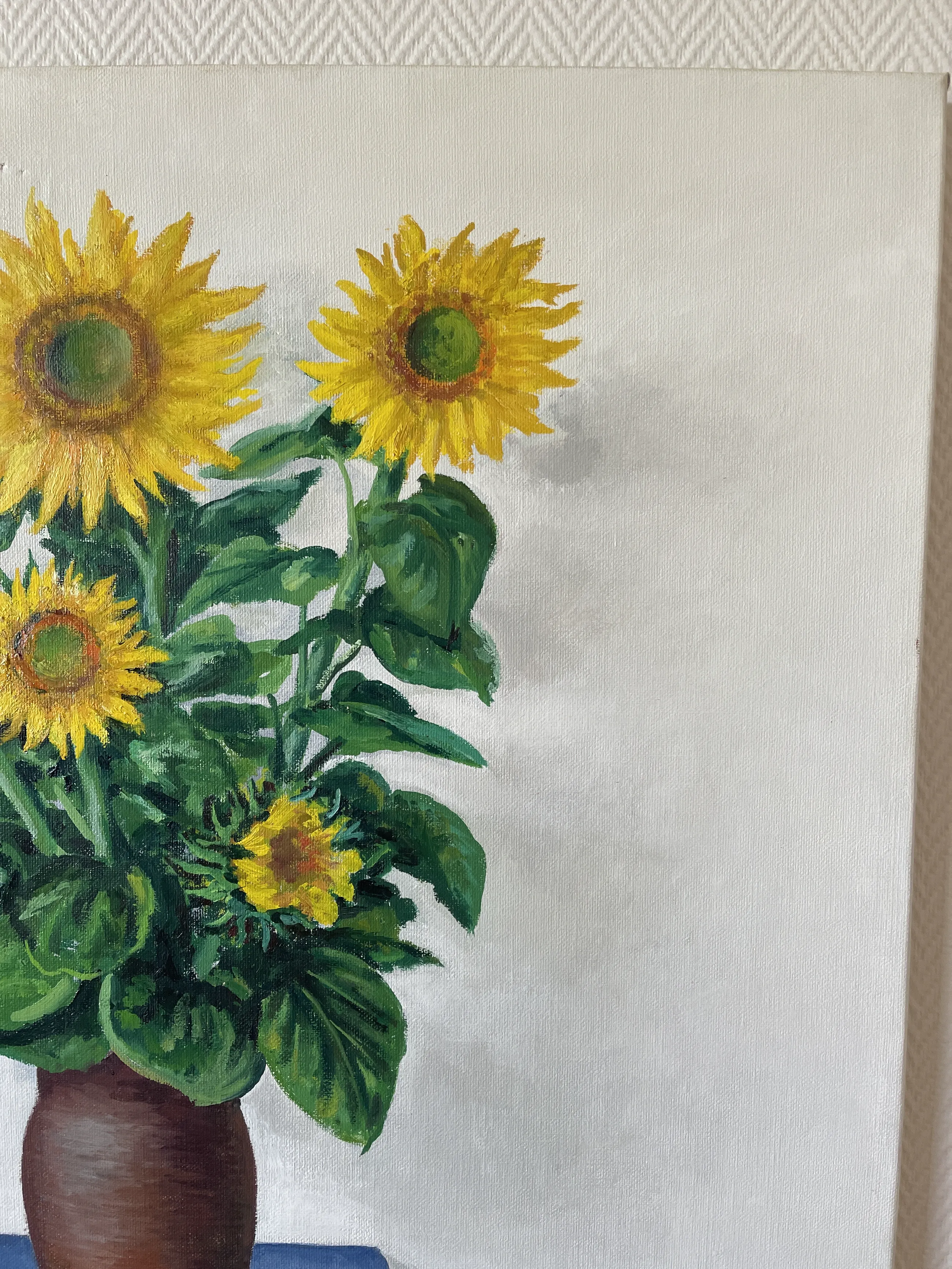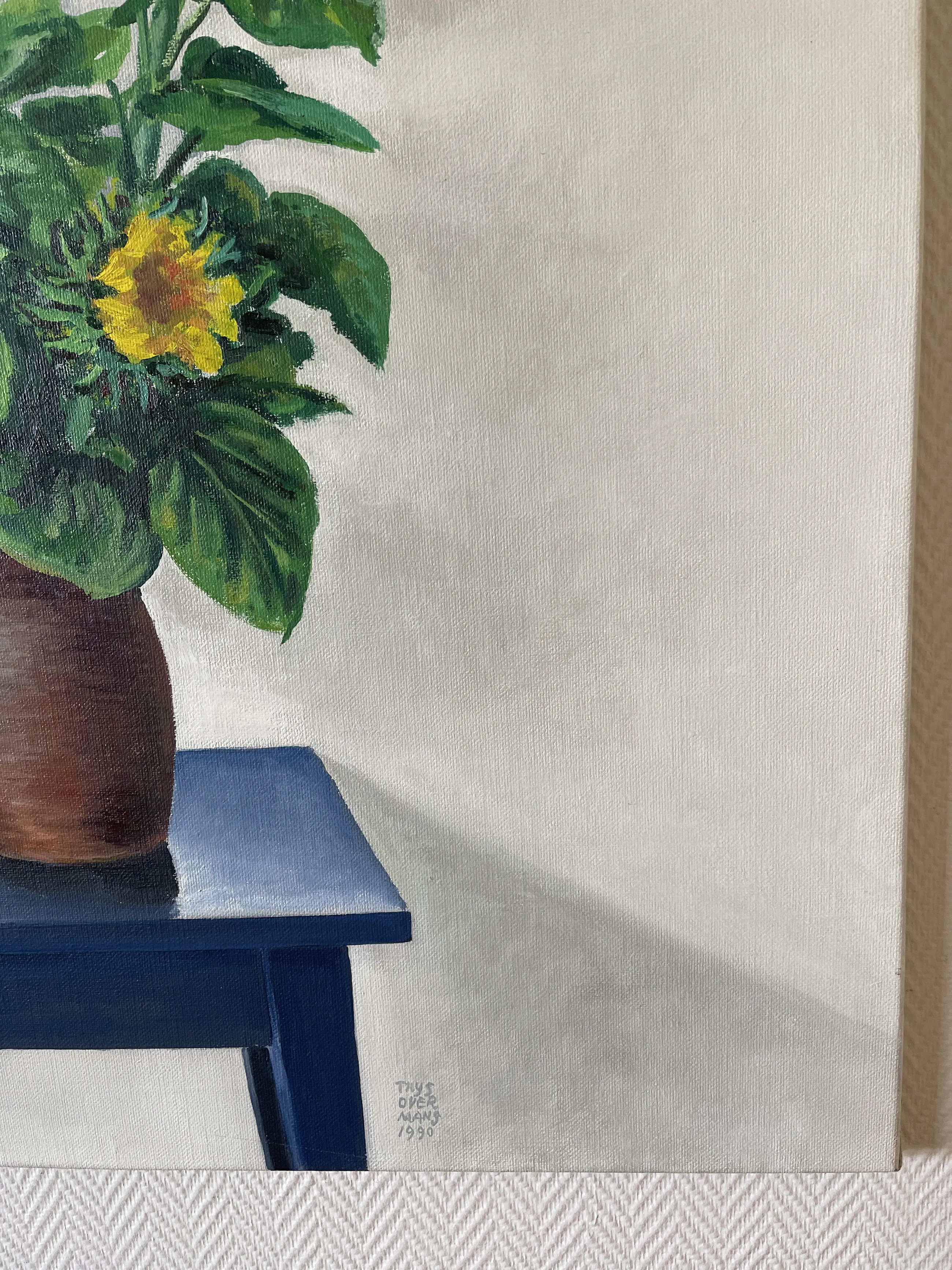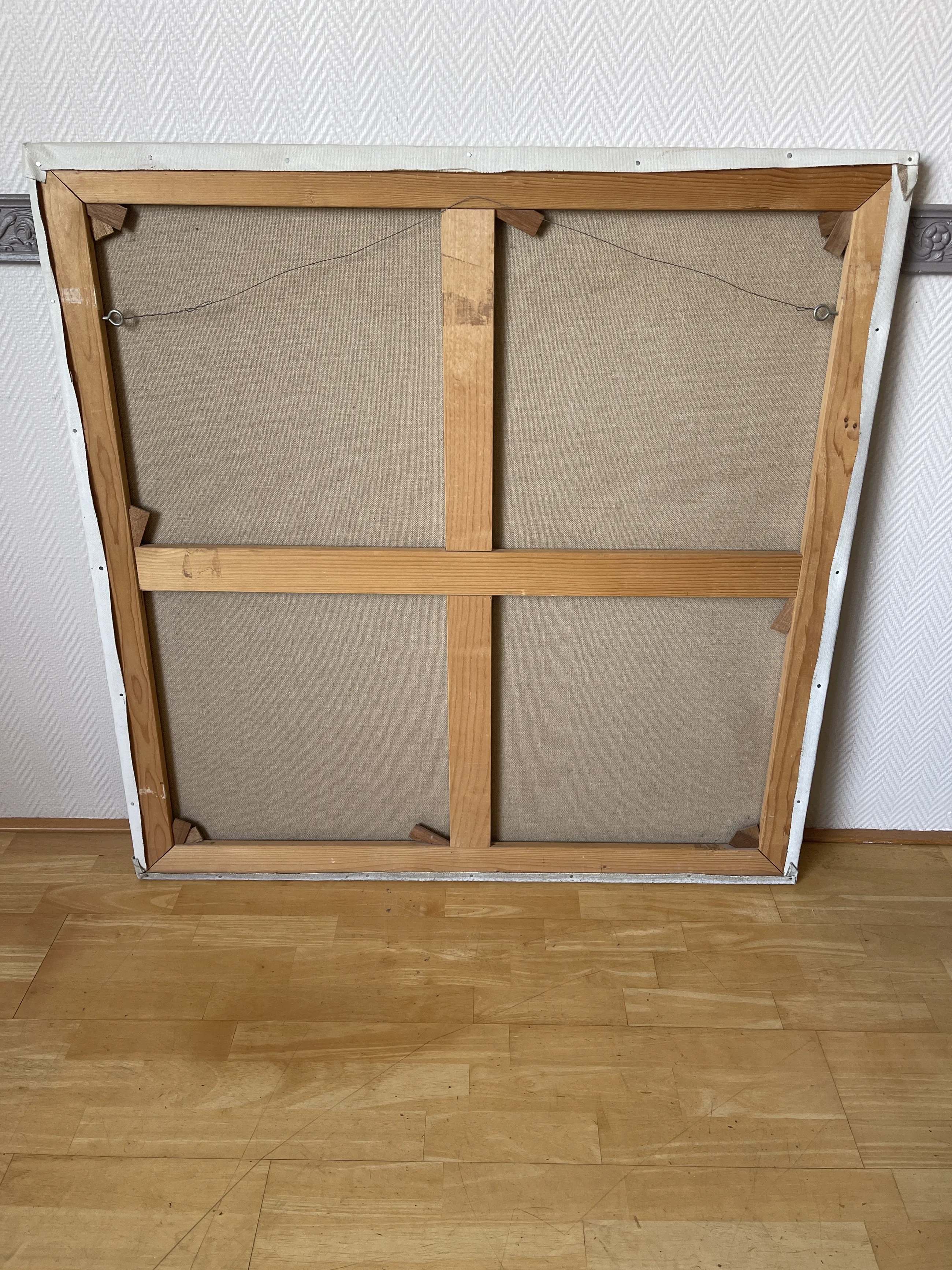 Het doek is in uitstekende staat zonder verkleuring en strak ingelijstEr zitten 2 puntjes ( geen gaatjes) in het schilderij ( zie foto’s)