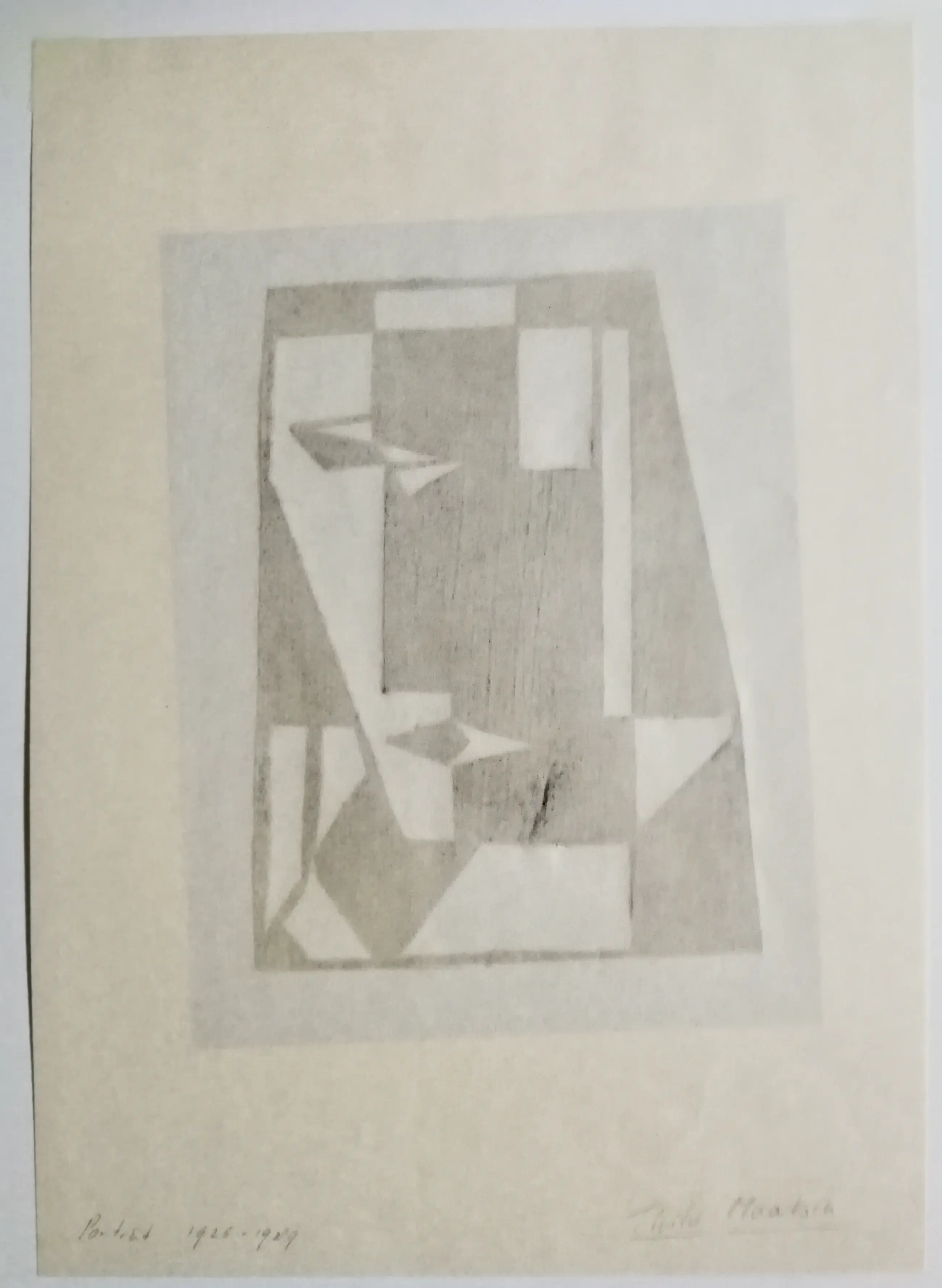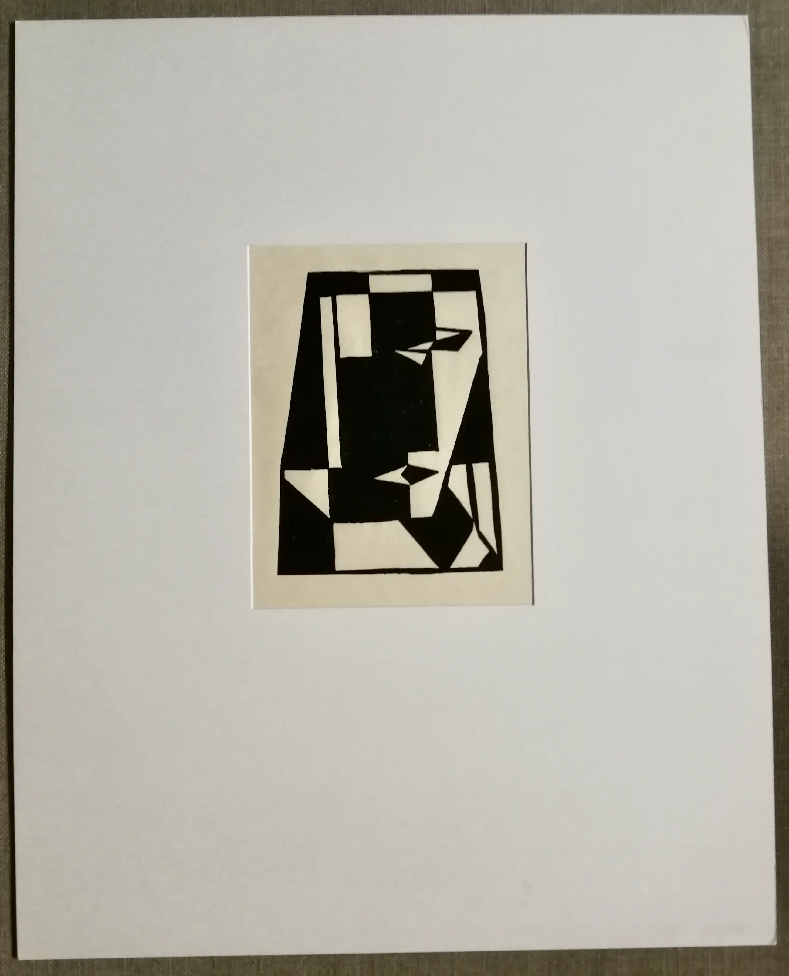 Houtsnede van Thilo Maatsch, niet gesigneerd. Geplaatst (bovenaan getipt) in passe-partout.