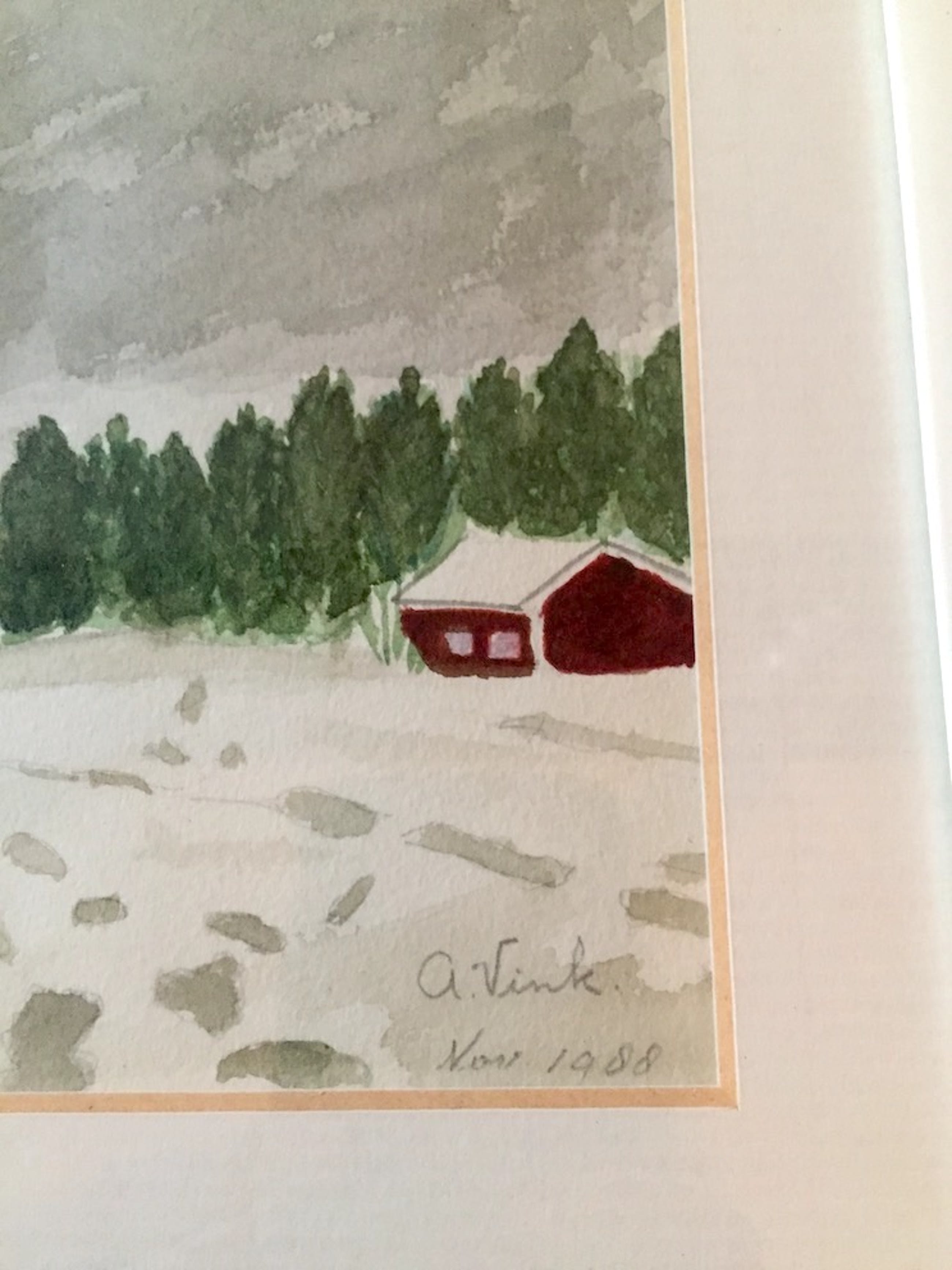 A2 3 Thom Vink Huizen in de sneeuw Tekening 1988 30 x 40 cm