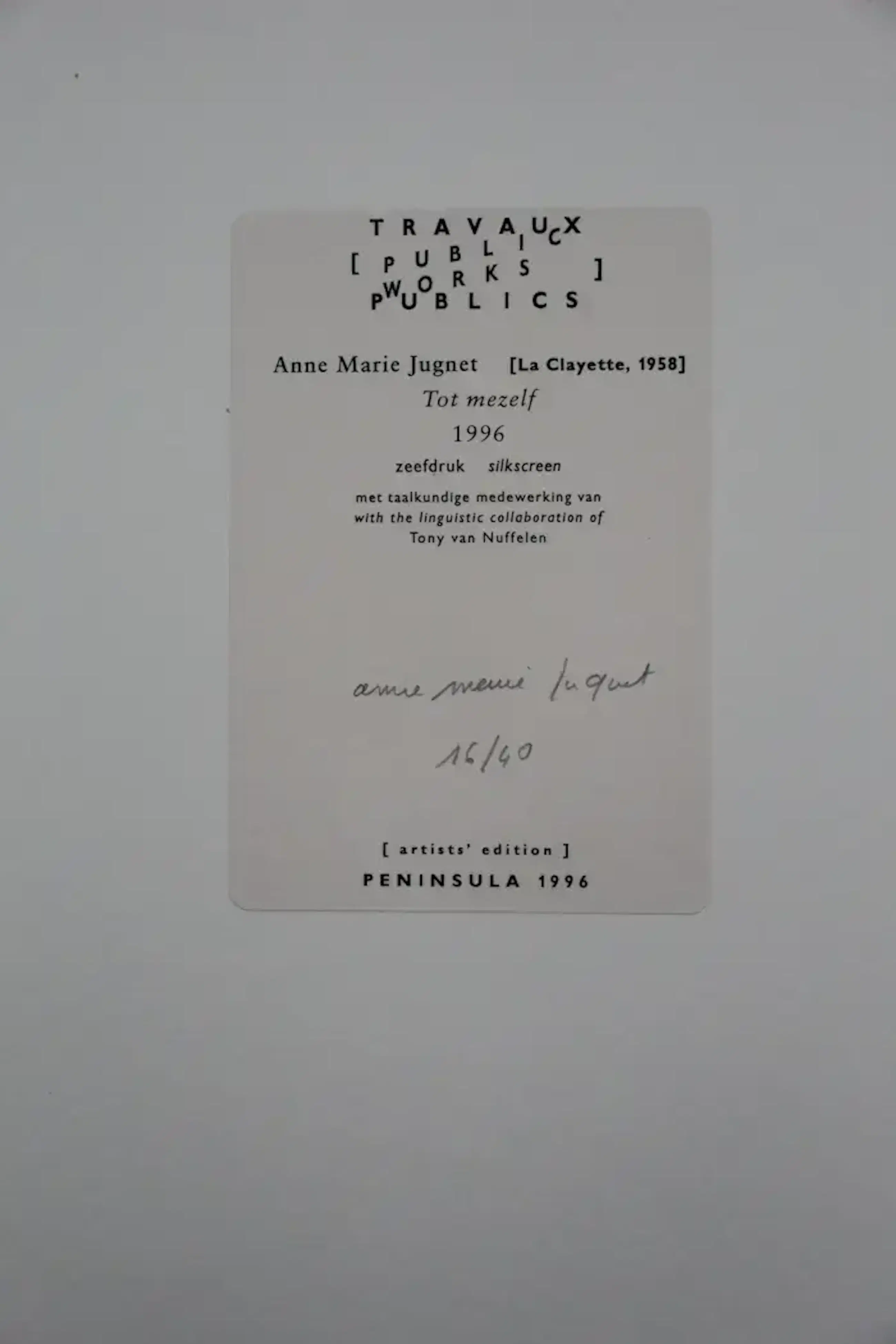 Zeefdruk van de Schotse kunstenaar en dichter Thomas A. Clark. Titel: Glade. Nummer: 16/40. Jaar: 1996. Het werk is op de achterzijde gesigneerd. De authenticiteit van het aangeboden werk wordt volledig gegarandeerd. Een certificaat van echtheid wordt, op aanvraag, gemaild.