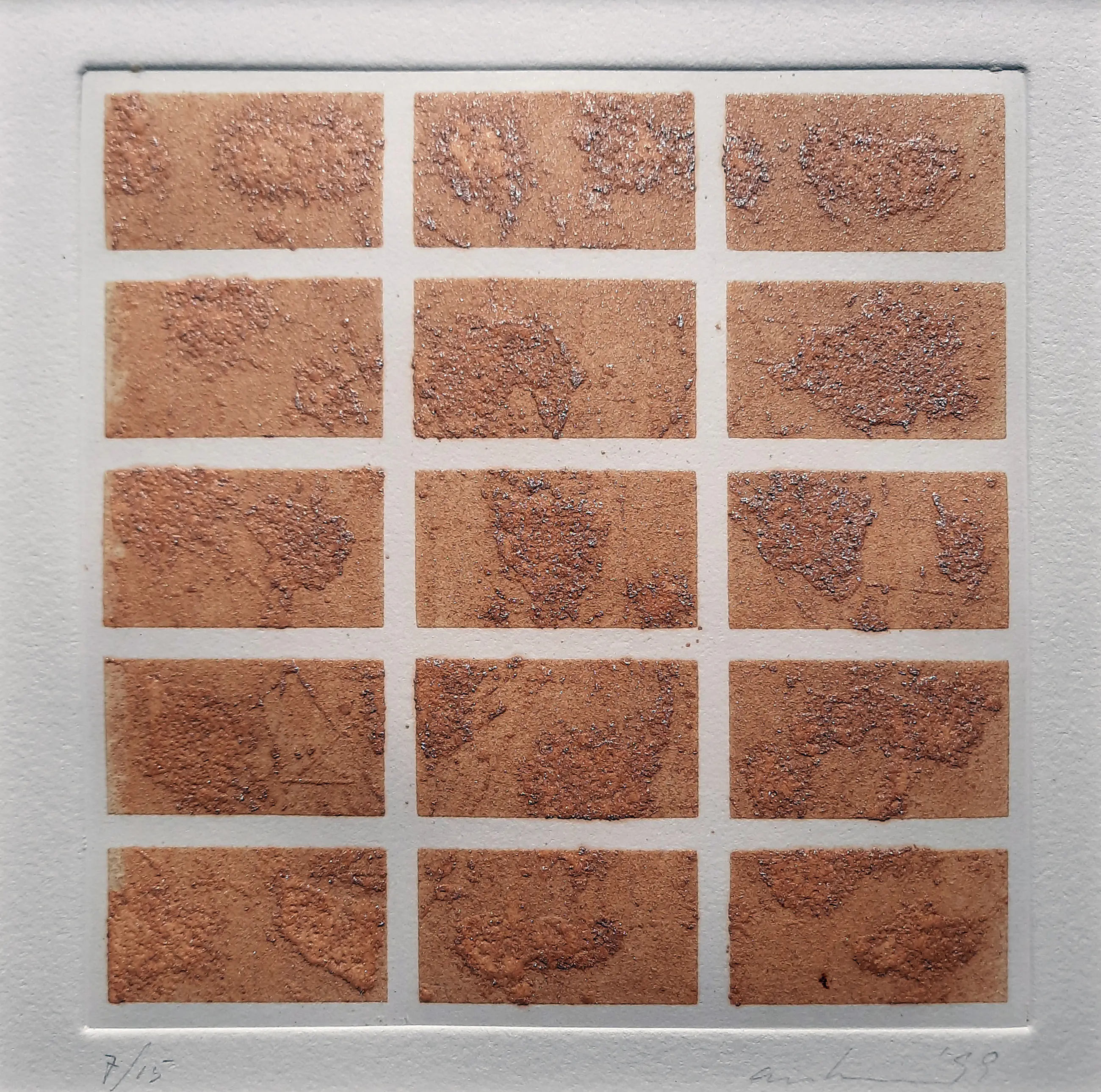 Fotopolymeerets, alleen in passe-partout, zonder lijst. Uitsnede 17 x 17 cm.