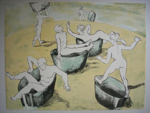 Thomas Bernstein - Original-Farblithographie von 1991, verso handsigniert , Titel: Auf´m Hügel