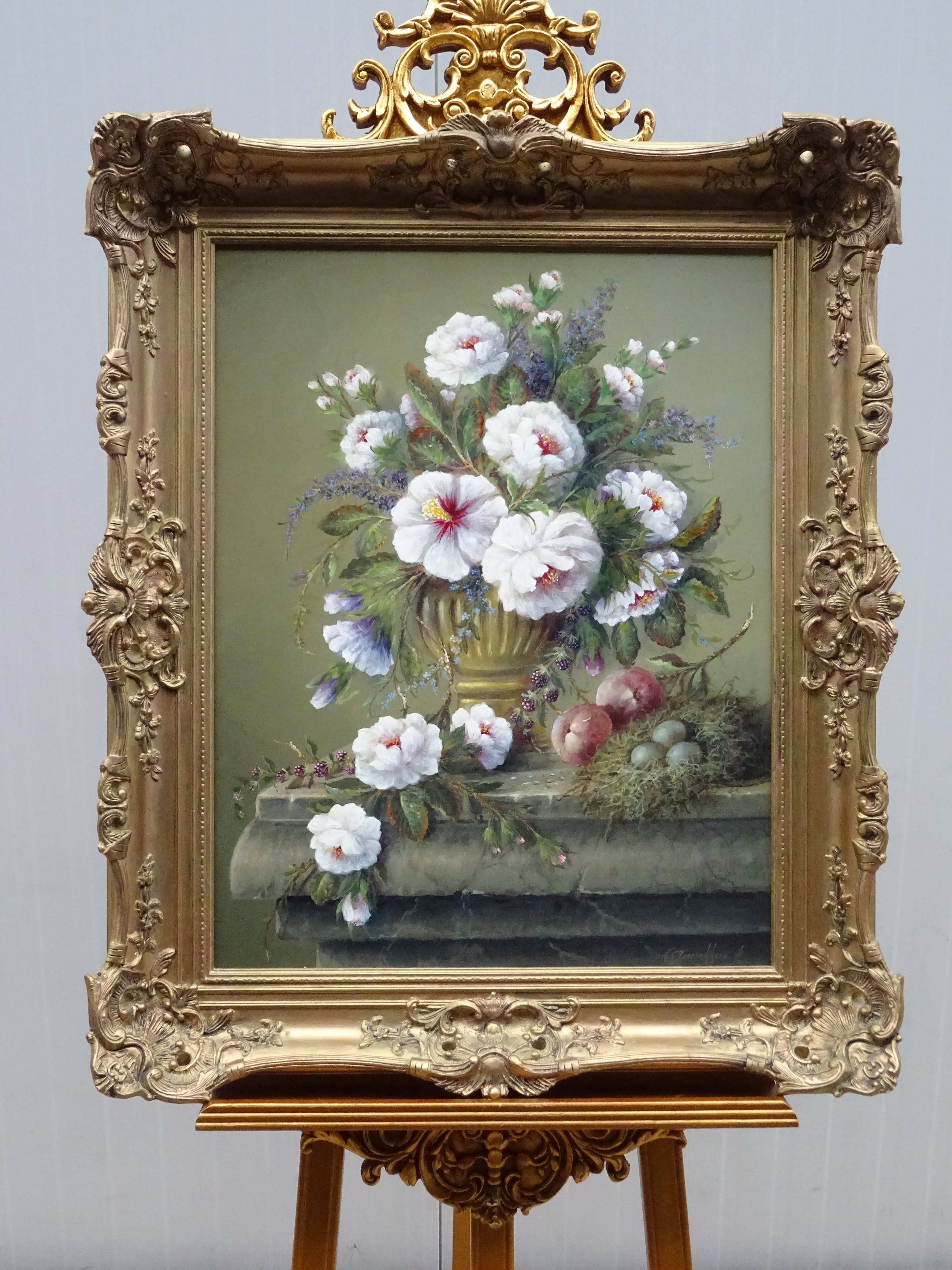Mooi schilderij pronkstilleven op paneel Thomas Heesakkers op paneel'.