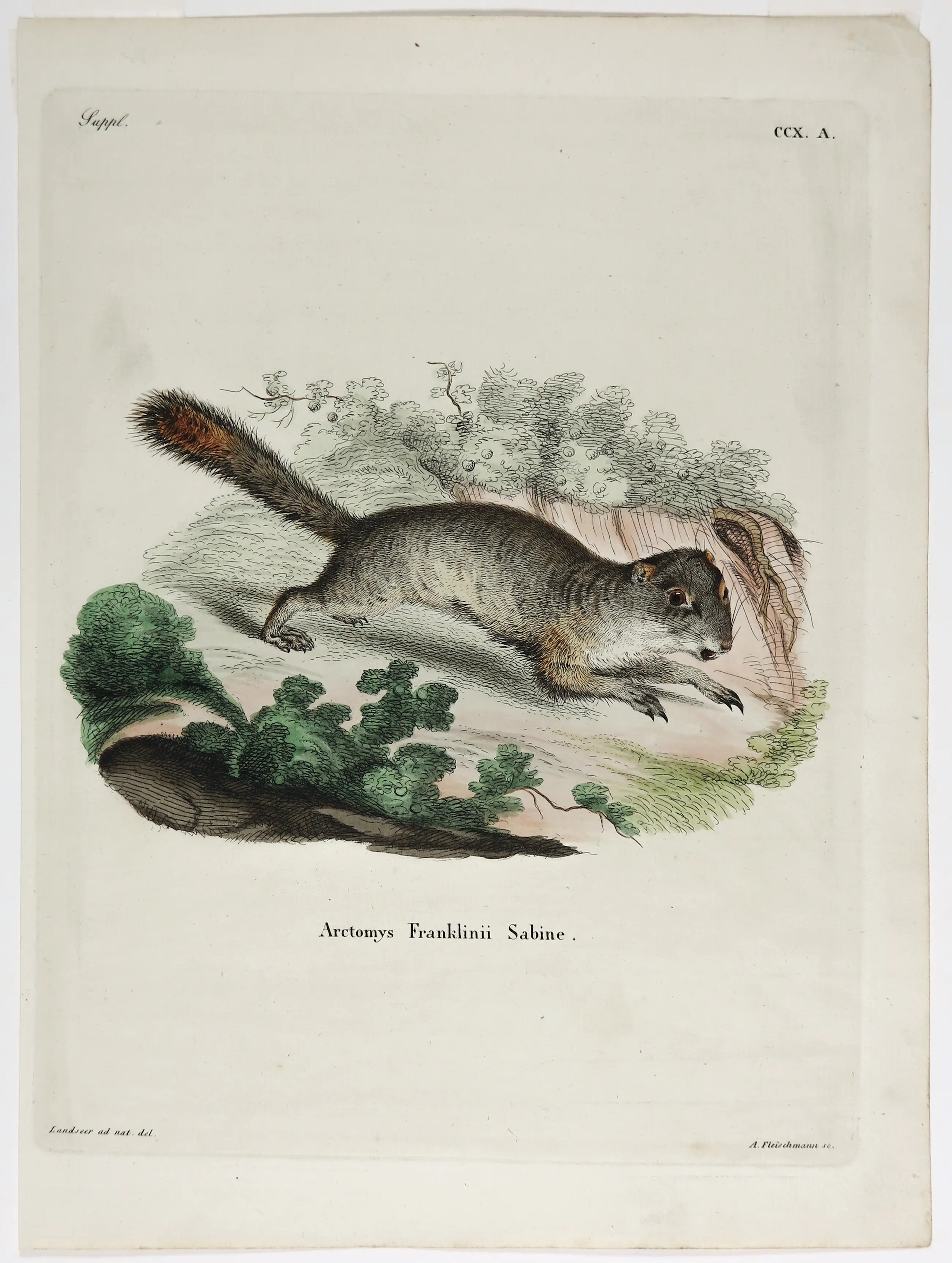 De Arctomys Franklinii Sabine is getekend door Thomas Landseer, de Sciurus Plantani Ljungh is gegraveerd door I.C. Bock.