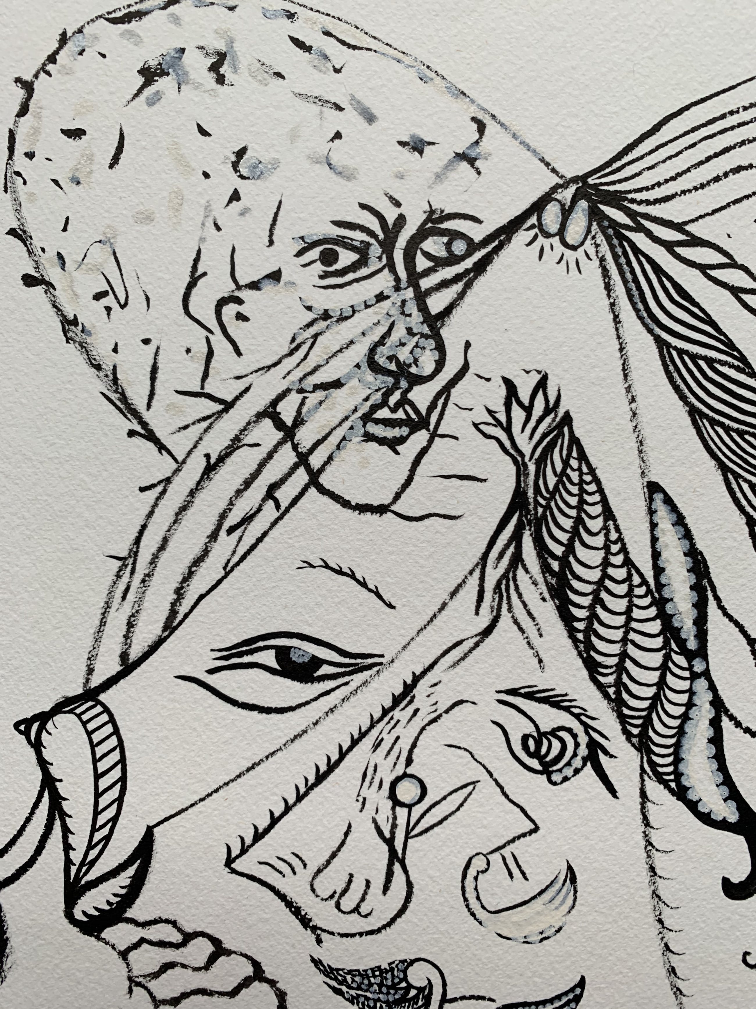 Inkt met aquarel en opgehoogd met plakkaatverf.