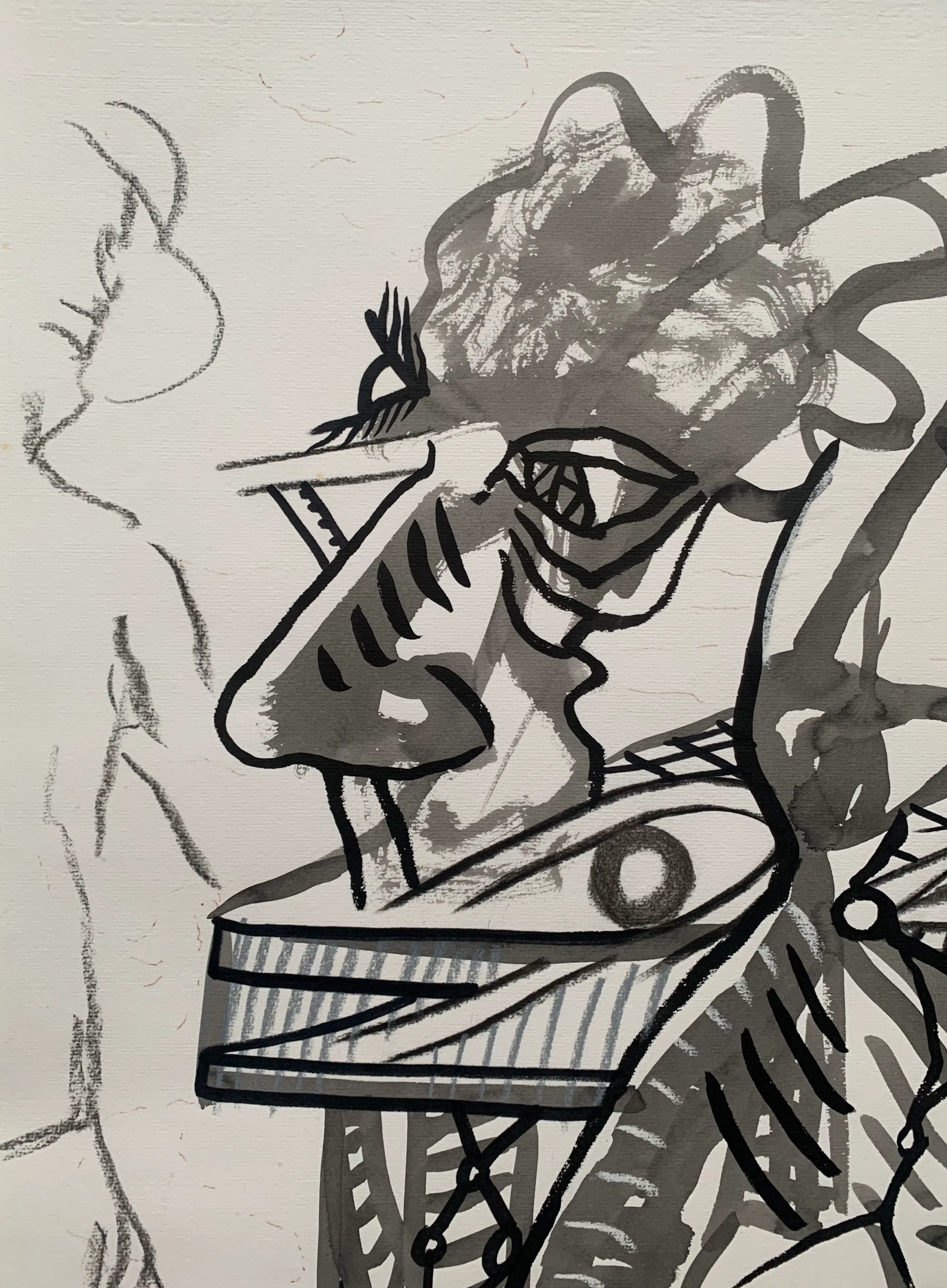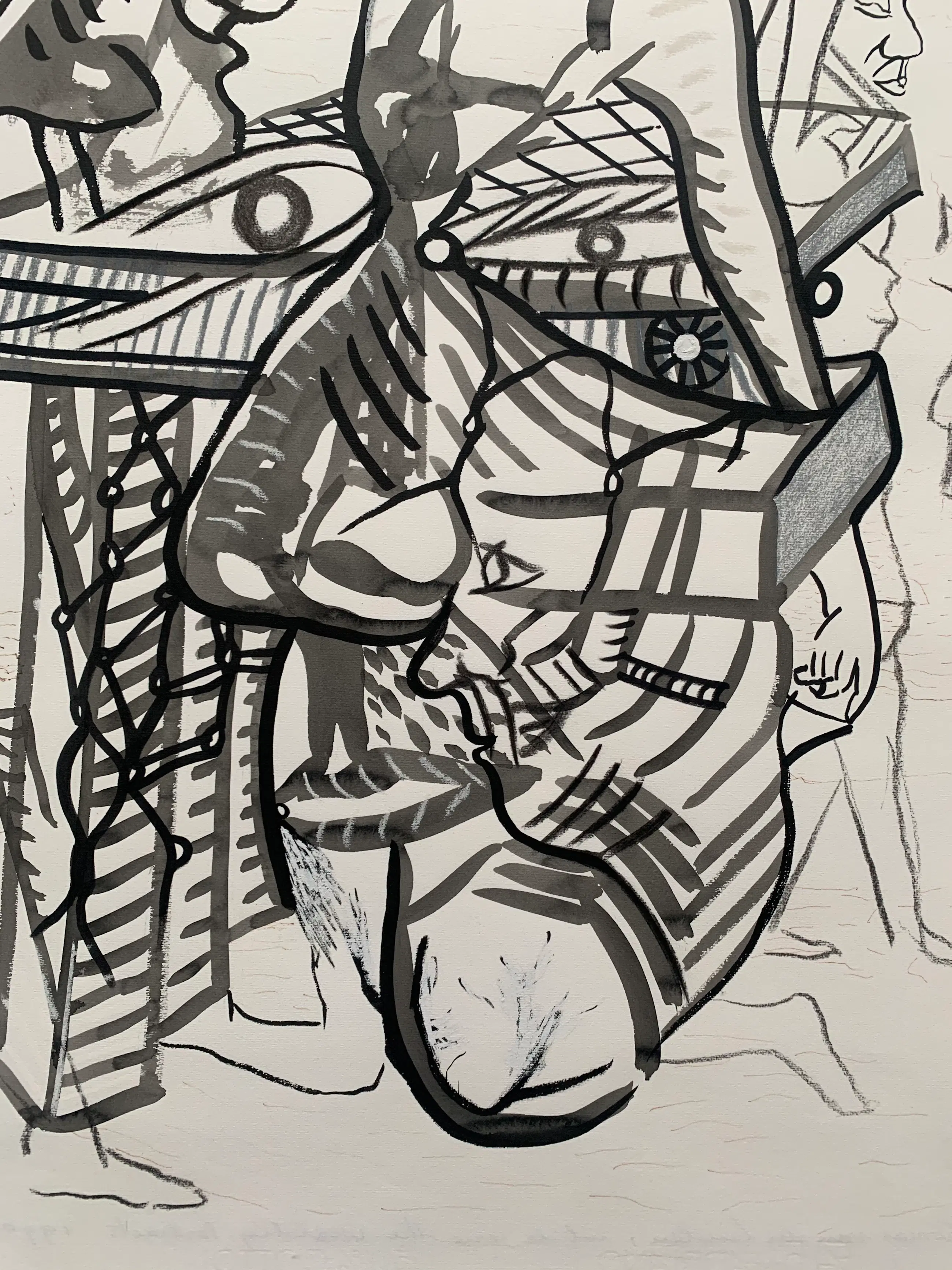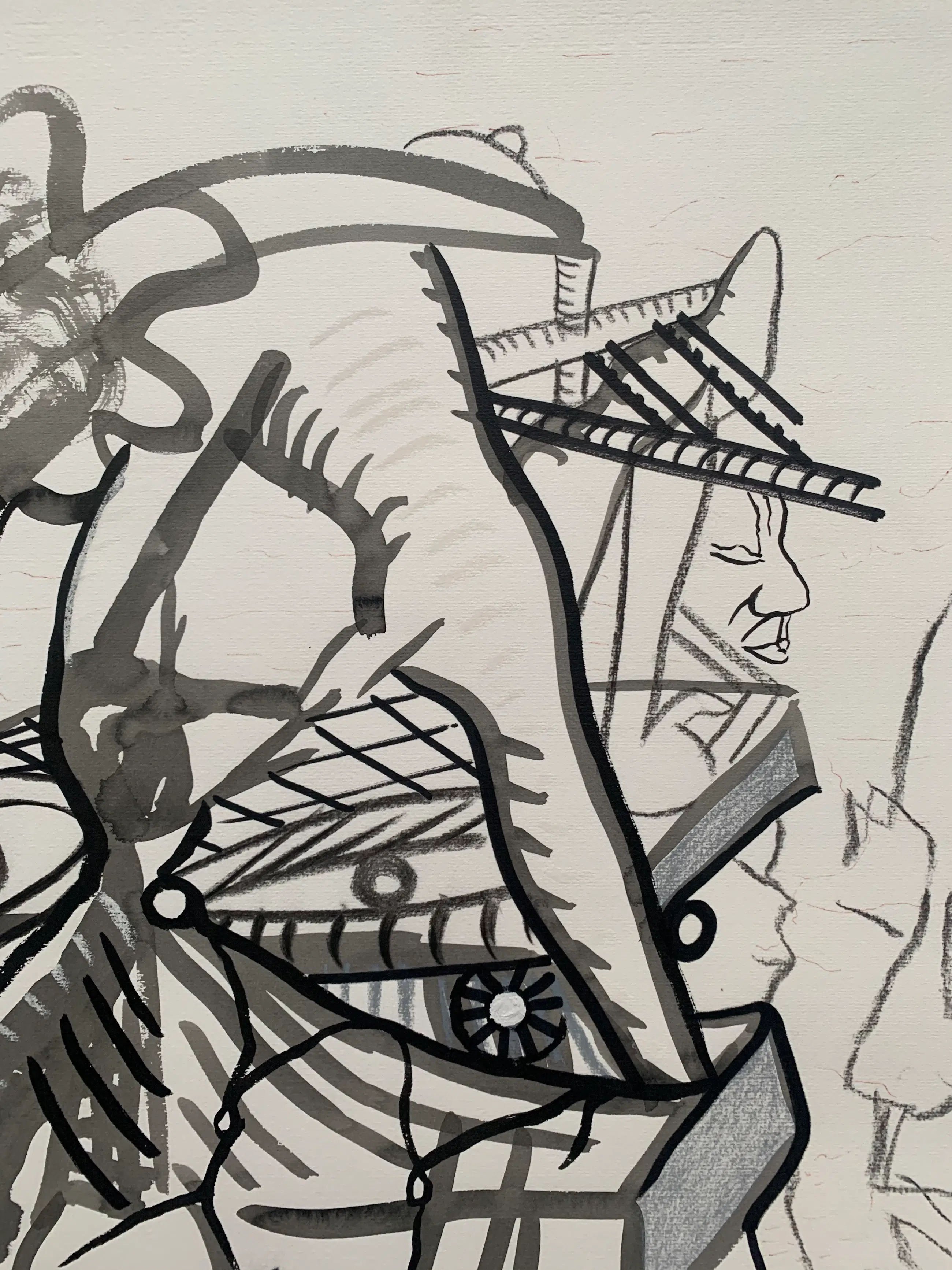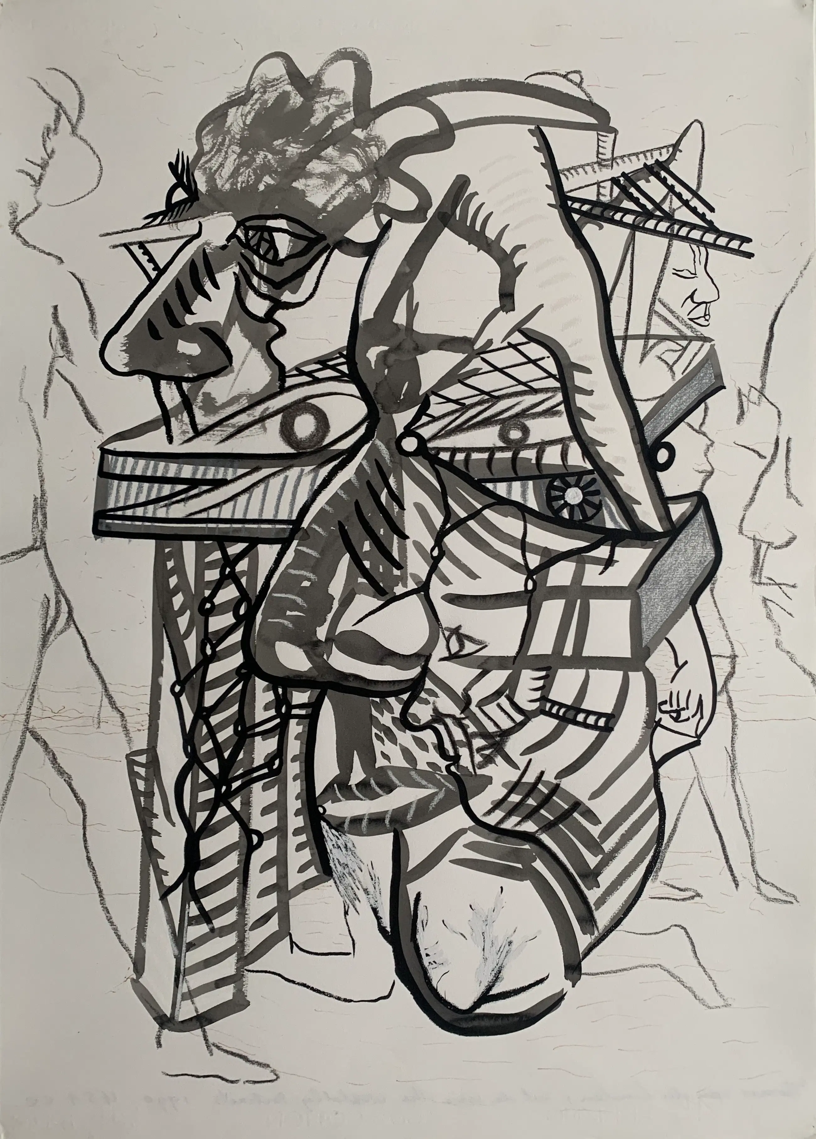 Prachtige tekening in gemengde techniek van deze interessante kunstenaar. Thomas van der Linden weet steeds te boeien, of het nou zijn tekeningen, papierknipsels of doeken zijn. Altijd intrigerende werken, mooi van compositie.