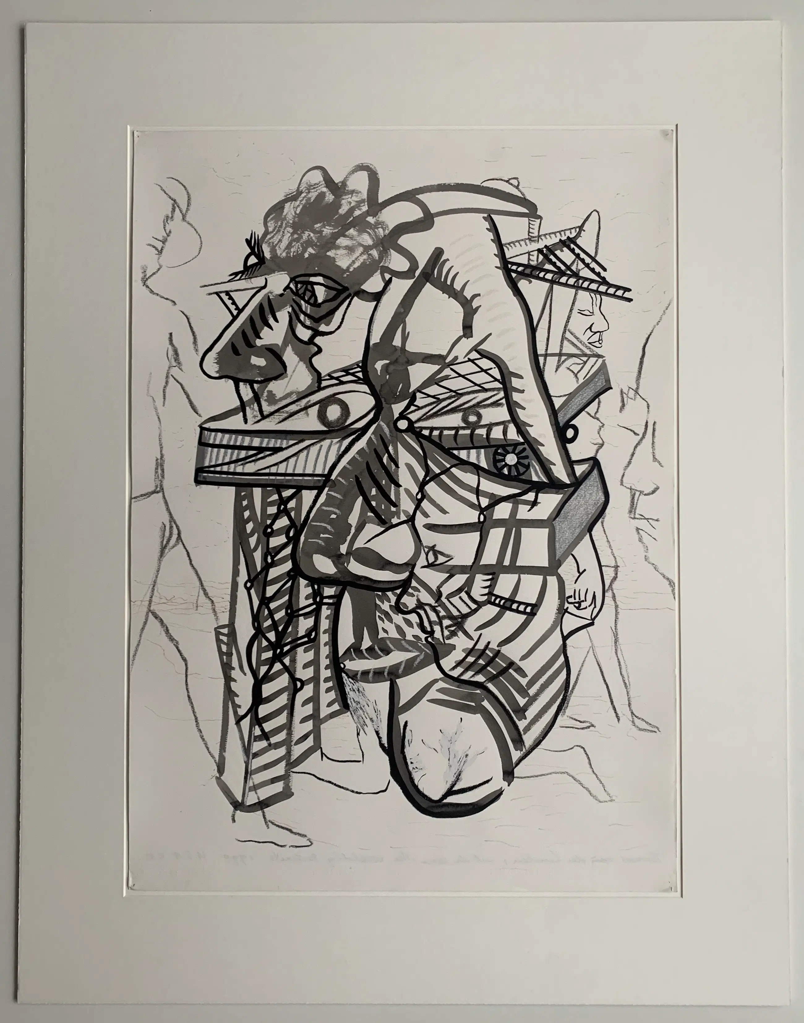Dit betreffende werk heeft een surrealistisch karakter, met invloeden van Picasso.