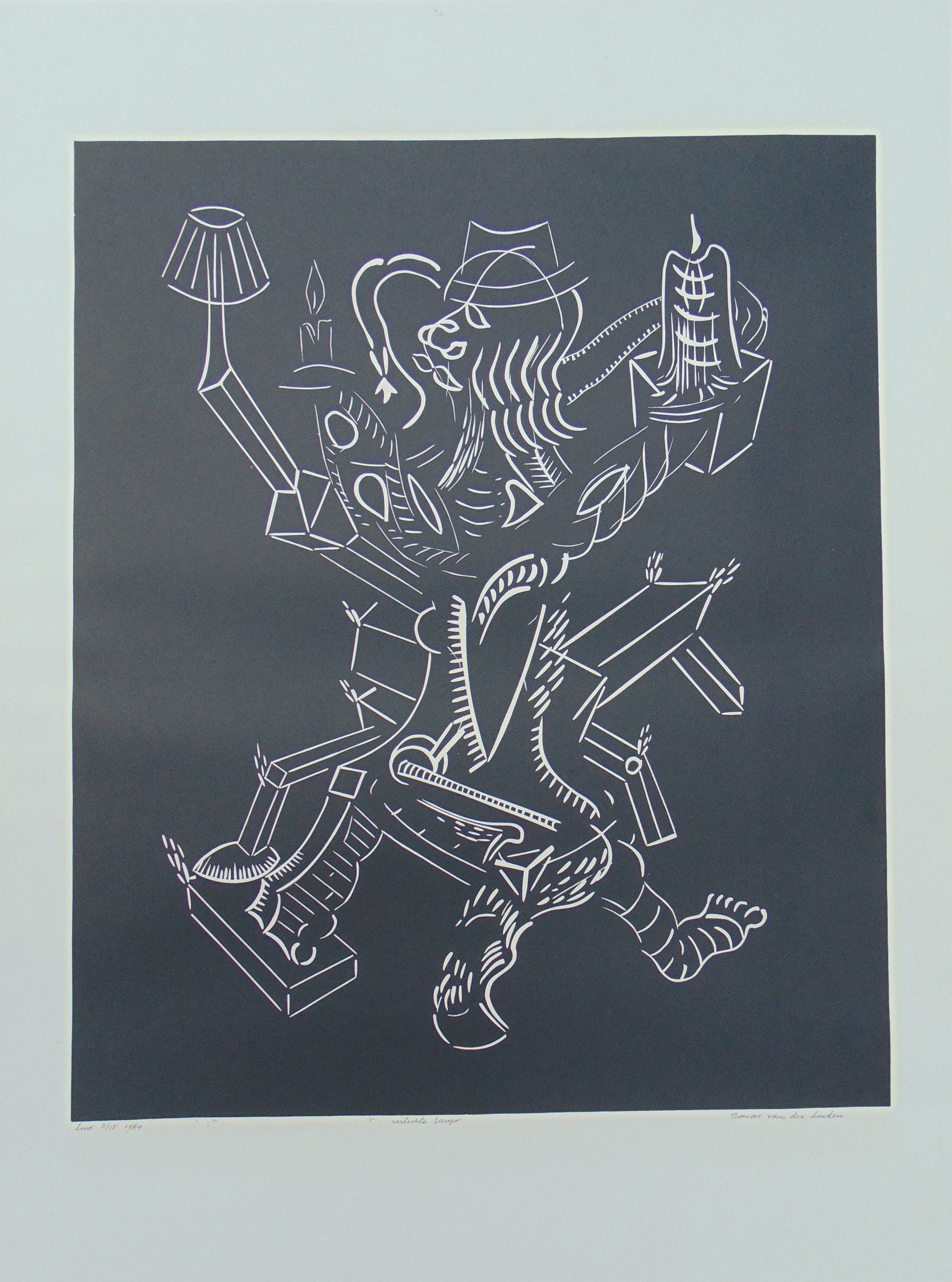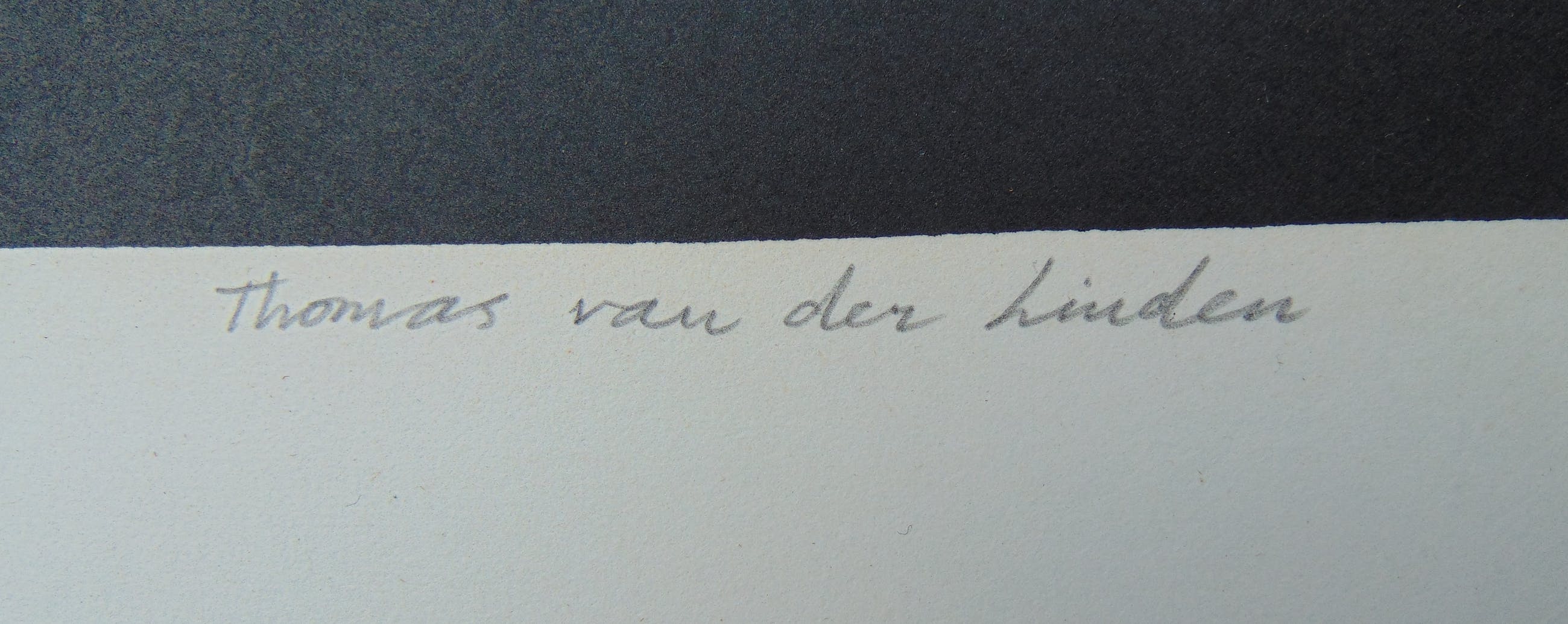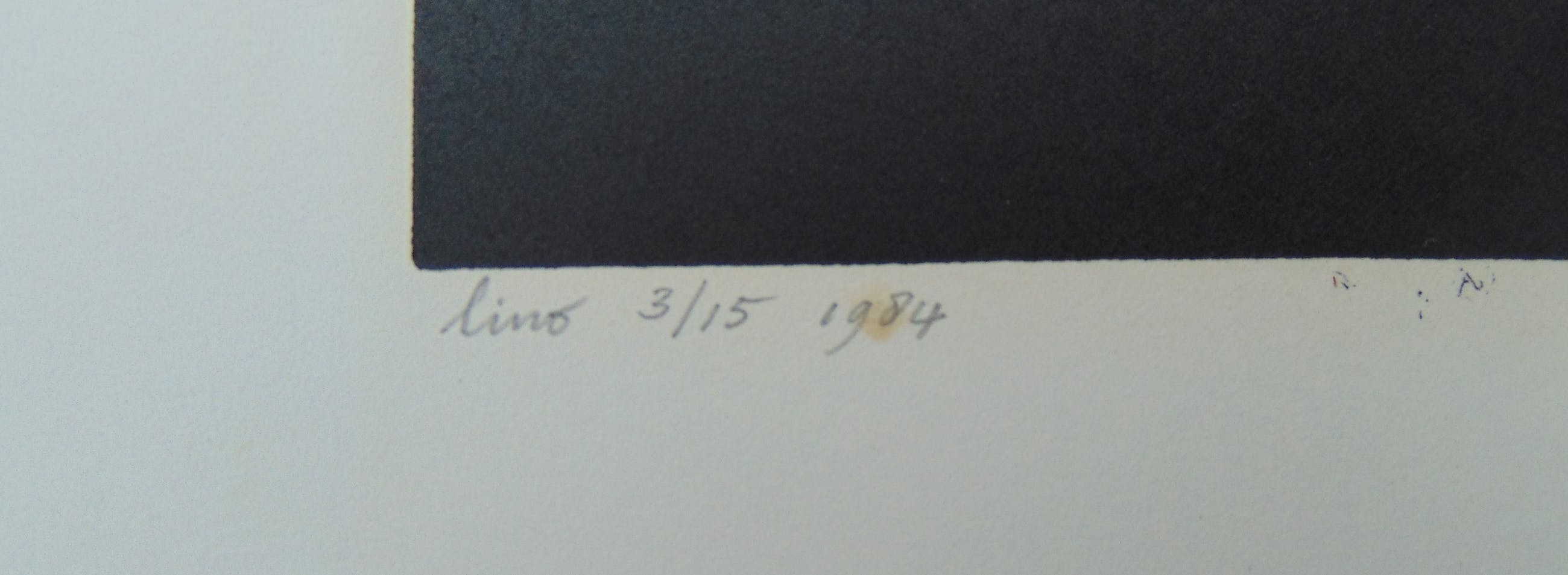 Deze lino snede is rechtsonder gesigneerd. De bladmaat is 80x60 cm. De daadwerkelijke afbeelding: 60x49 cm.