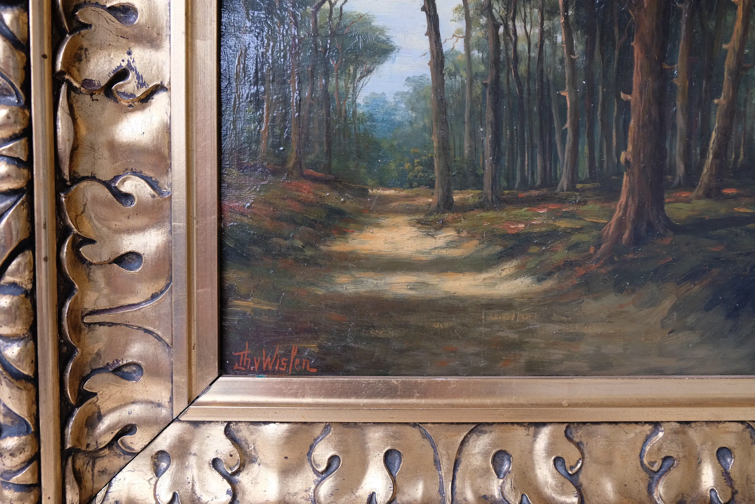 Thomas van Wissen brengt hier een boswandeling prachtig in beeld; sfeer en de rust stralen van het schilderij af.