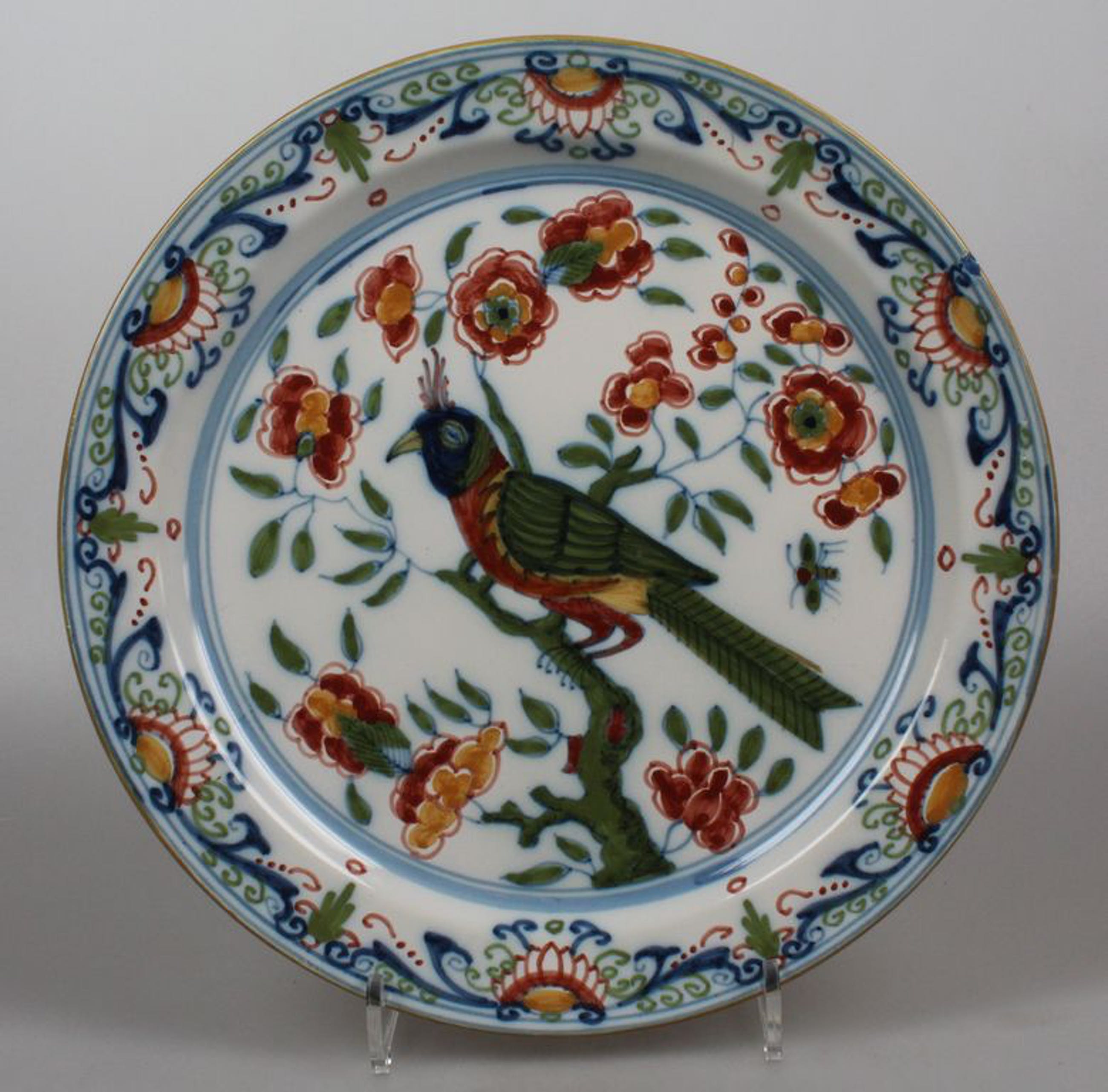Tichelaar Makkum bord met vogel. Gemerkt, D: ca. 25 cm. In goede staat, klein stootplekje aan de rand.