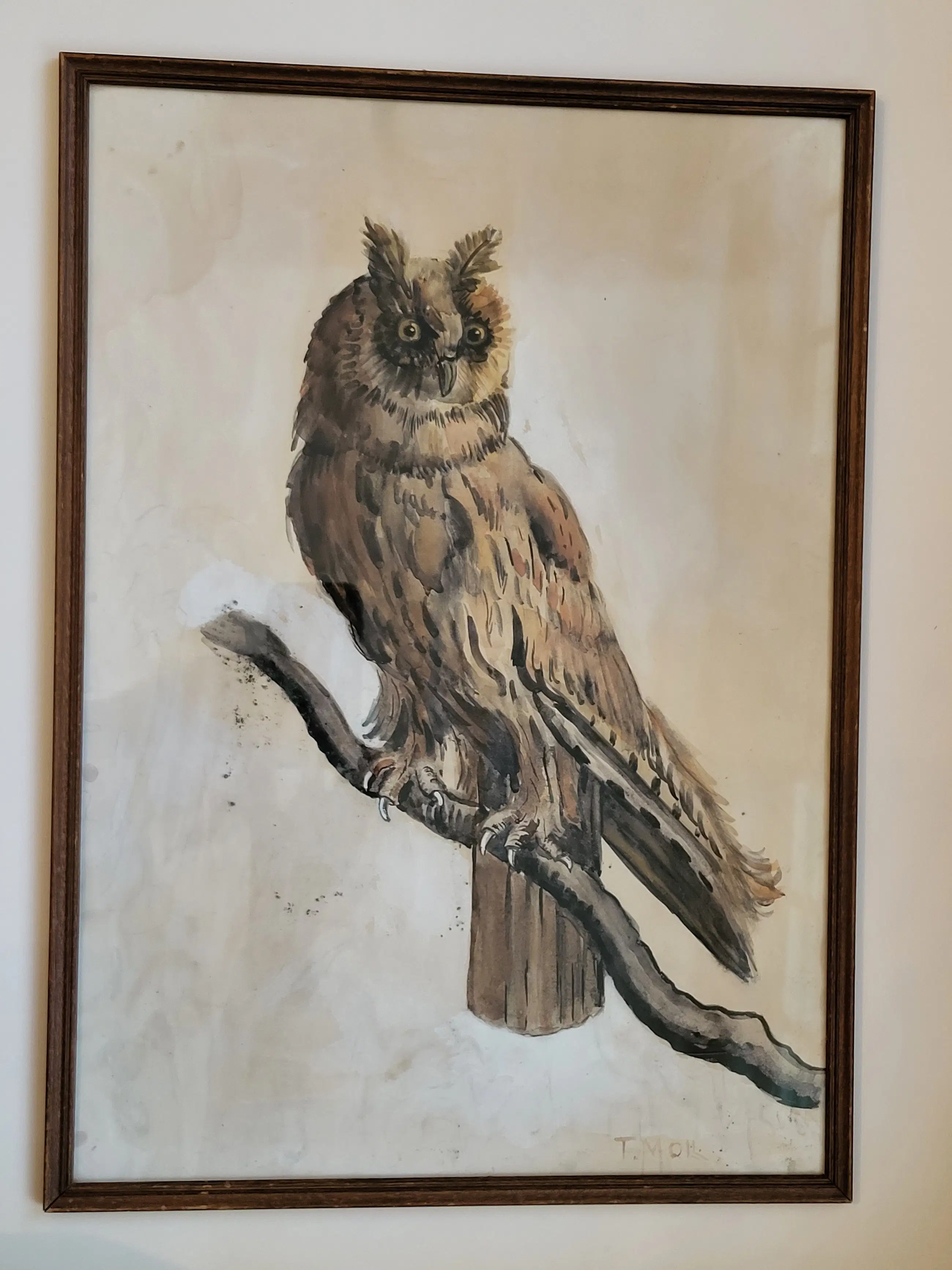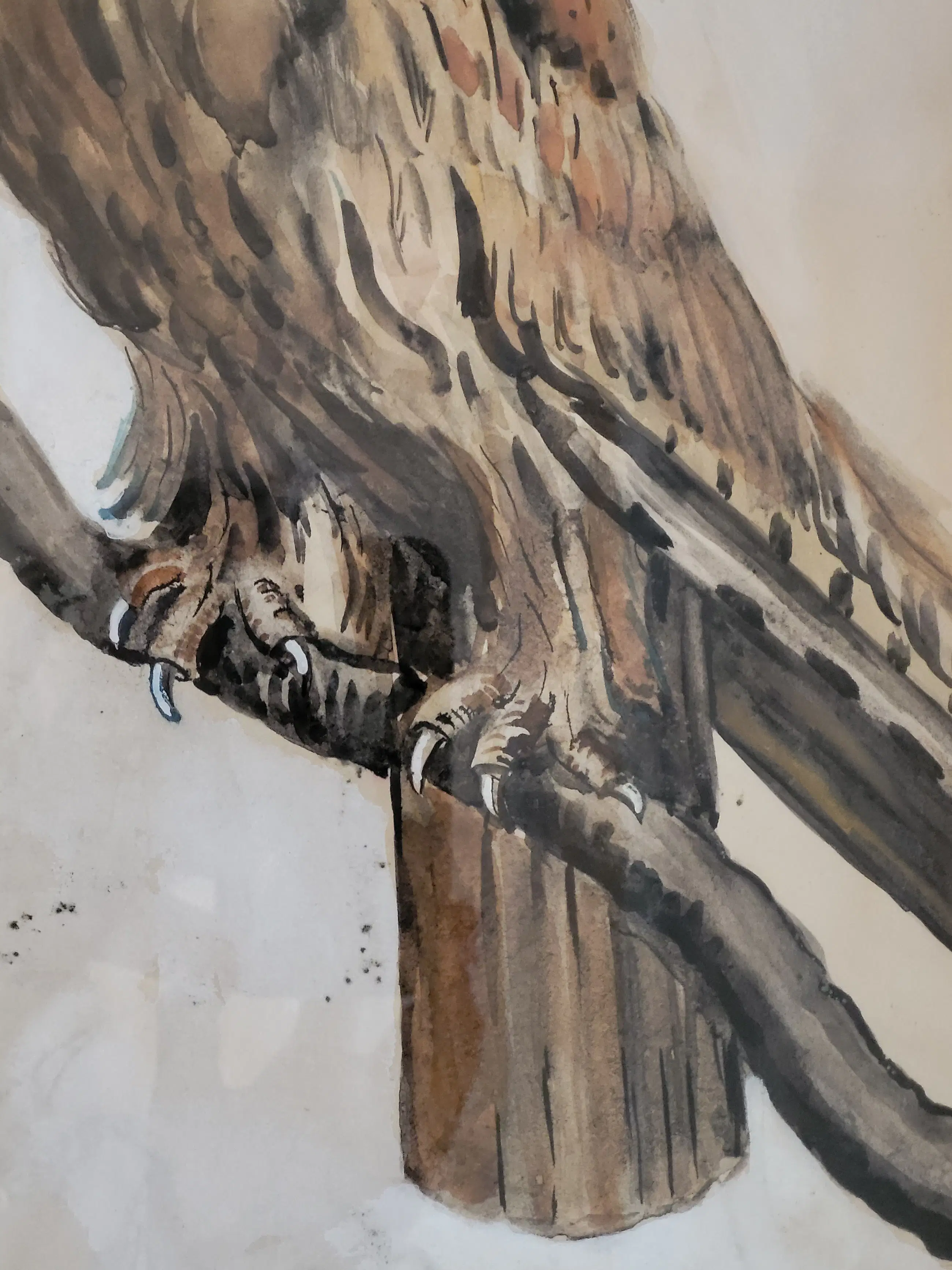 Prachtig door Tijmen Moll uitgevoerde aquarel van een uil.