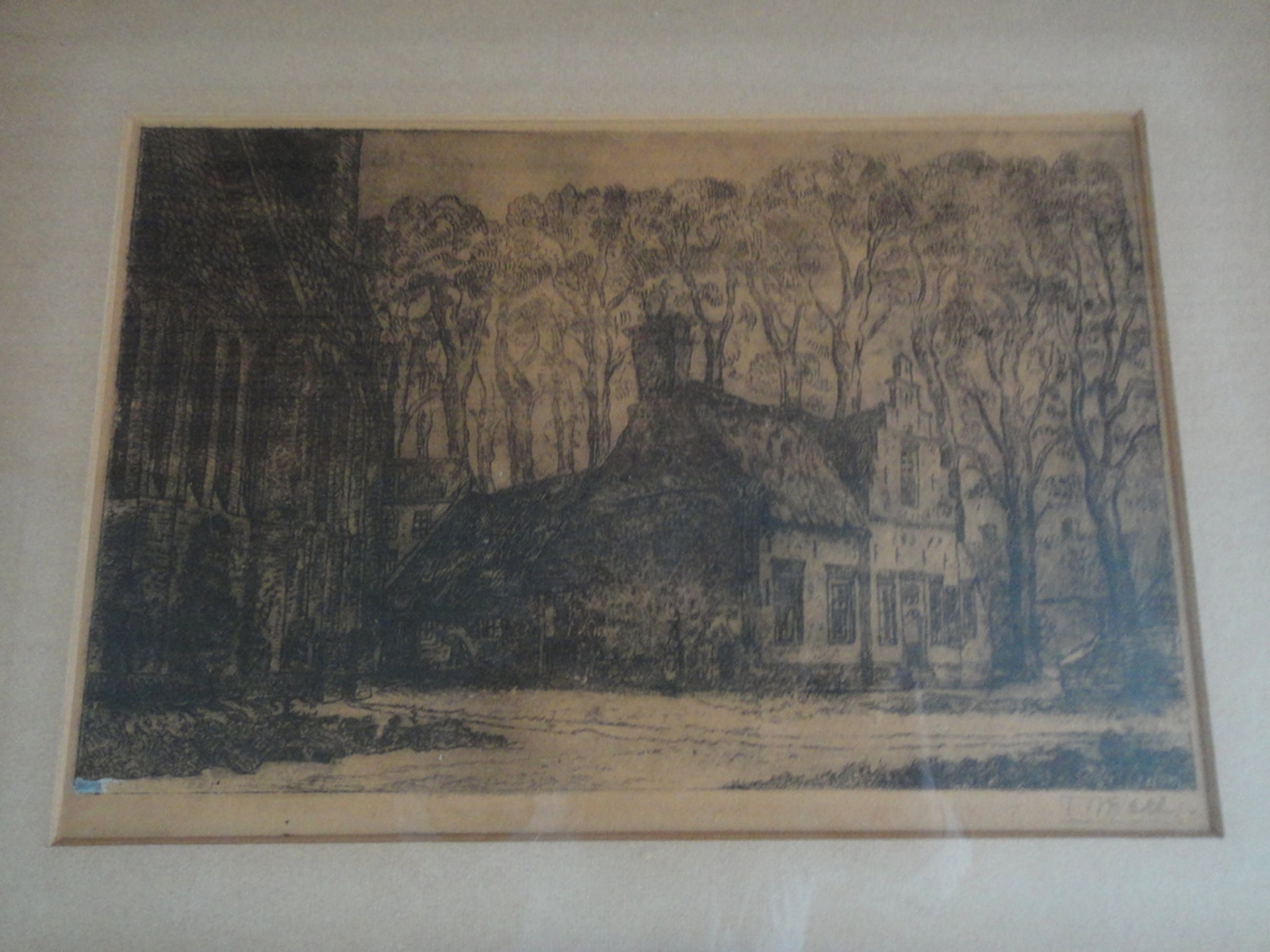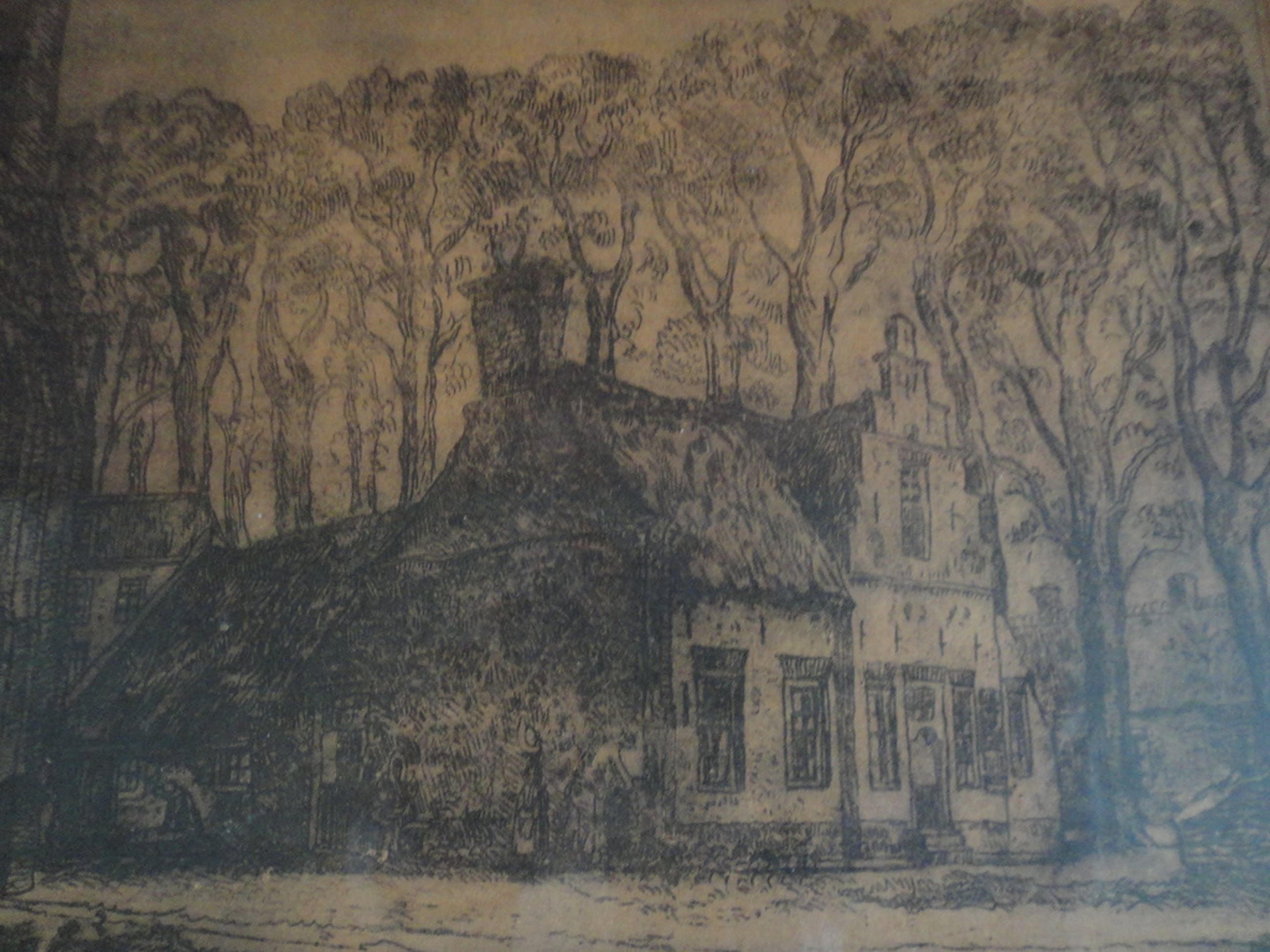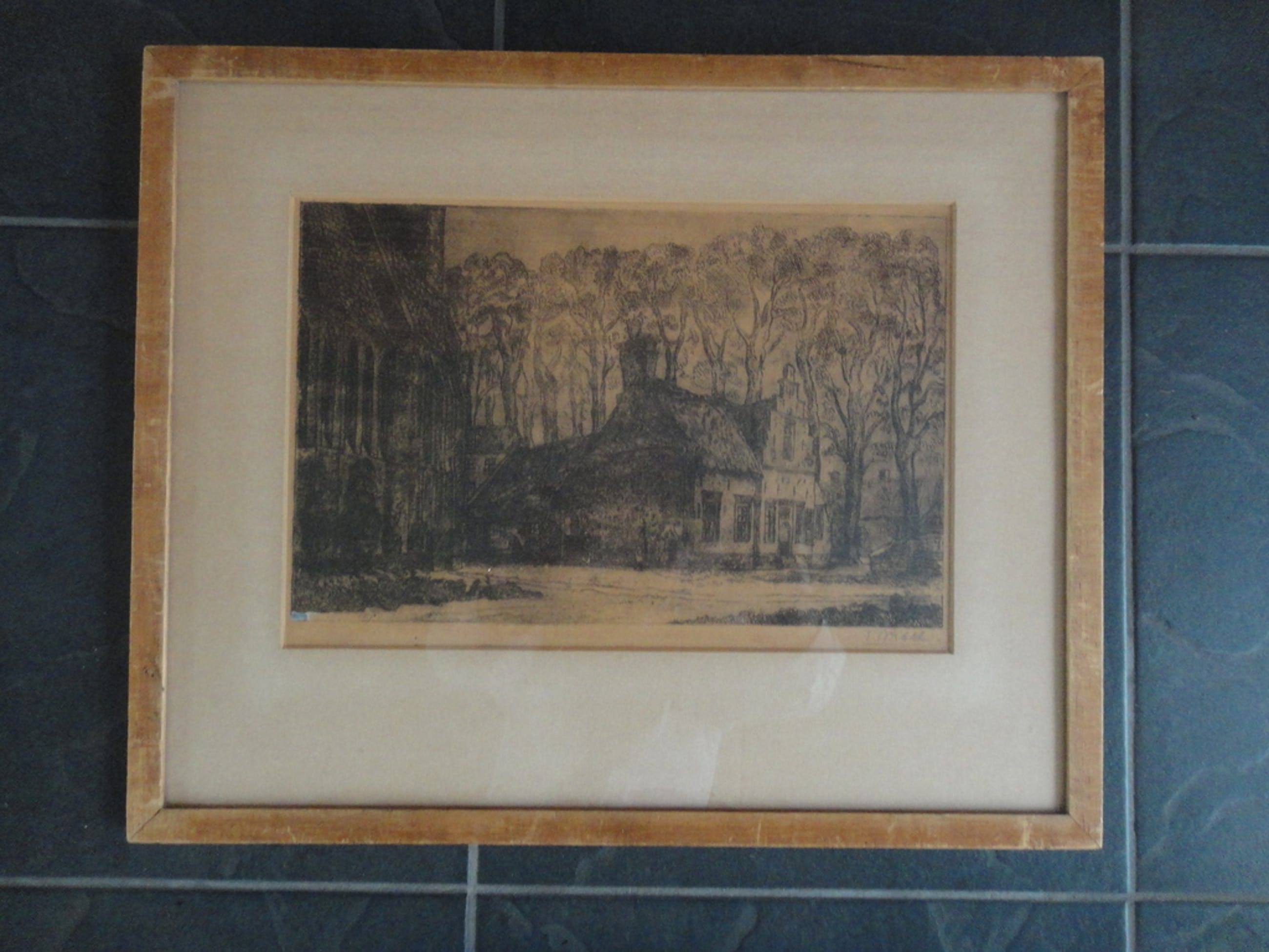 Ets achter passe-partout in lijst: 36 bij 43,5 cm.