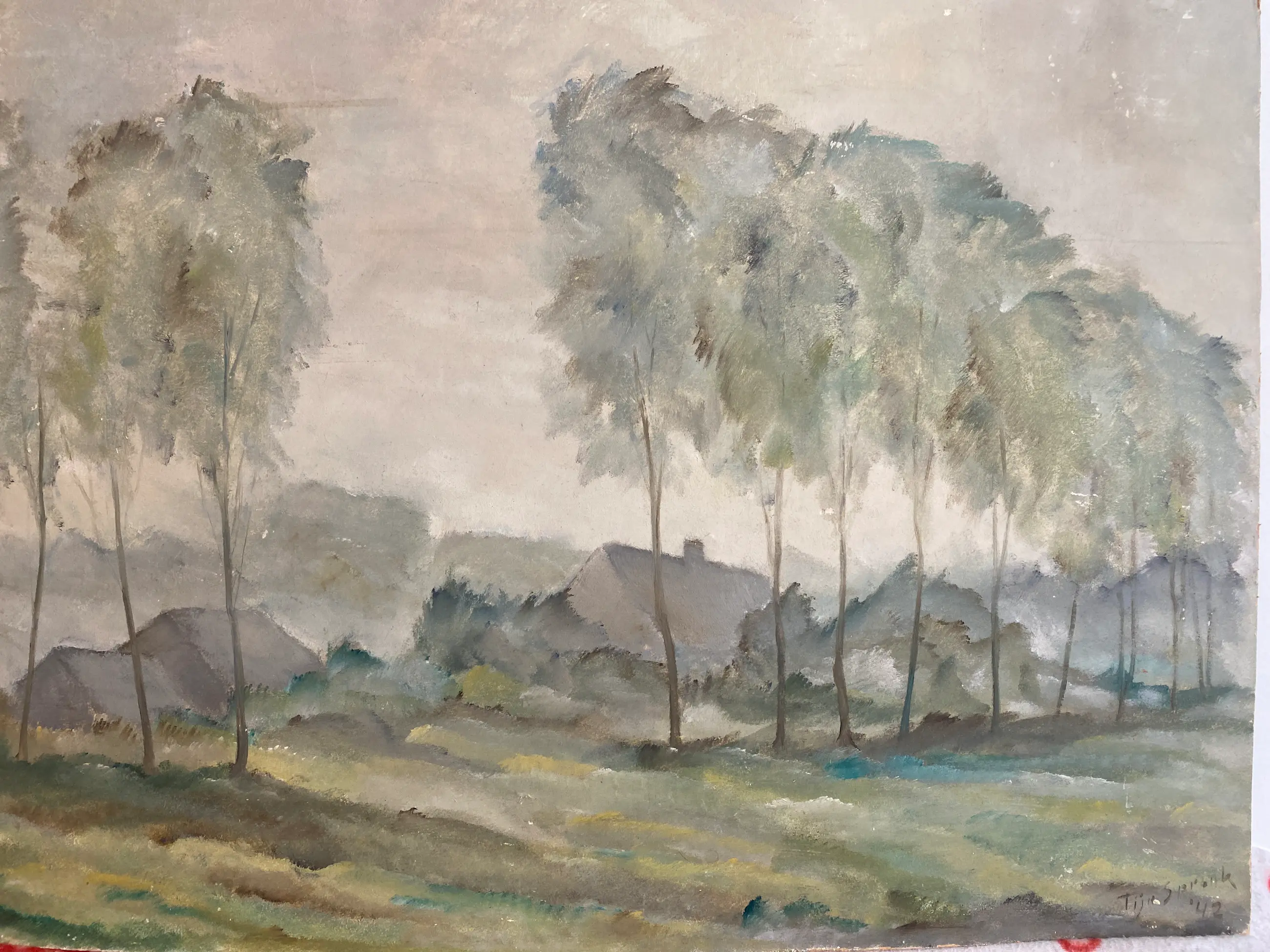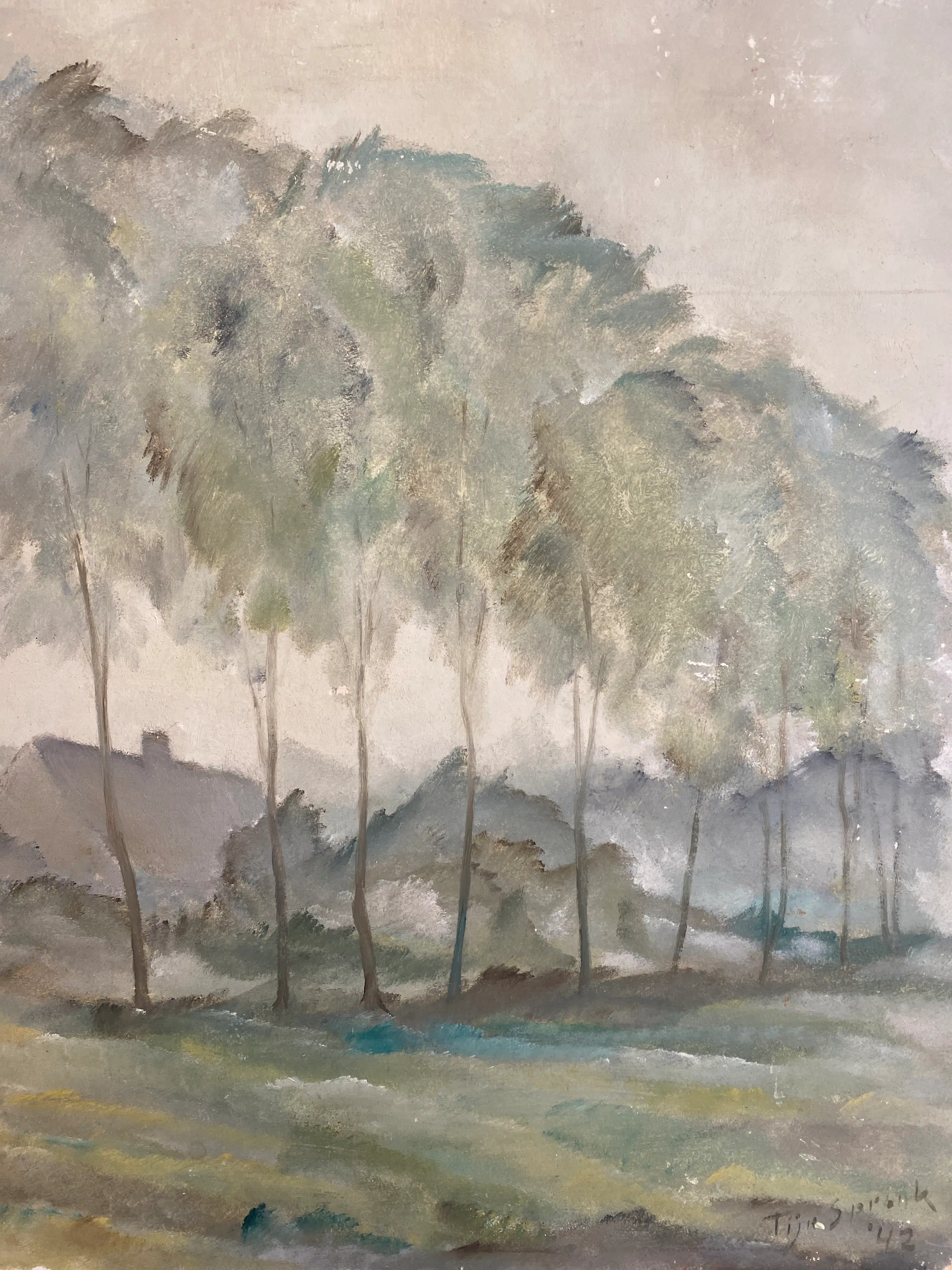Gouache op karton, gesigneerd en gedateerd 42 rechts onderin, in goede conditie, afmetingen 75x52 cm, provenance privé verzameling te Amsterdam