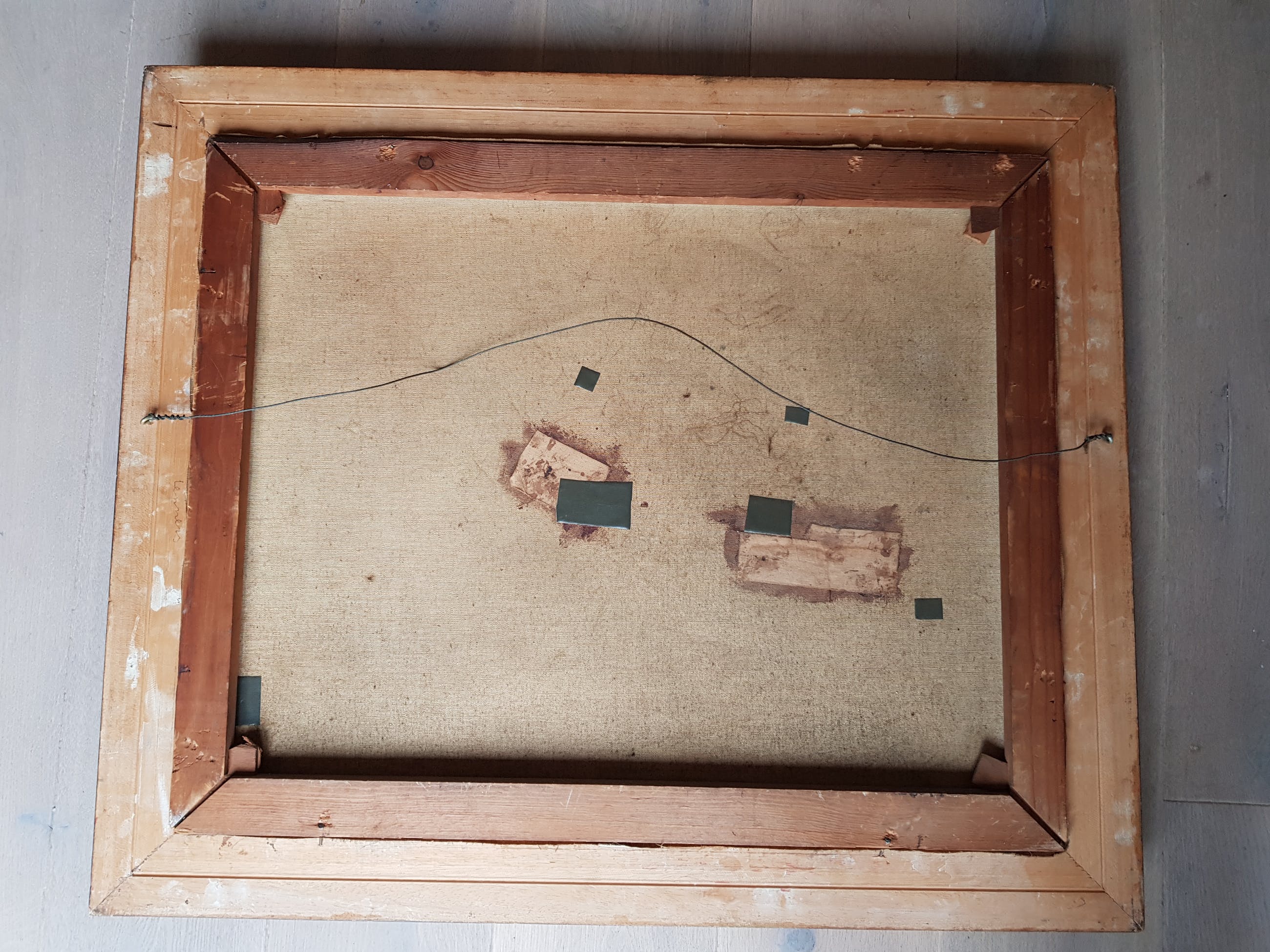 | Enkele restauraties zoals aan de achterzijde te zien is. Restauraties zijn goed gelukt. Zeer netjes ingelijst. | |||