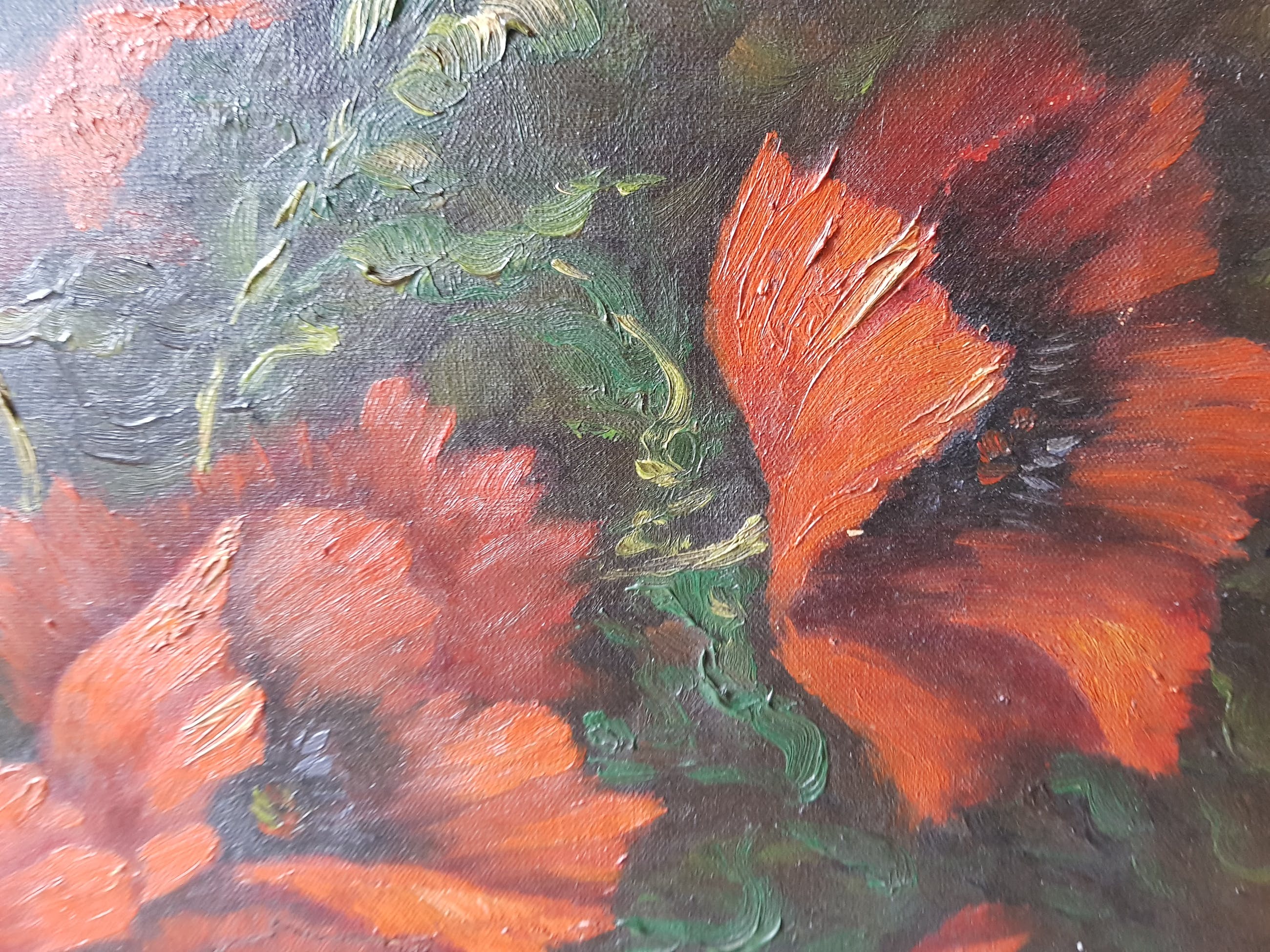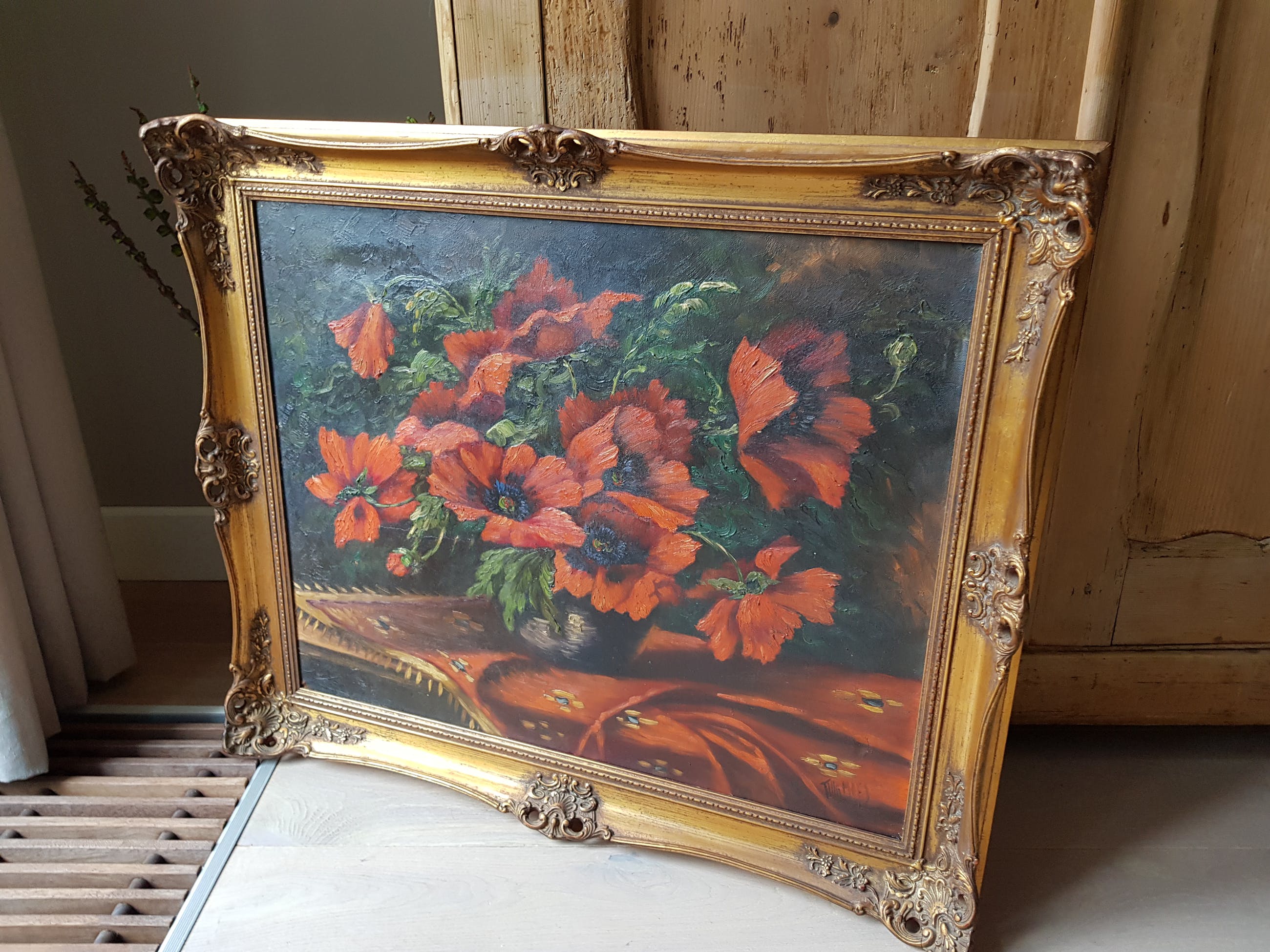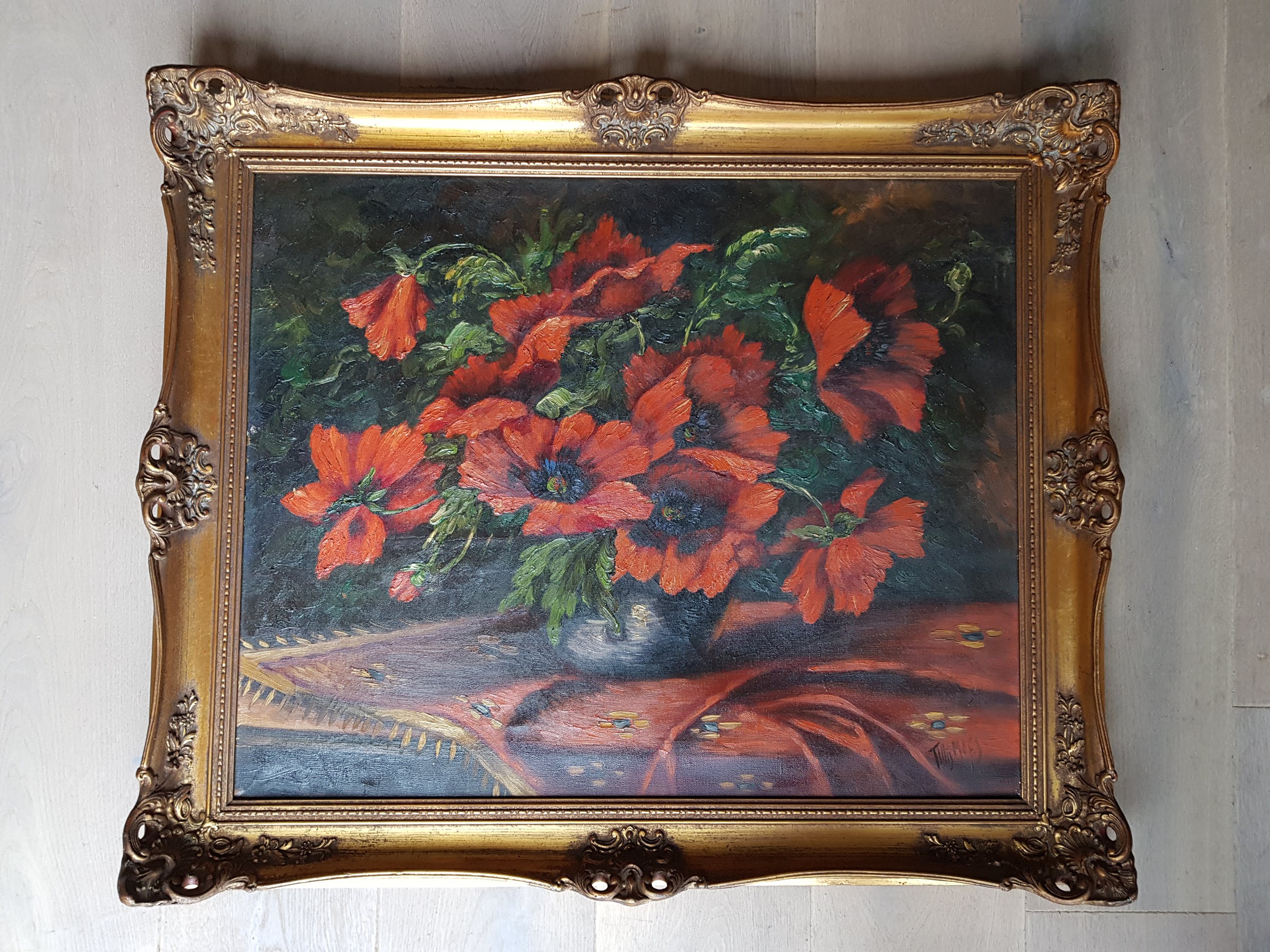 Een verhaal apart betreft en motief dat zeer succesvol bleek. Haar man Nico, ook een kunstschilder, had veel succes met een stilleven-opstelling van een elegant vaasje bloemen naast een gedrapeerd gordijn, op een spiegelend tafelblad. De zorgvuldige maar traag werkende Nico deed echter veel te lang over een exemplaar. Om tot een hogere productie te komen nam Fia eerst een deel van de taak over: ze vulde de bloemen in. Tenslotte maakte zij, vanaf 1940, het hele stilleven onder haar aloude naam Tilly Moes.