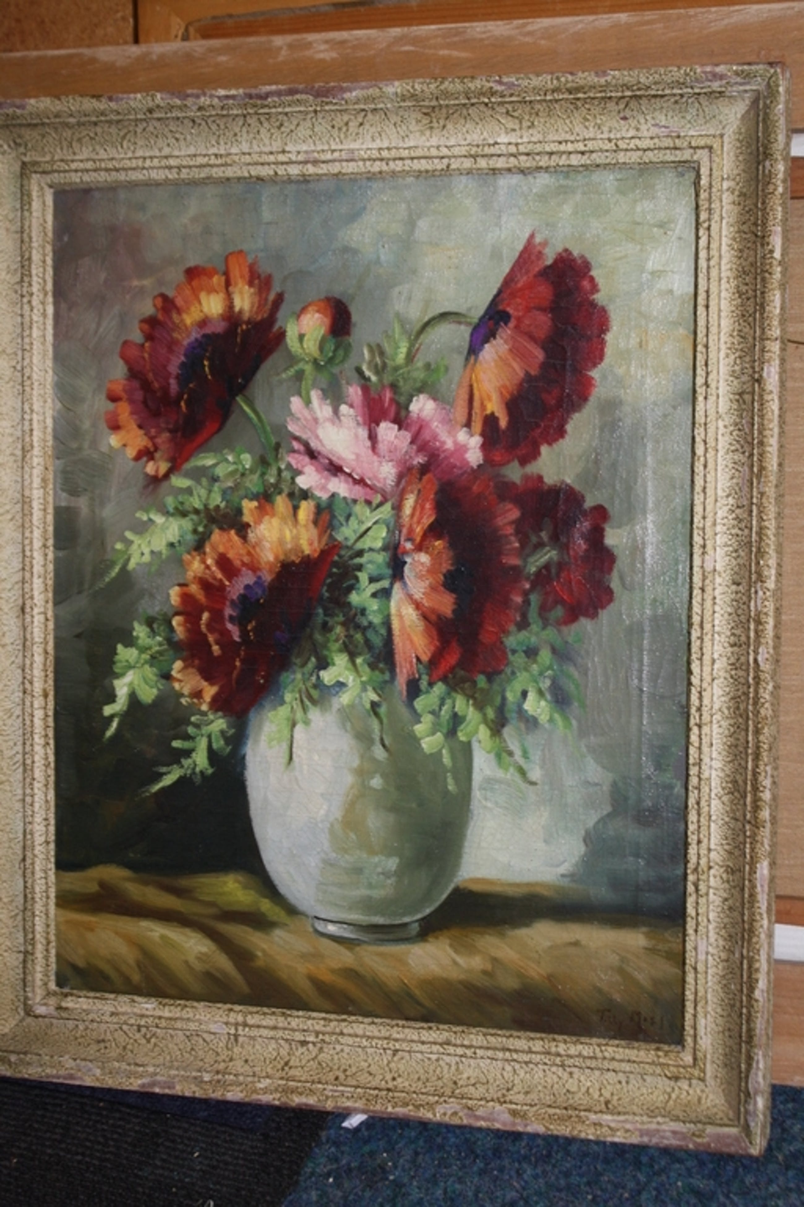 GEKADERD IN OUDE LIJST IN DE MAAT 50 X 60 CM