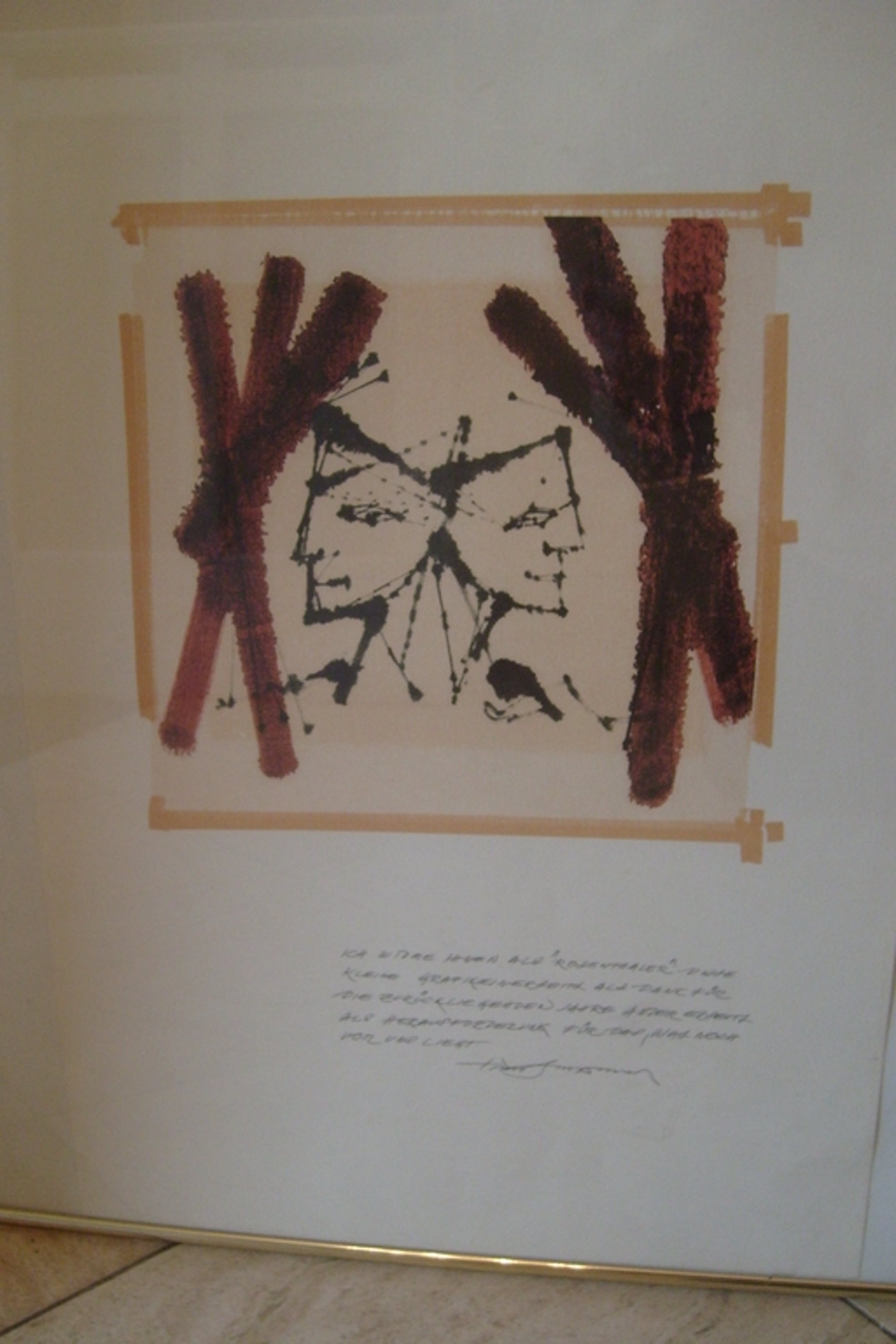 kleur-litho, ingedrukte tekst met handtekening.