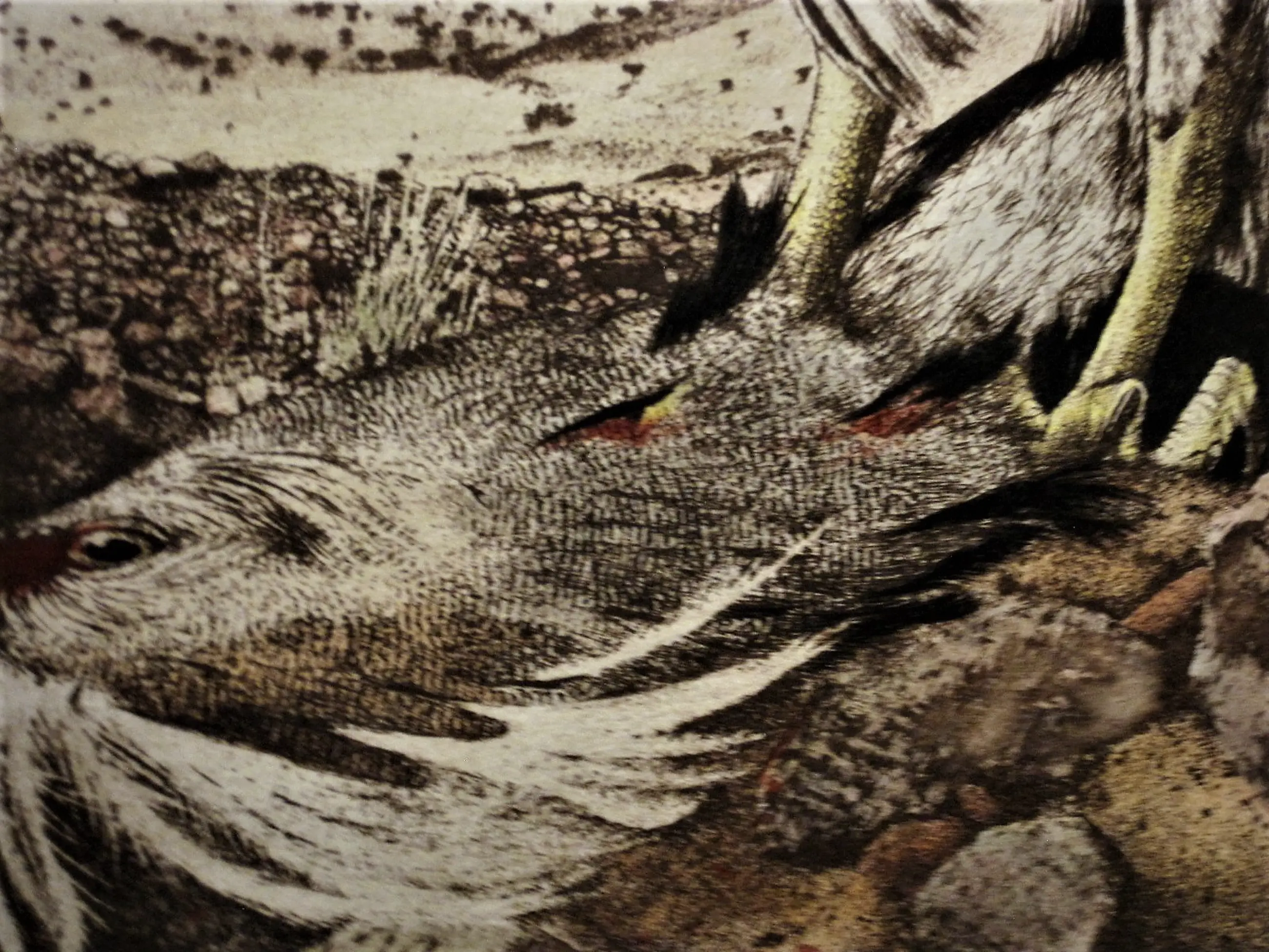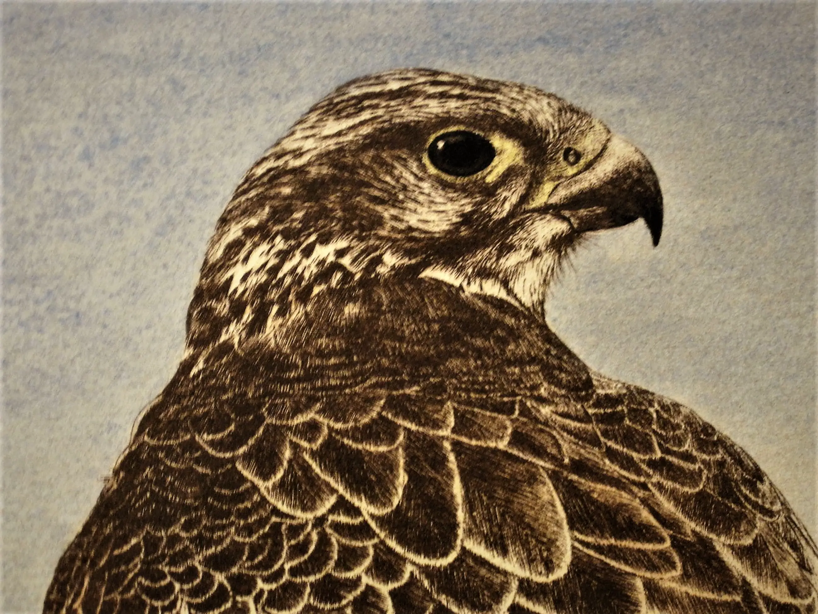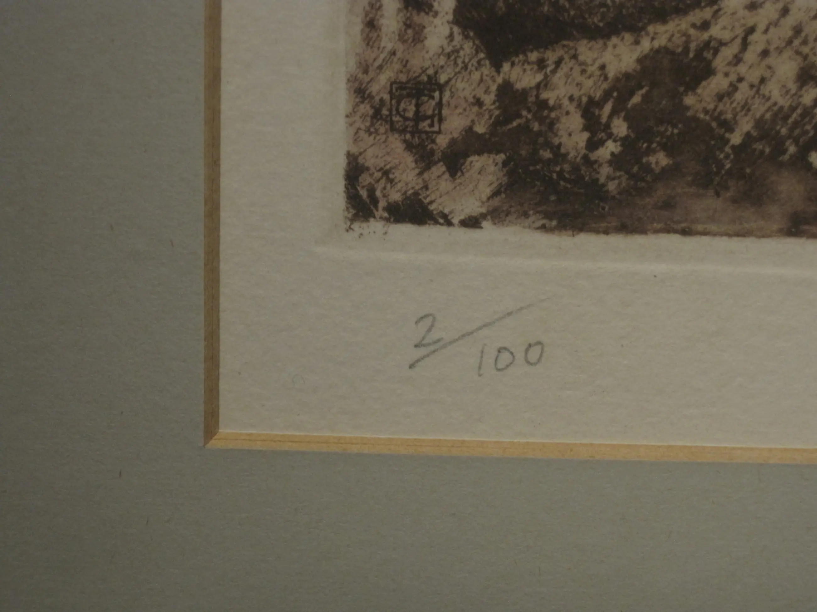 Fraaie, gedetailleerde handgekleurde ETS van een havik met zijn prooi. Zowel in de plaat alsook potloodgesigneerd en genummerd (2/100). Bladmaat 33x24 (HxB). In passe partout - niet ingelijst.