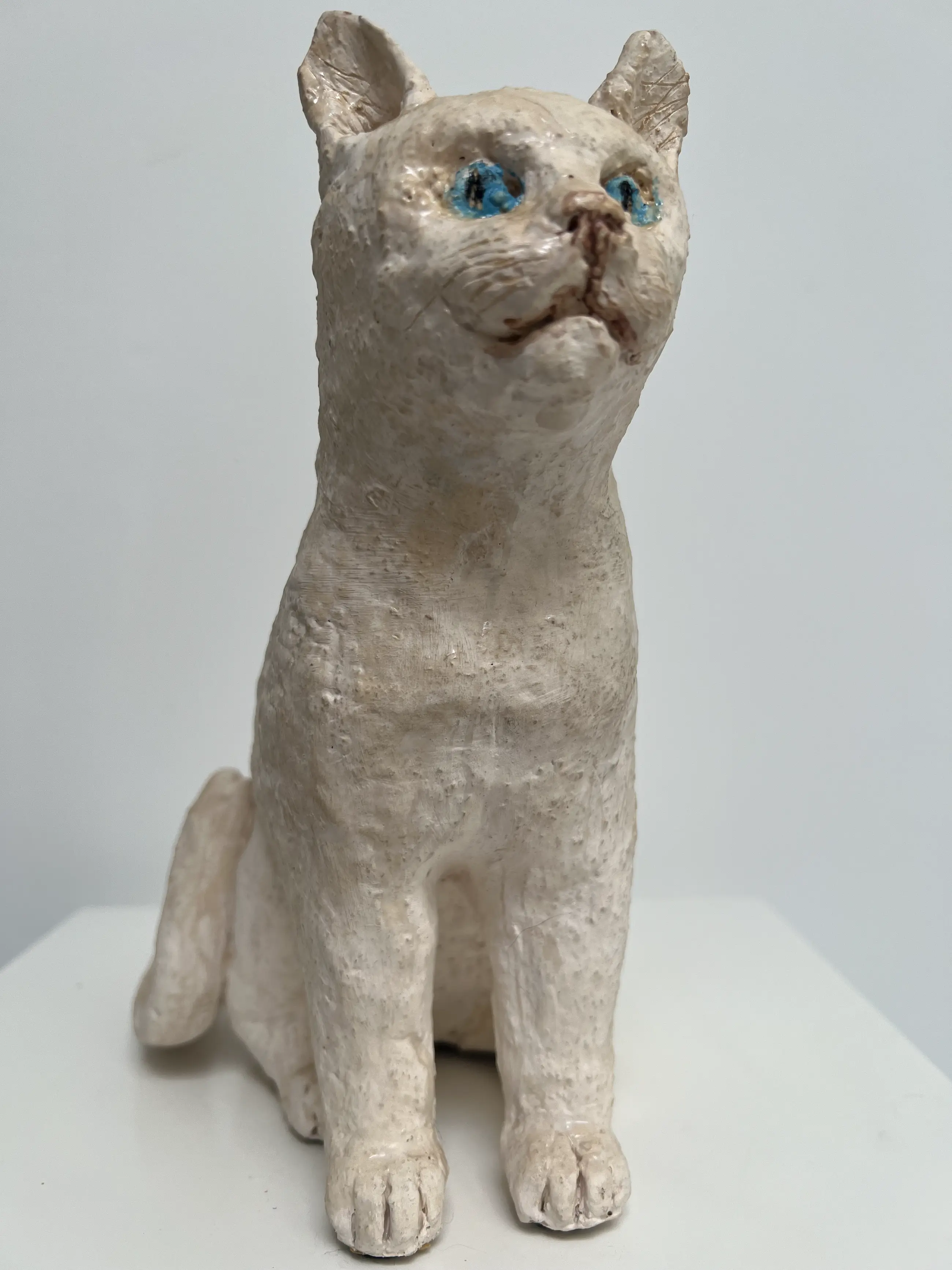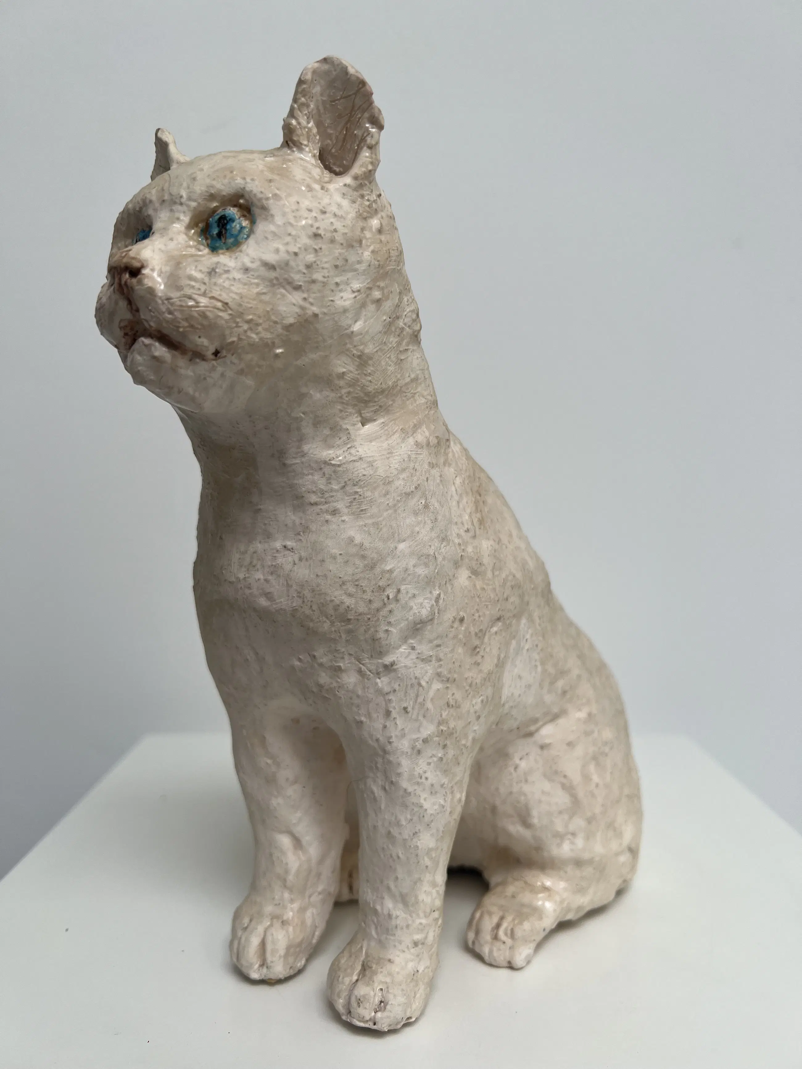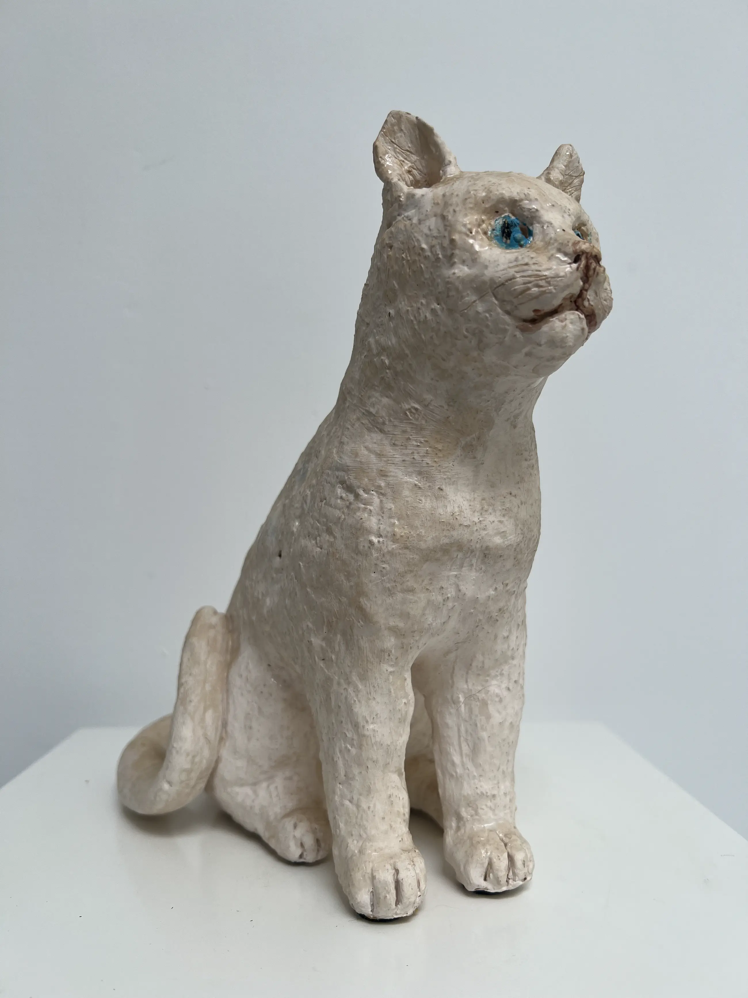 Aandoenlijk en prachtig sculptuur van een huiskat van de hand van Tine van Waning.