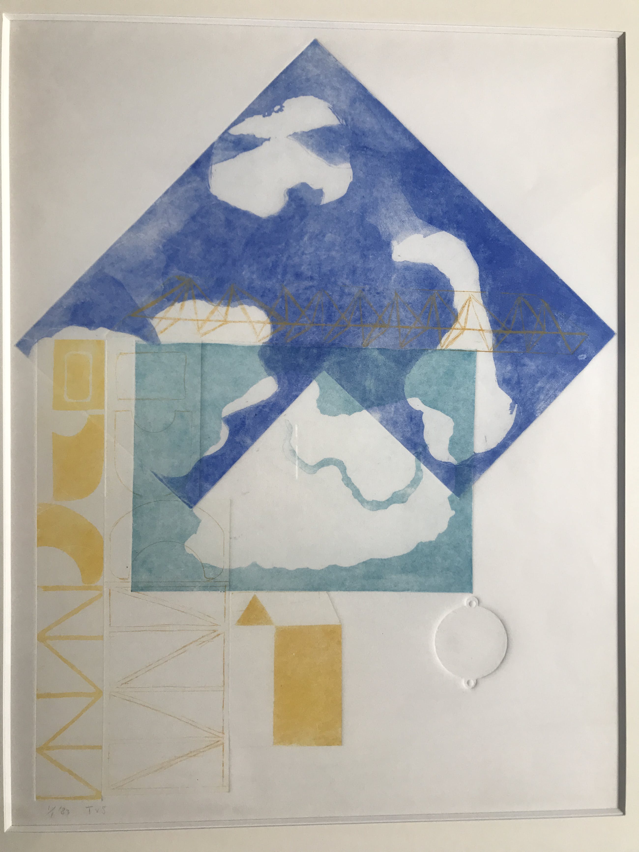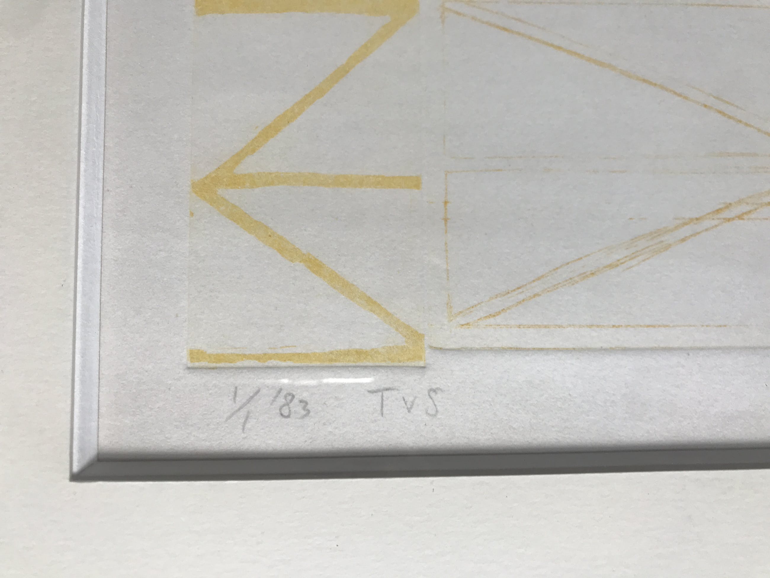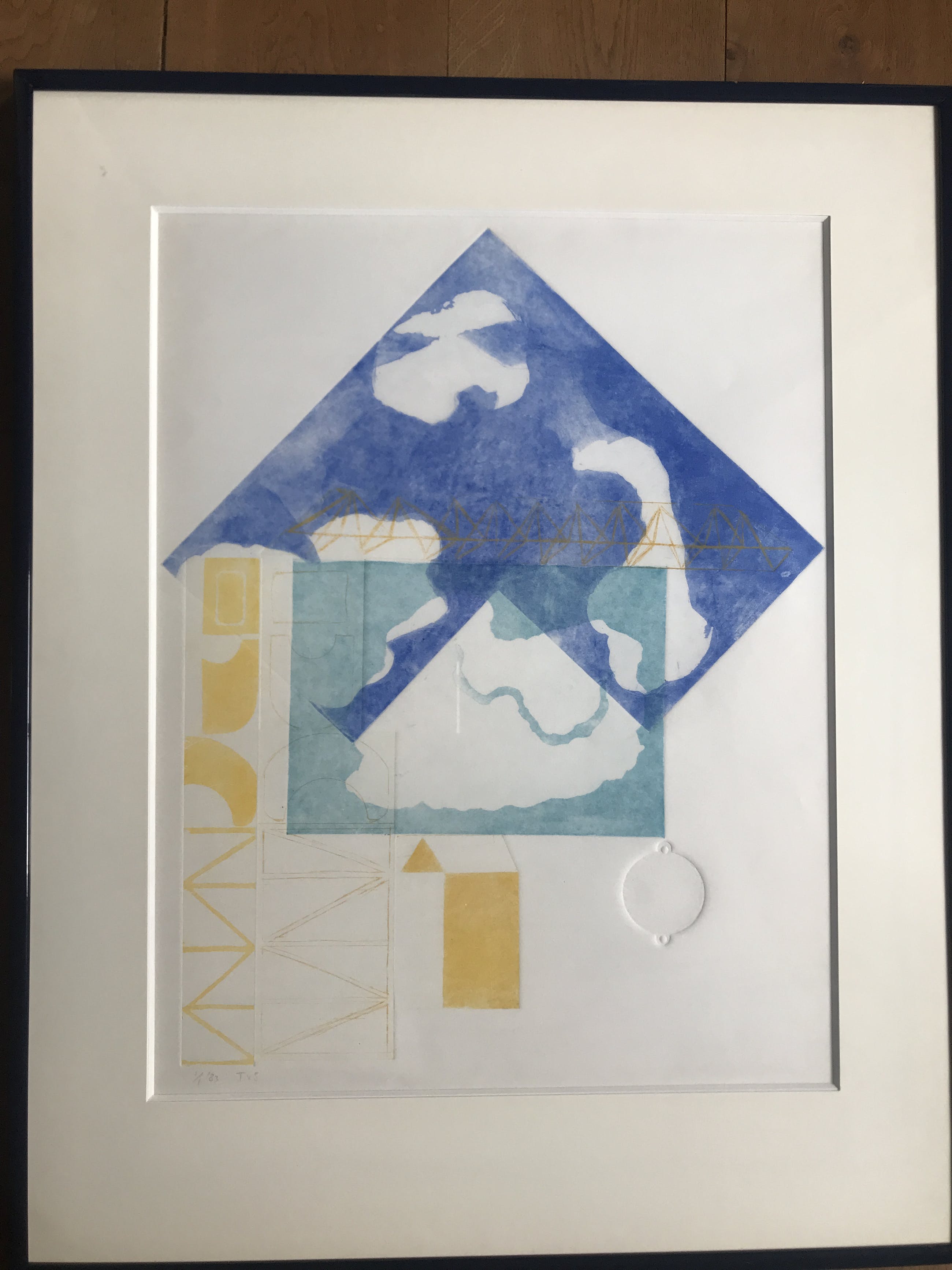 Deze monoprint is mooi ingelijst in donkerblauwe kunststof lijst. Hand gesigneerd 1/1/'83