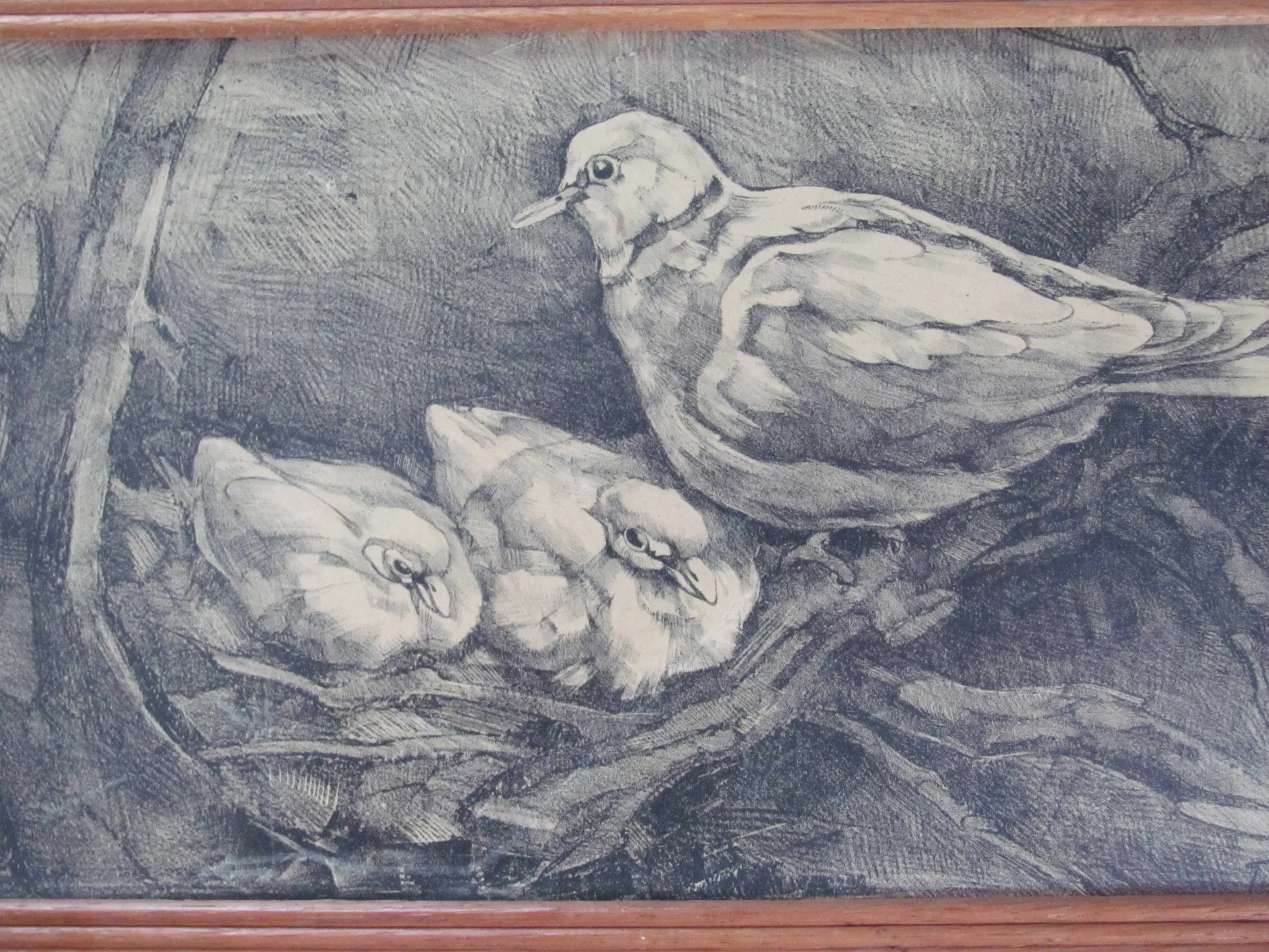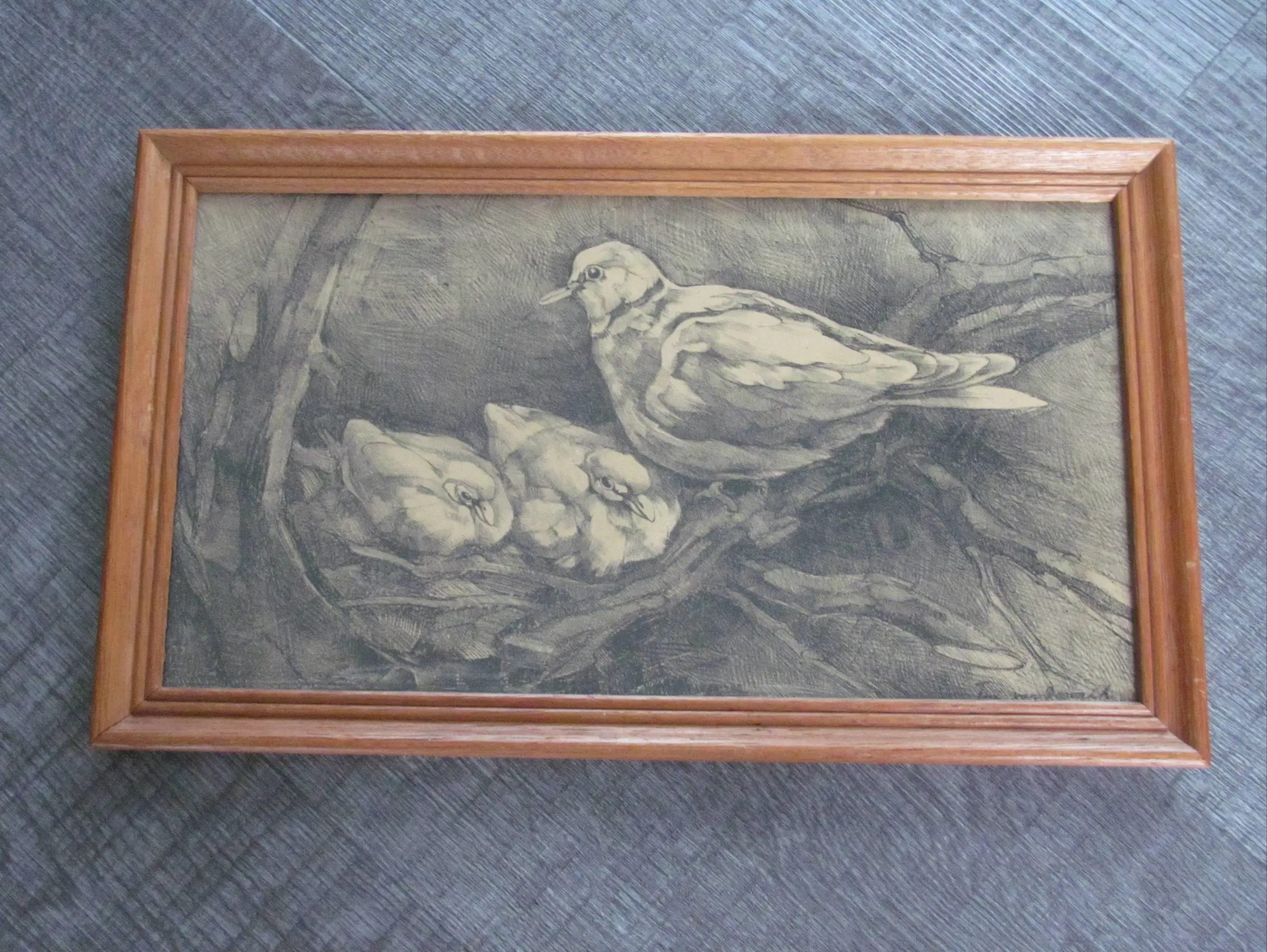 Oud werk van Tini van Doornik, maar ondanks de ouderdom in goede staat. Niet bekend welke techniek hier precies is gebruikt. Mogelijk een ets of litho, misschien een tekening? Rechtsonder in de plaat gesigneerd met haar volledige naam.