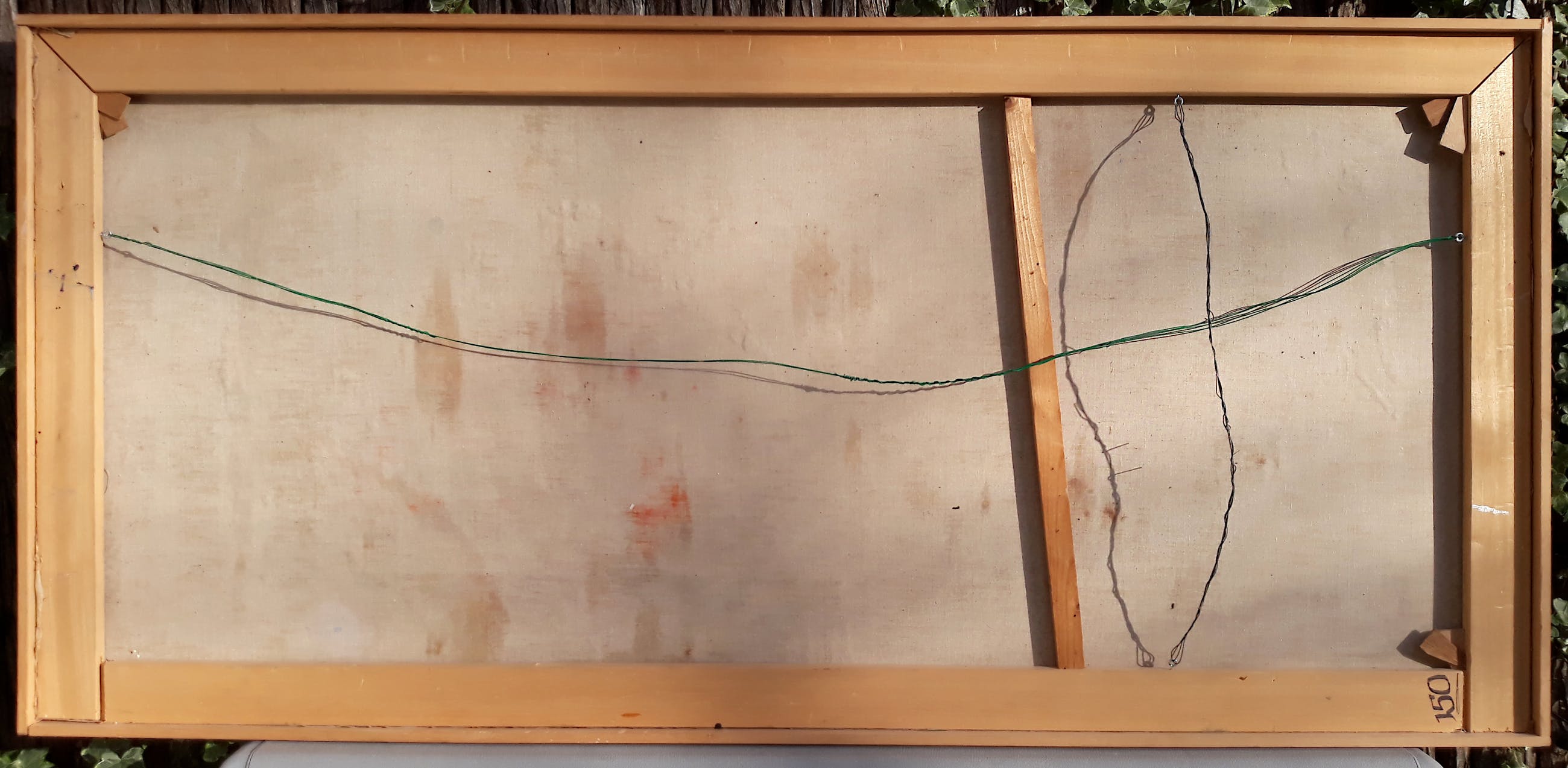 Afmetingen: 153cm x 73cm (incl. lijst), 150cm x 70cm (doek)