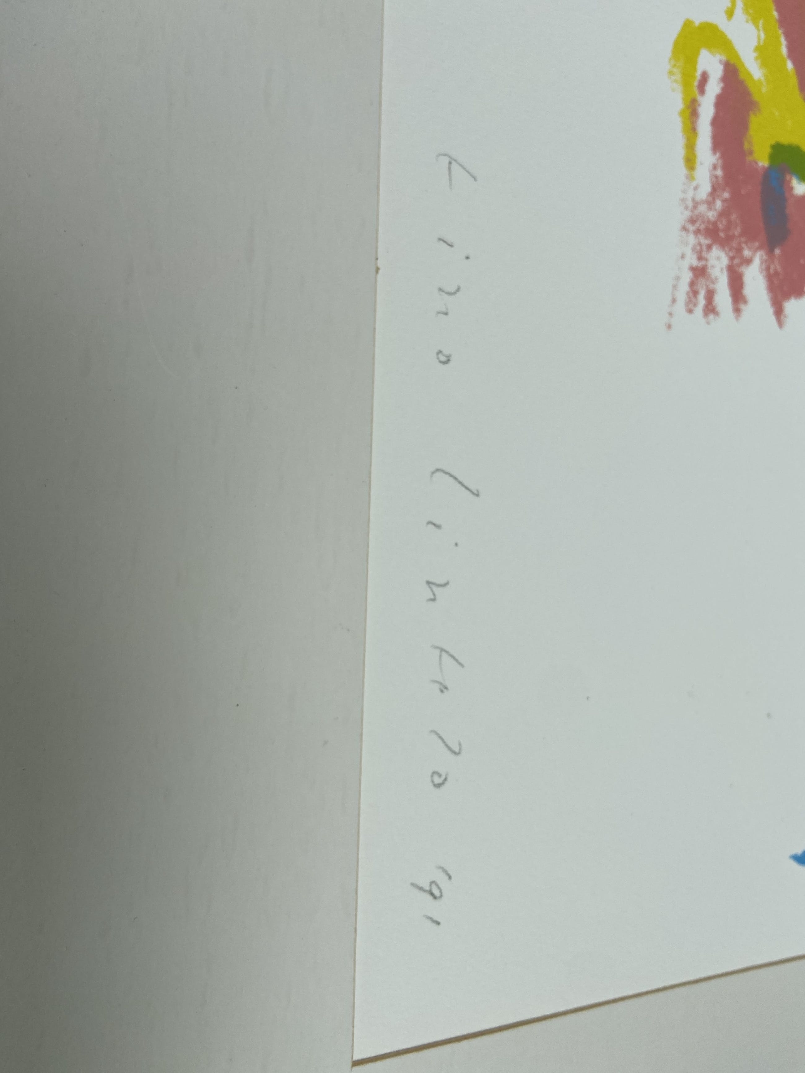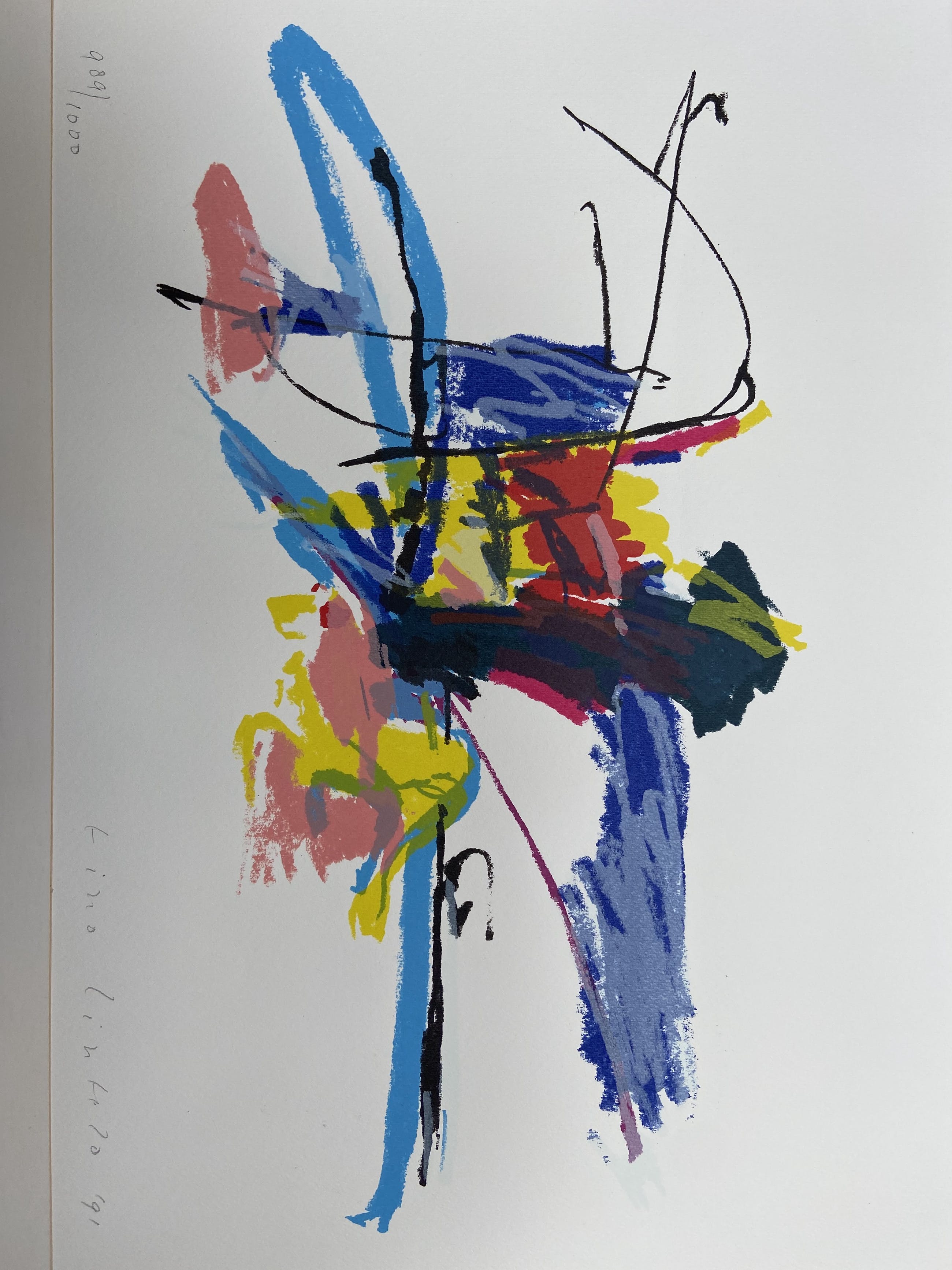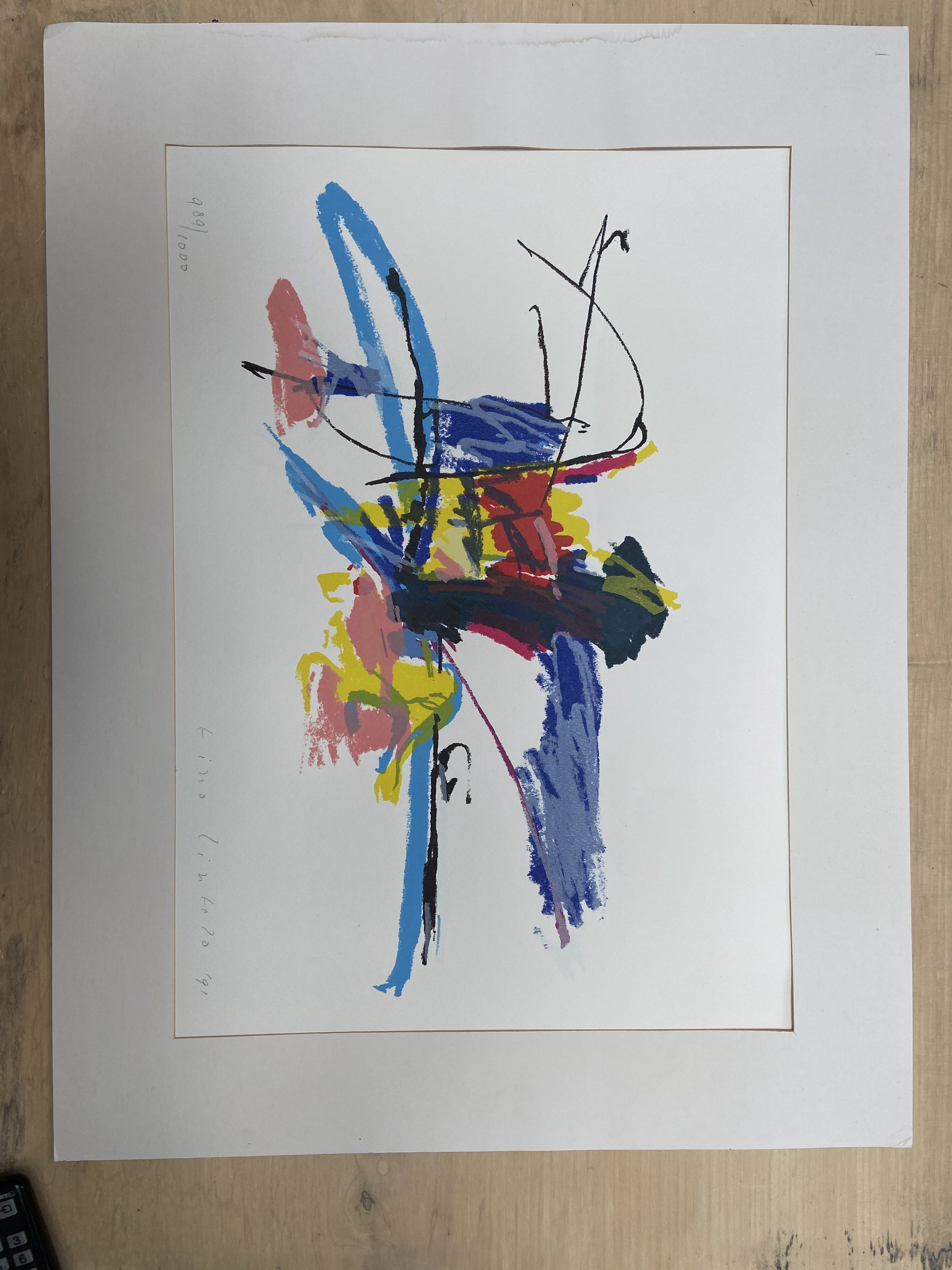 Zeefdruk van Tino Lintelo uit 1991 . Het werk is rechtsonder met de hand gesigneerd door de kunstenaar.